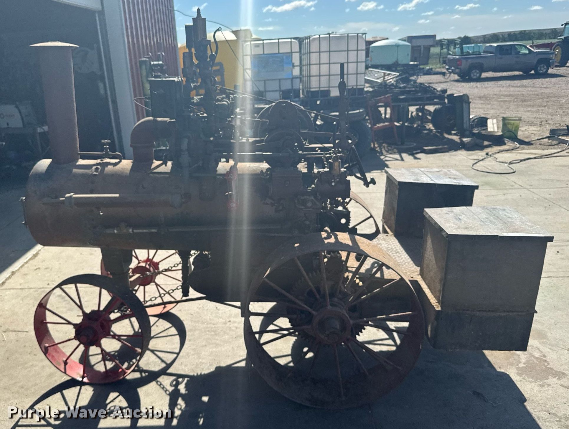 Shop built tractor. Engine. Stanley steamer steam engine, Cylinders: 1. Transmission Manual. Tires Front: 4.5x22, Rear: 9x30. Oberlin, KS 67749