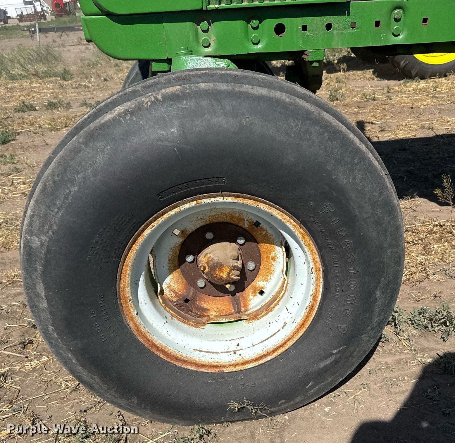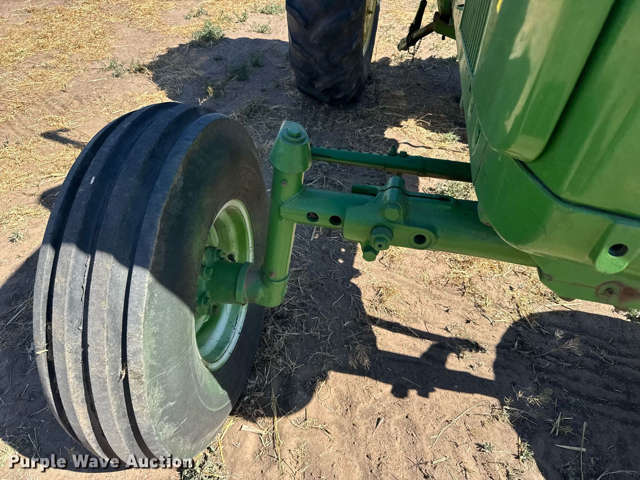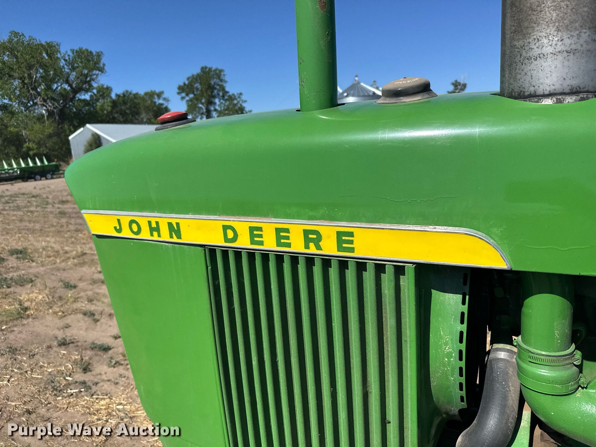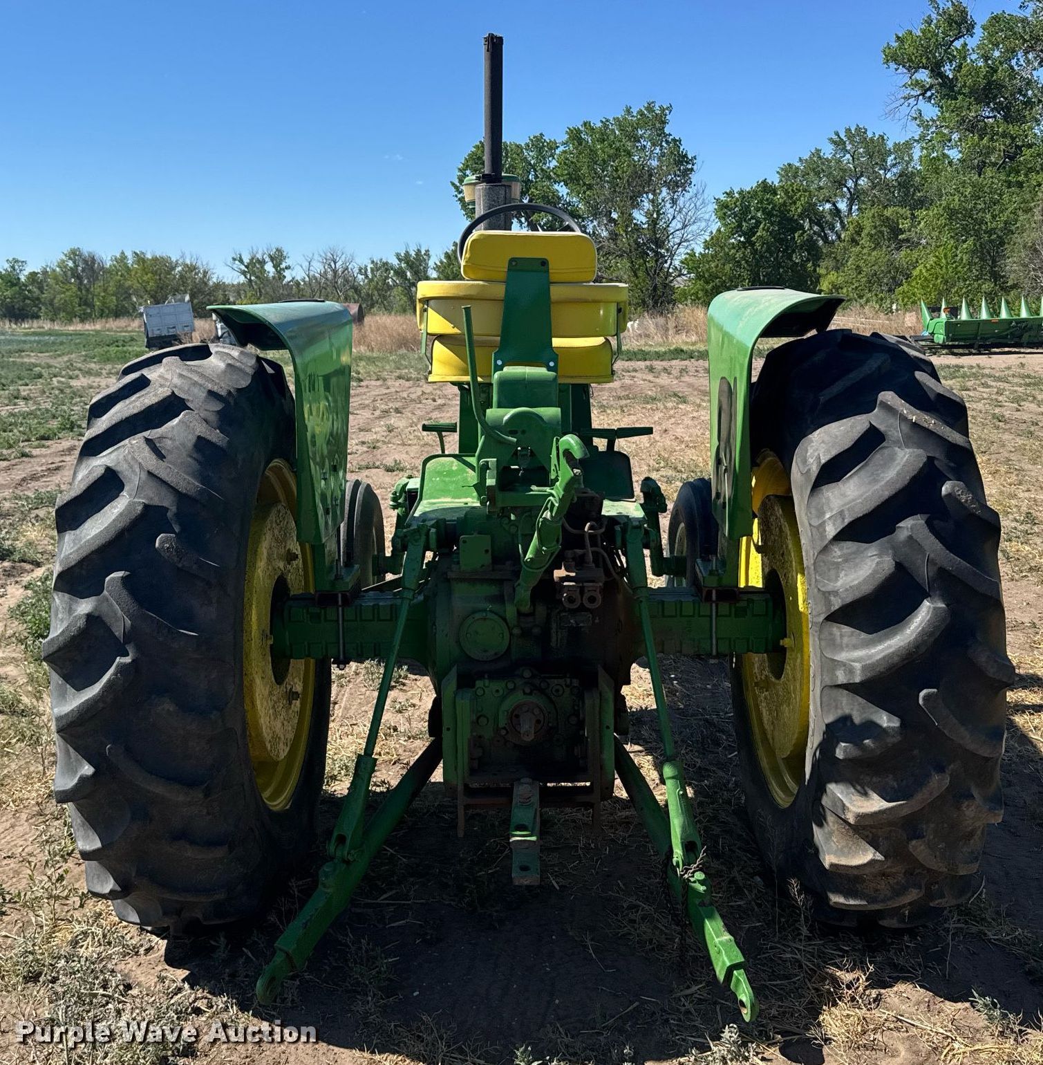 1961 John Deere 4010 tractor. Hours: 1 on meter, Serial: 21T1874. Engine John Deere, Cylinders: 6, Fuel type: Diesel. Transmission Synchro, 8F - 2R. Features PTO: 540, Three point Top link, Hydraulic remote sets Rear: 1. Tires Front: 10.00-16, Rear: 16.8-38, Wheel weights: 6. Oberlin, KS 67749