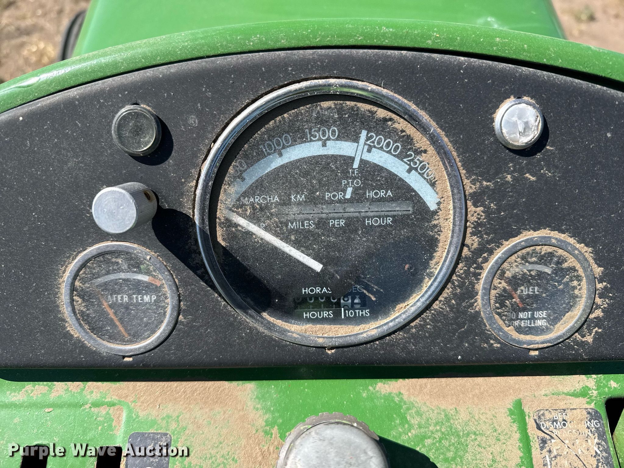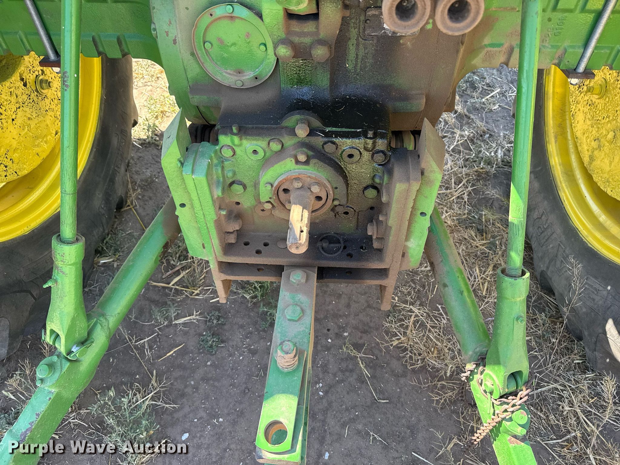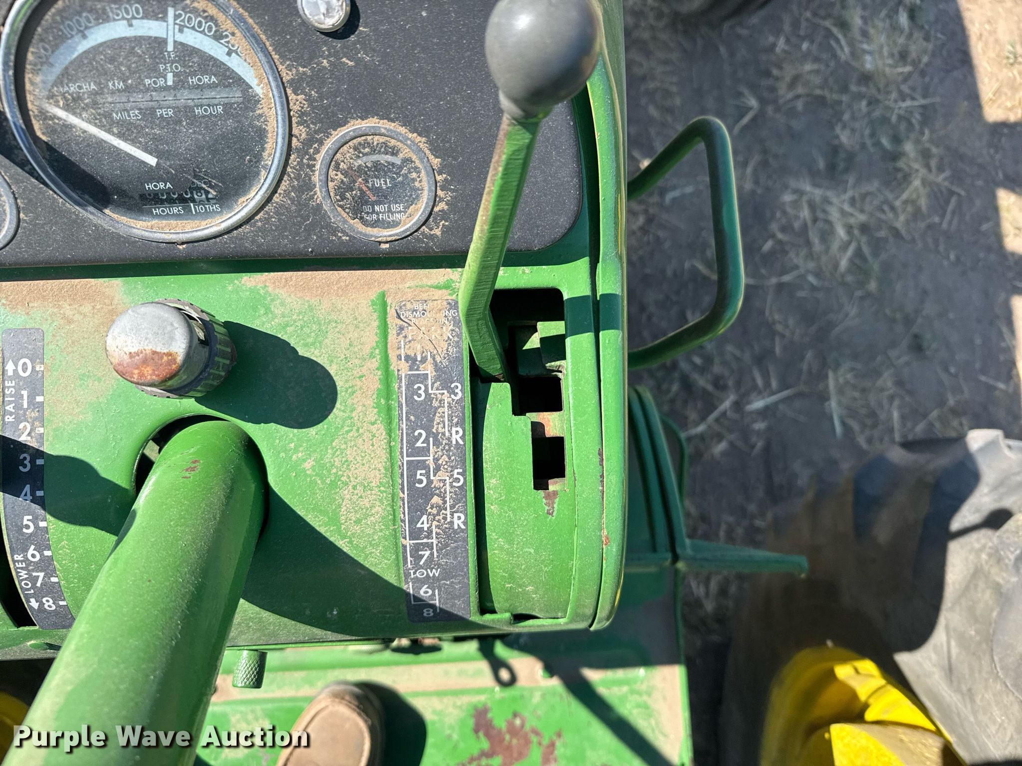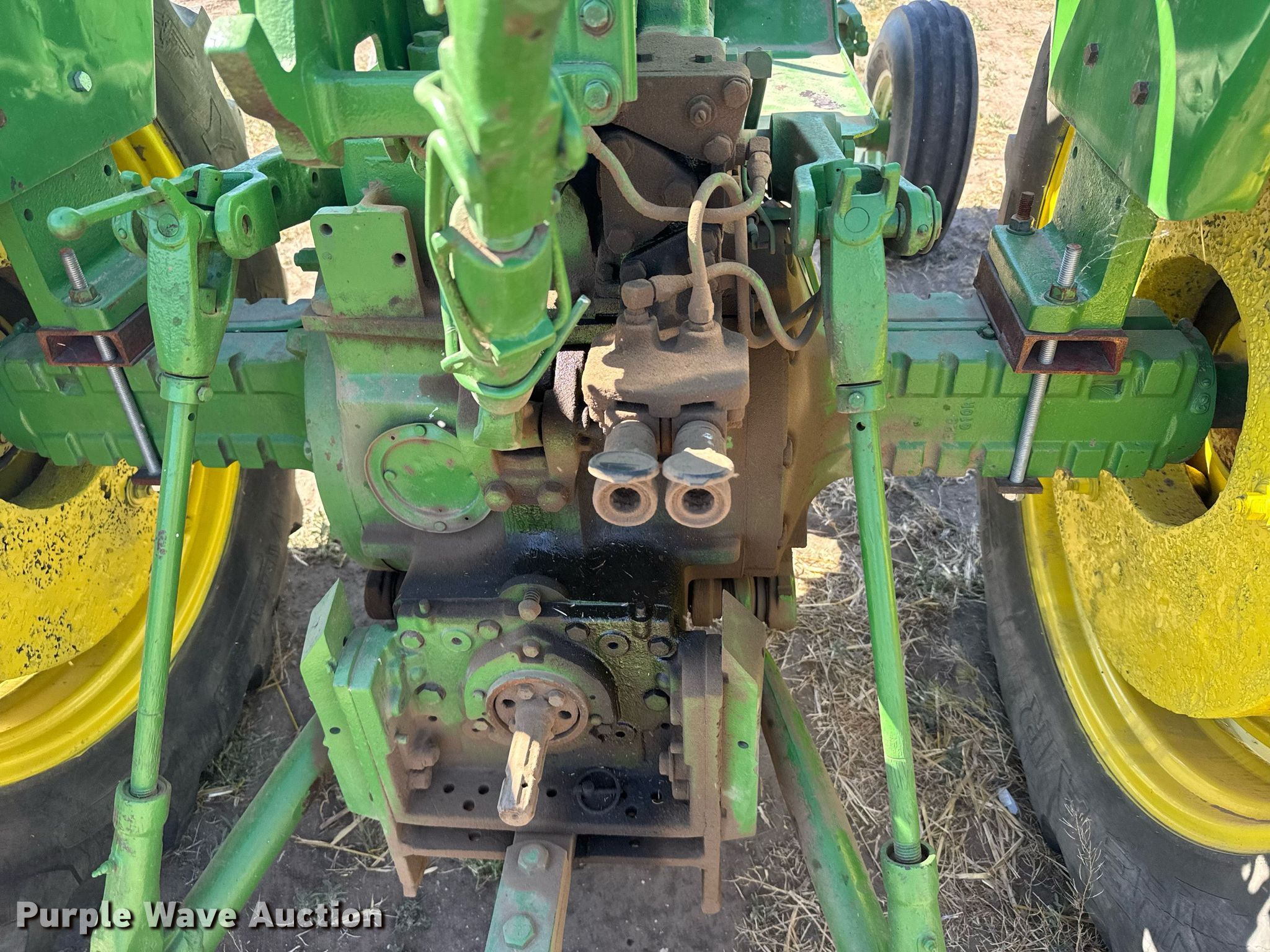 1961 John Deere 4010 tractor. Hours: 1 on meter, Serial: 21T1874. Engine John Deere, Cylinders: 6, Fuel type: Diesel. Transmission Synchro, 8F - 2R. Features PTO: 540, Three point Top link, Hydraulic remote sets Rear: 1. Tires Front: 10.00-16, Rear: 16.8-38, Wheel weights: 6. Oberlin, KS 67749