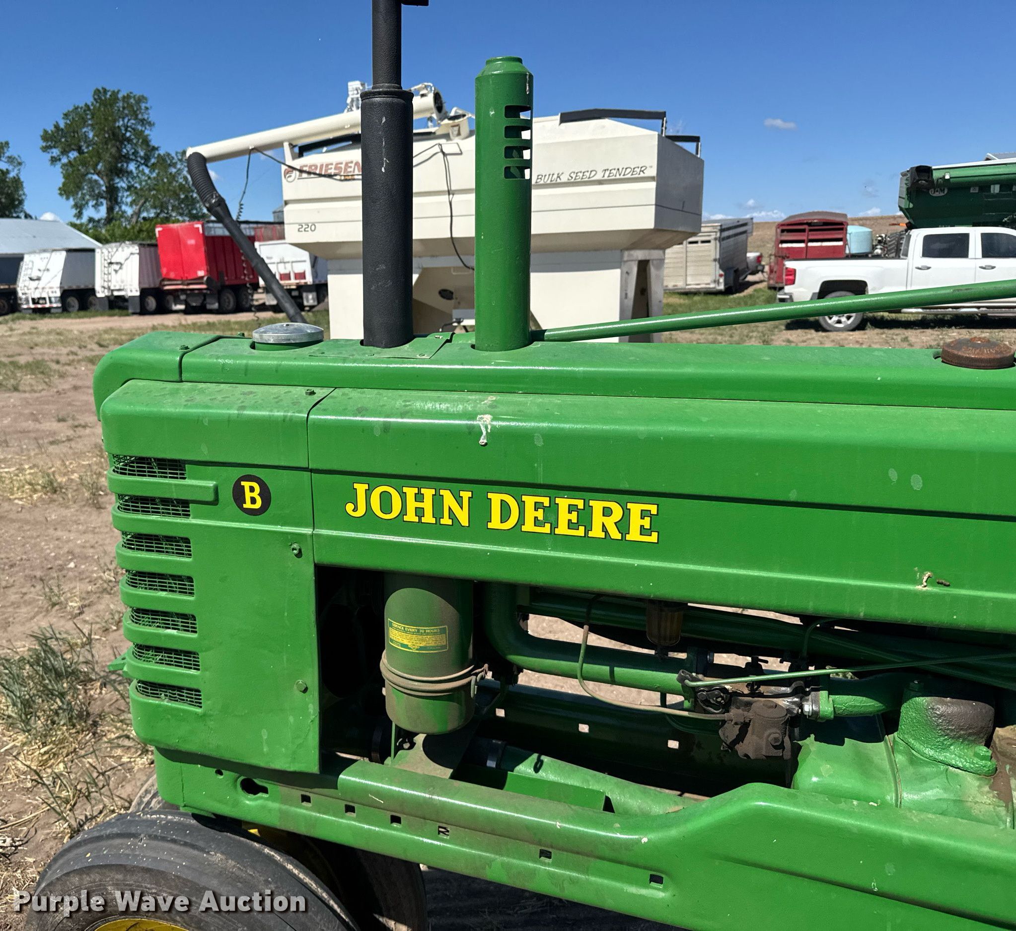 1950 John Deere B tractor. Serial: B272309. Engine John Deere, Cylinders: 2, Fuel type: Gas. Transmission Manual, 6F - 1R. Features PTO: 540. Tires Front: 6.00-16, Rear: 11-38. Oberlin, KS 67749