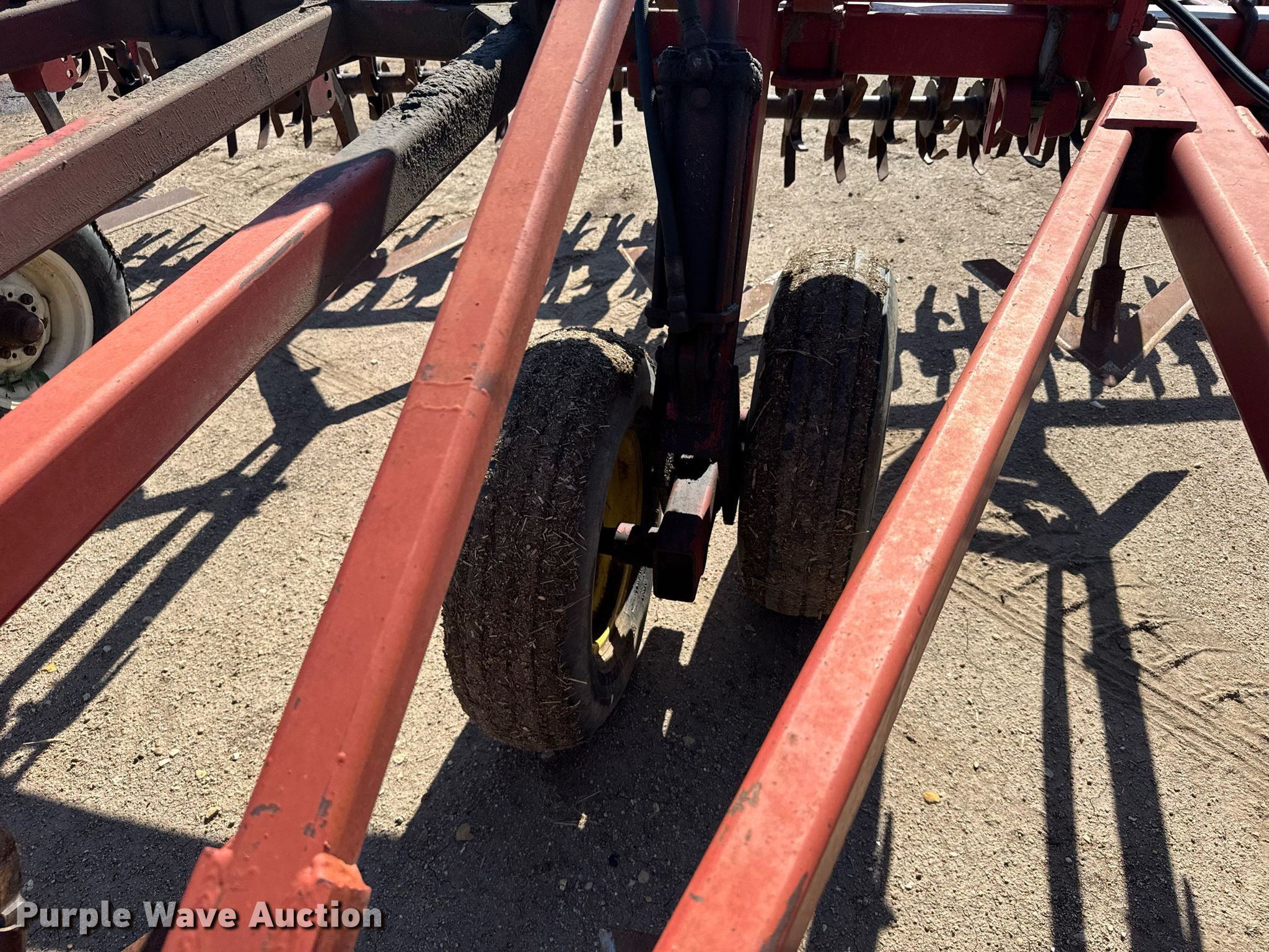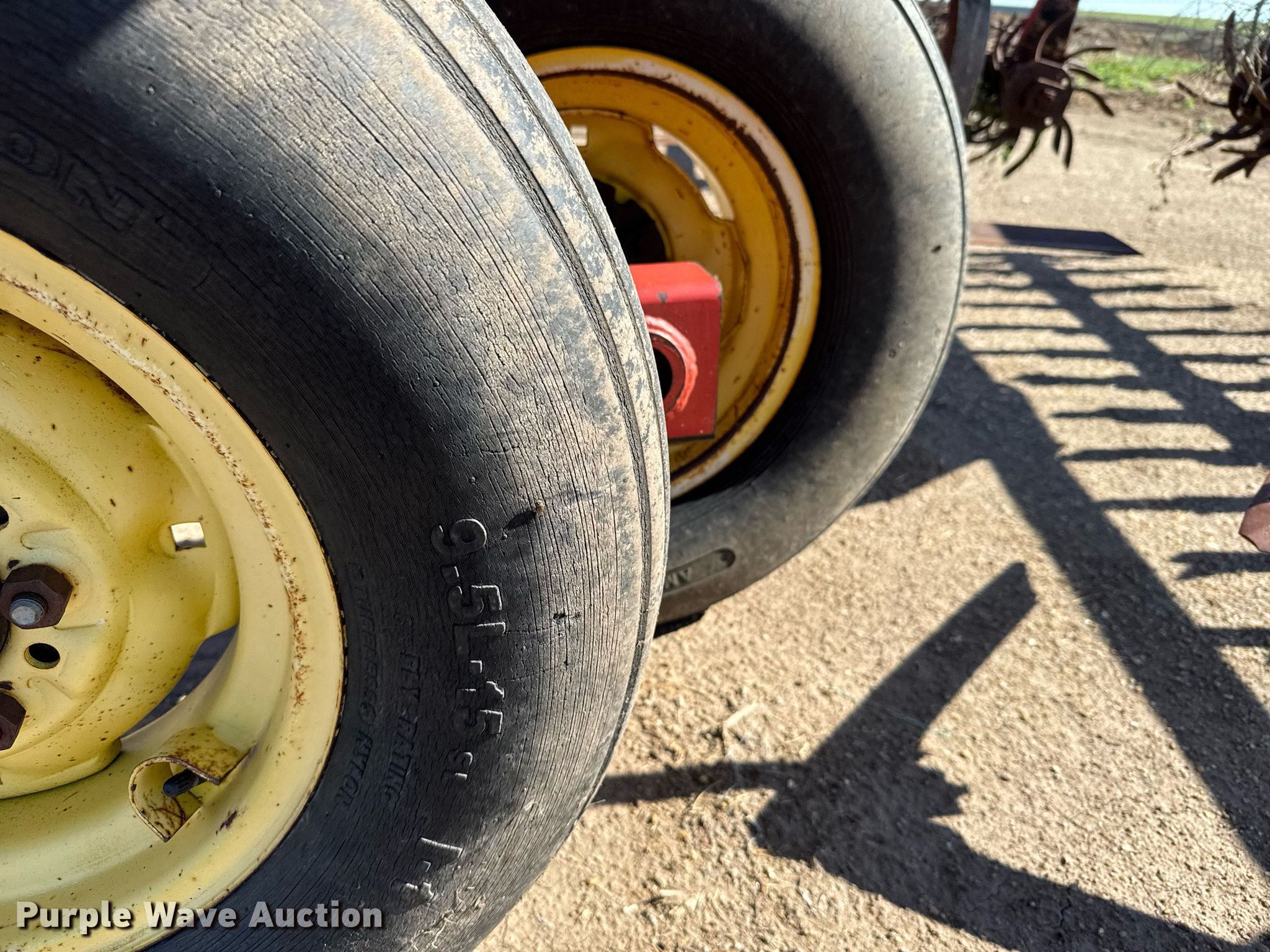 Sunflower 3060-42 Fallow-King sweep plow. Overall width: 42', Serial: 3098-050. Features Shanks: 25, Sweep width: 26", Operation Hydraulic lift, Hydraulic fold, Leveler: Hydraulic, Walking tandem axle, Attachments Rolling pickers/ treader, Transport lights. Tires Tire size: 9.5-15, Gauge wheels Size: 20.5x8.0-20. Russell, KS 67665