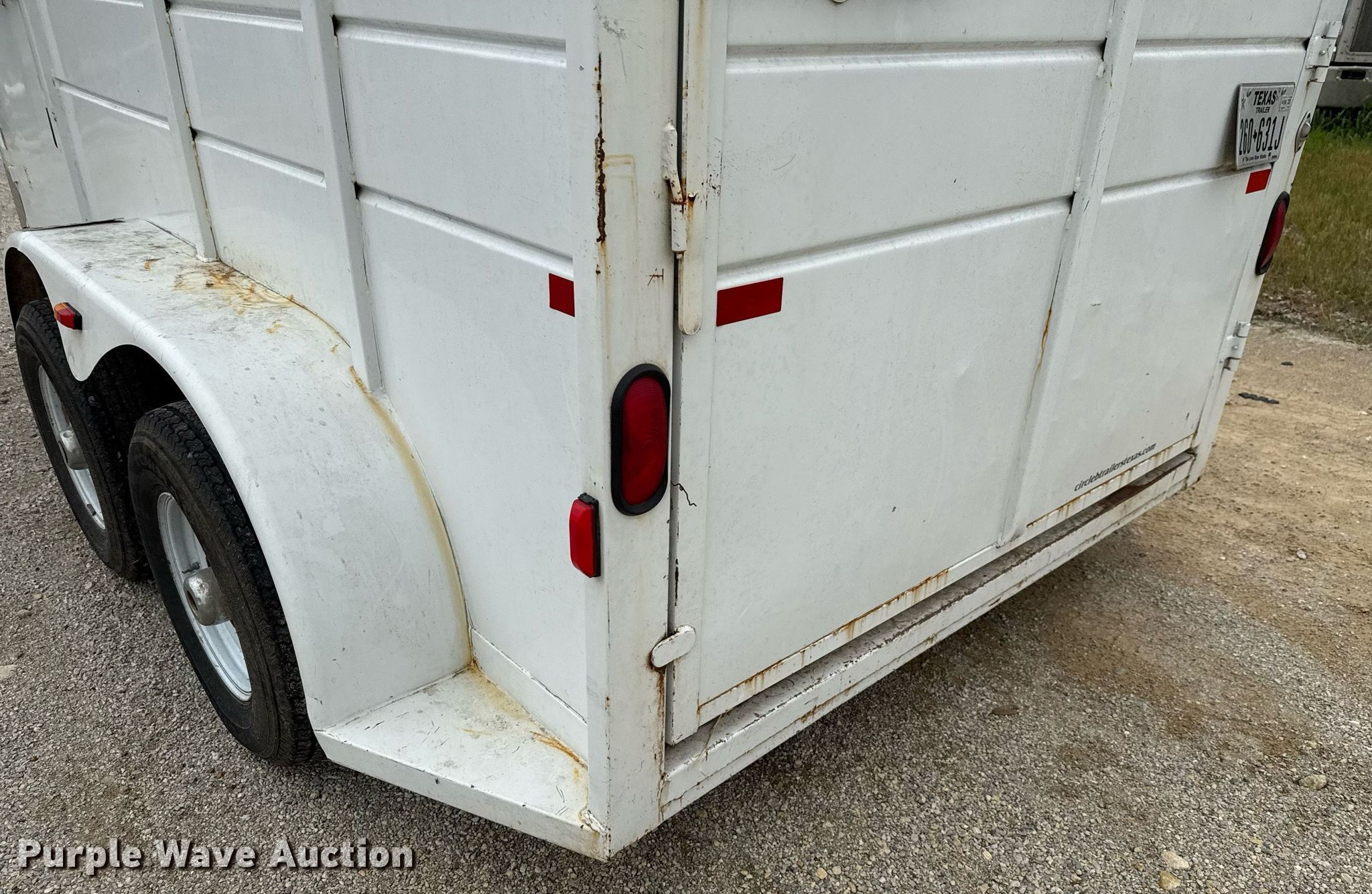 2015 S & H SHH0832-14 livestock trailer. VIN: 140HB1425F1016099. Dimensions Overall: 16' 5" L x 91" W, Body: 14' L x 6' W. Features Center gates: 1, Rubber floor mat. Chassis Ball hitch: 2", Landing gear: Single, Suspension: Torsion, Brakes: Electric, Axles: Tandem, GVWR: 7,000 lbs, GAWR: 3,500 lbs. Tires Steel wheels, Size: 225/75R15. Texas title. Title distribution may be delayed up to 14 days from verification of funds. Dublin, TX 76446