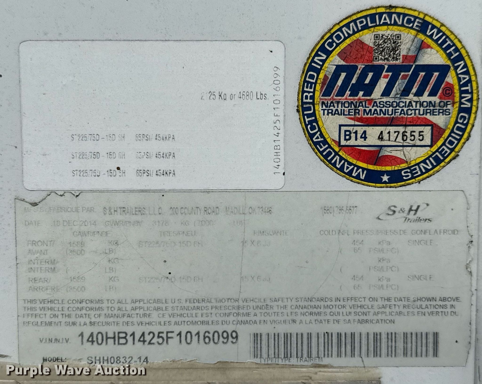 2015 S & H SHH0832-14 livestock trailer | SOLD! June 25 Ag Equipment Auction