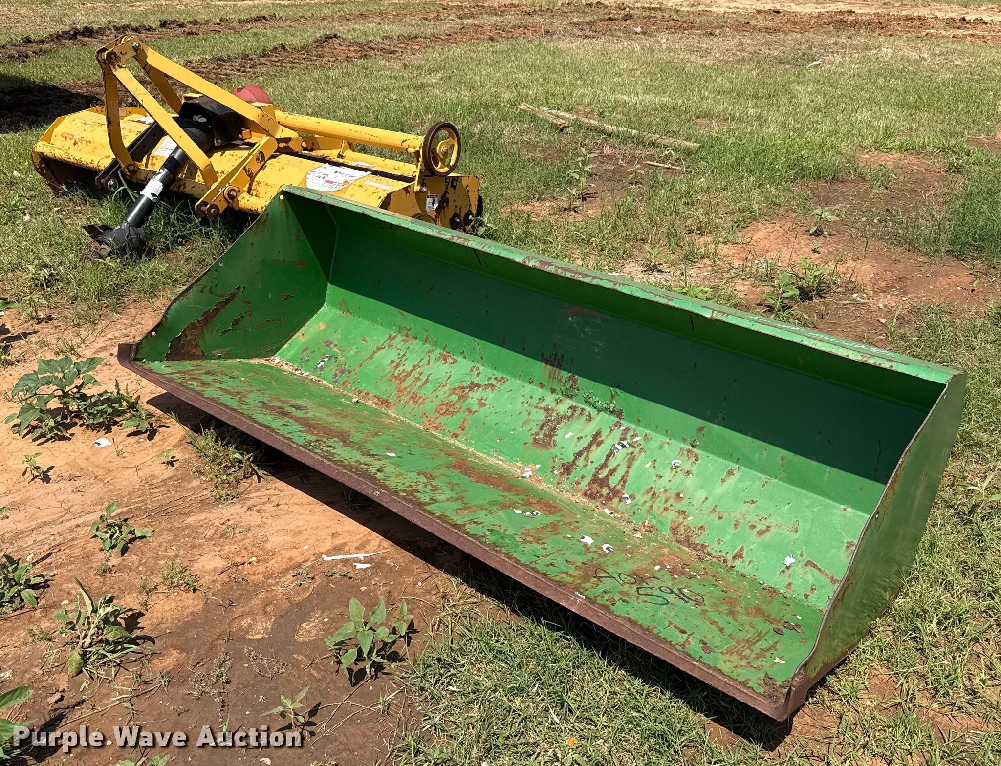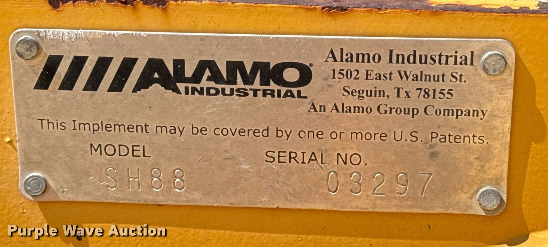 (2) ag attachments. Alamo Industrial SH88 flail mower. Serial: 03297, Width: 91", PTO:540. Notes Pulley belt missing, Unknown operating condition. Bucket Width: 86". Redlands Contracting. El Reno, OK 73036