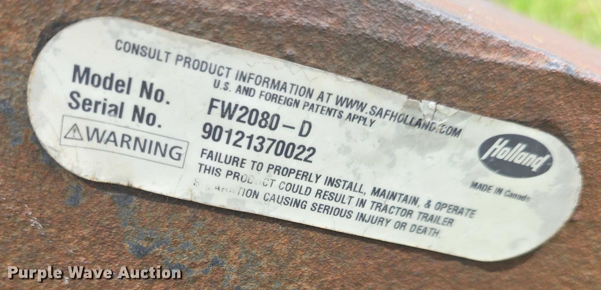 Purple Wave is selling a used Truck Part and Attach. in Kansas. This item is a Holland FW2080D fifth wheel plate with the following: Serial: 90121370022