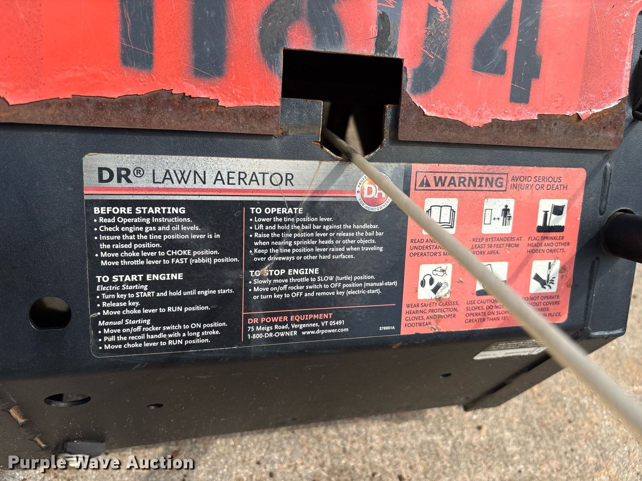Purple Wave is selling a used Lawn and Garden in Oklahoma. This item is a DR Lawn Aerator aerator with the following: Serial: AER000523
