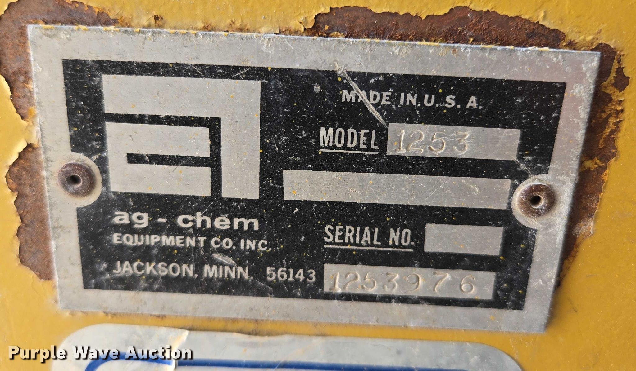 Take a look at this used Ag-Chem 1253 spreader being sold on June 25th, 2025 in the SOLD! June 25 Ag Equipment Auction made by Ag-Chem. Take a look at all of the item information below or take a look at similar auctions for Applicators.
