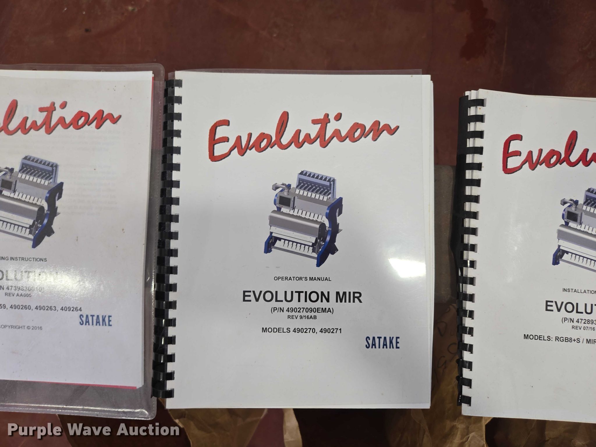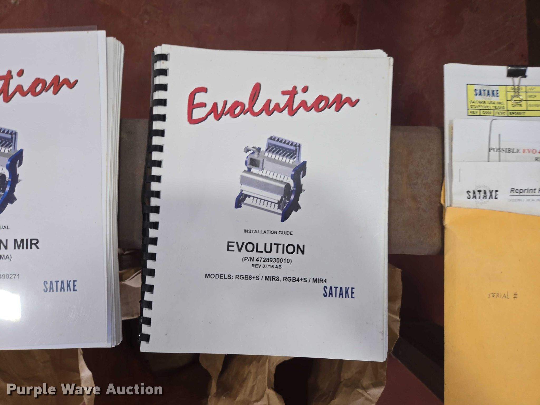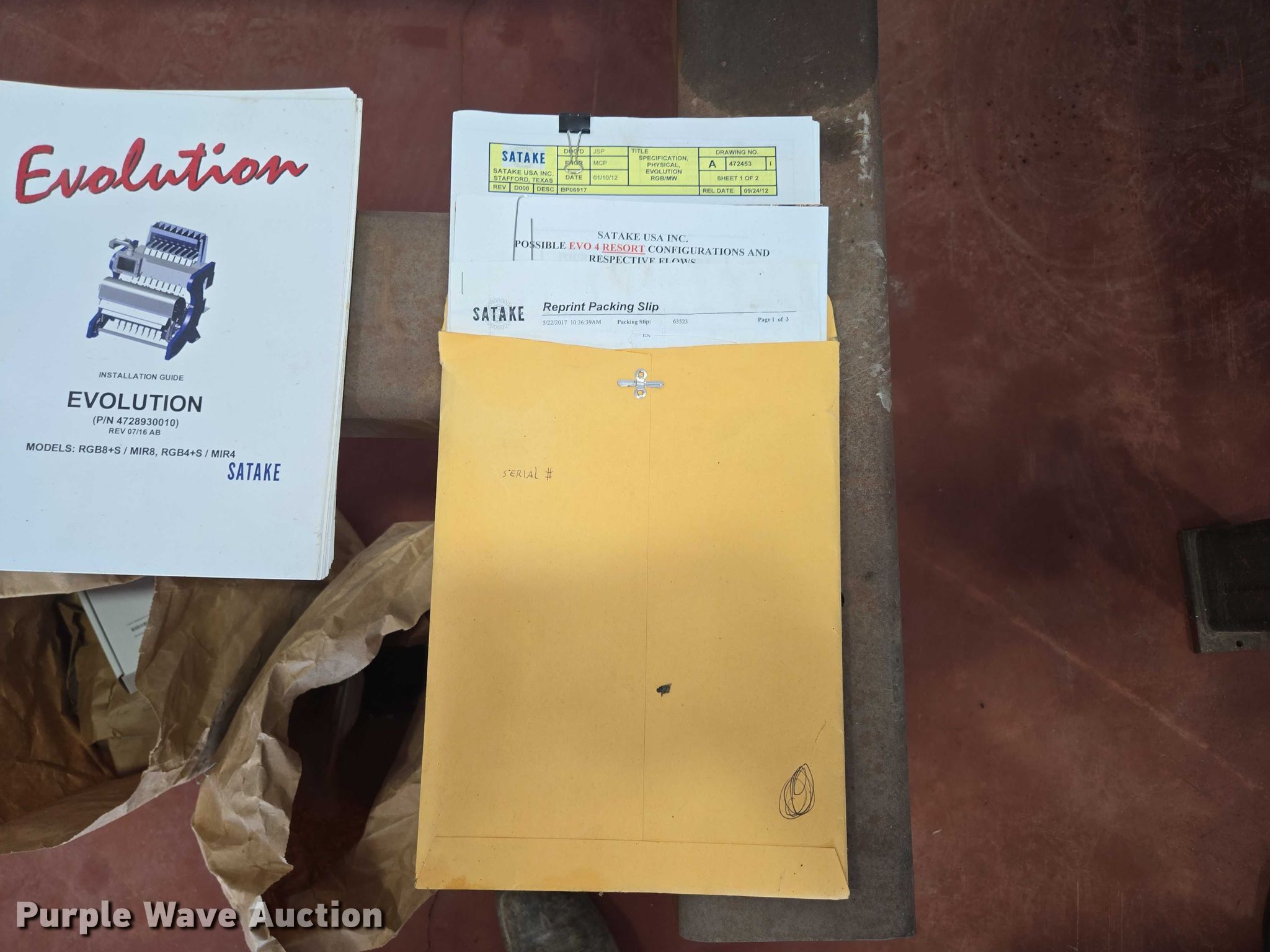 Satake EVO-IR-400 pecan color sorter. Hours: 1,538 on meter, Serial: 1410292. Electric Motor Volts: 230, Phase: Single. Features McLean air conditioning. Notes Parts included, Manuals included. Deerfield, MO 64741