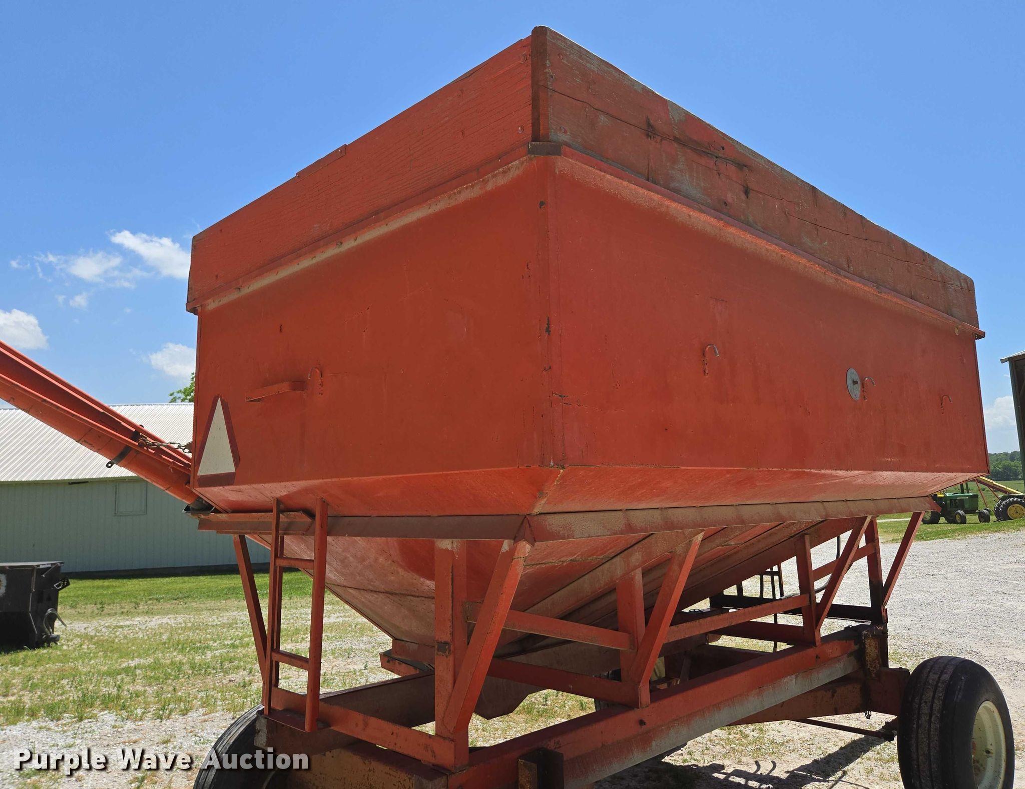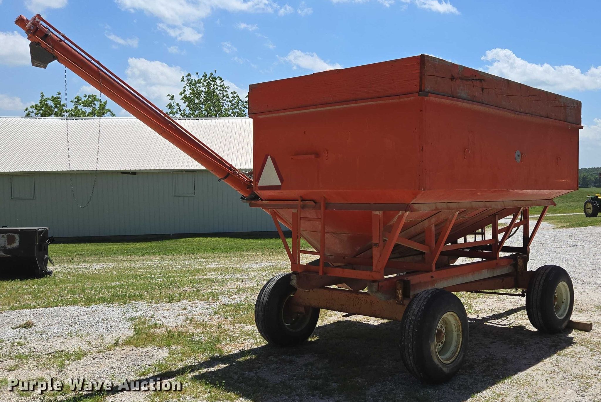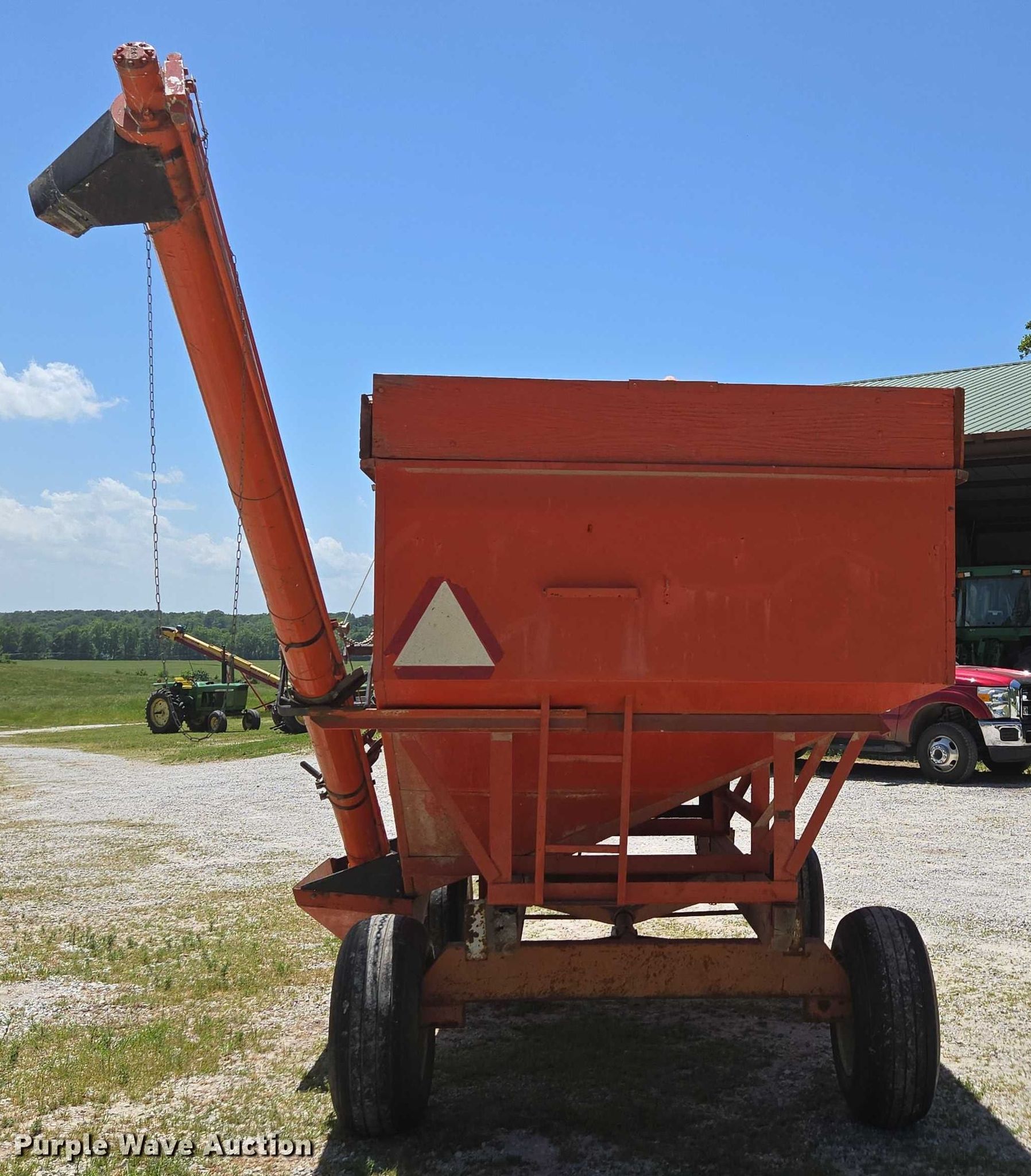Purple Wave is selling a used Grain Cart or Gravity Wagon in Missouri. This item is a Grain cart with the following: Auger, Length: 13' 6", Diameter: 6", Lift: Manual, Shut-off gate: Manual, Compartments: 1