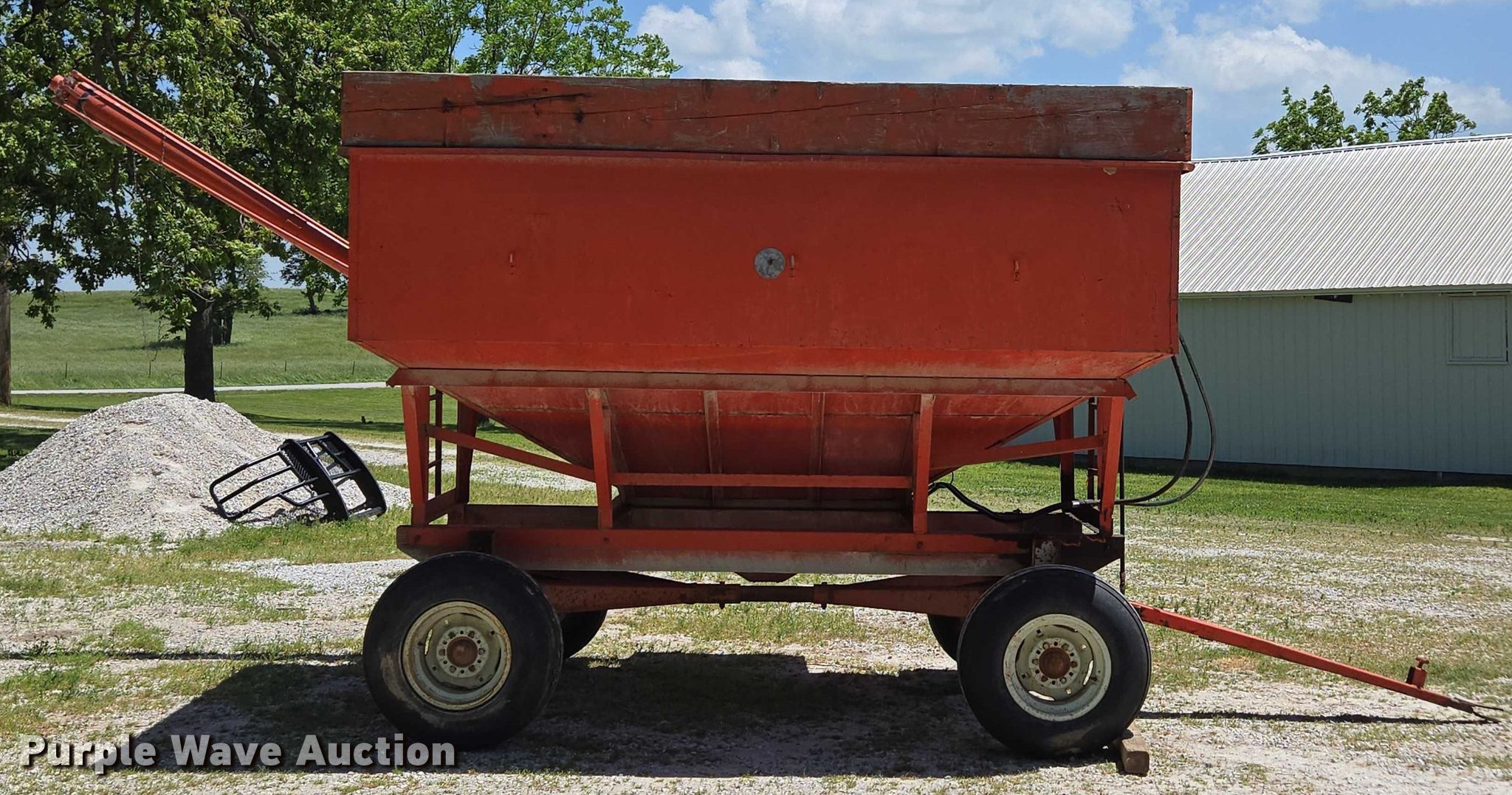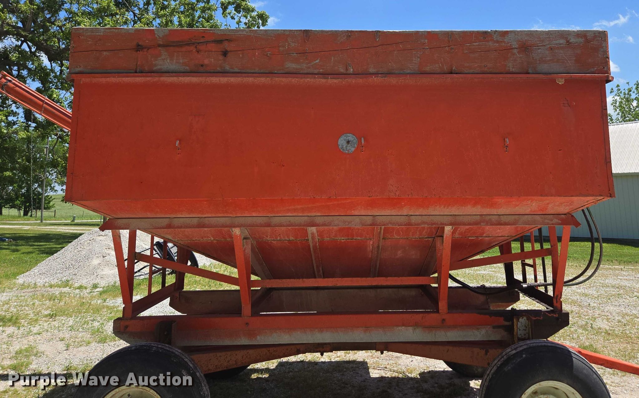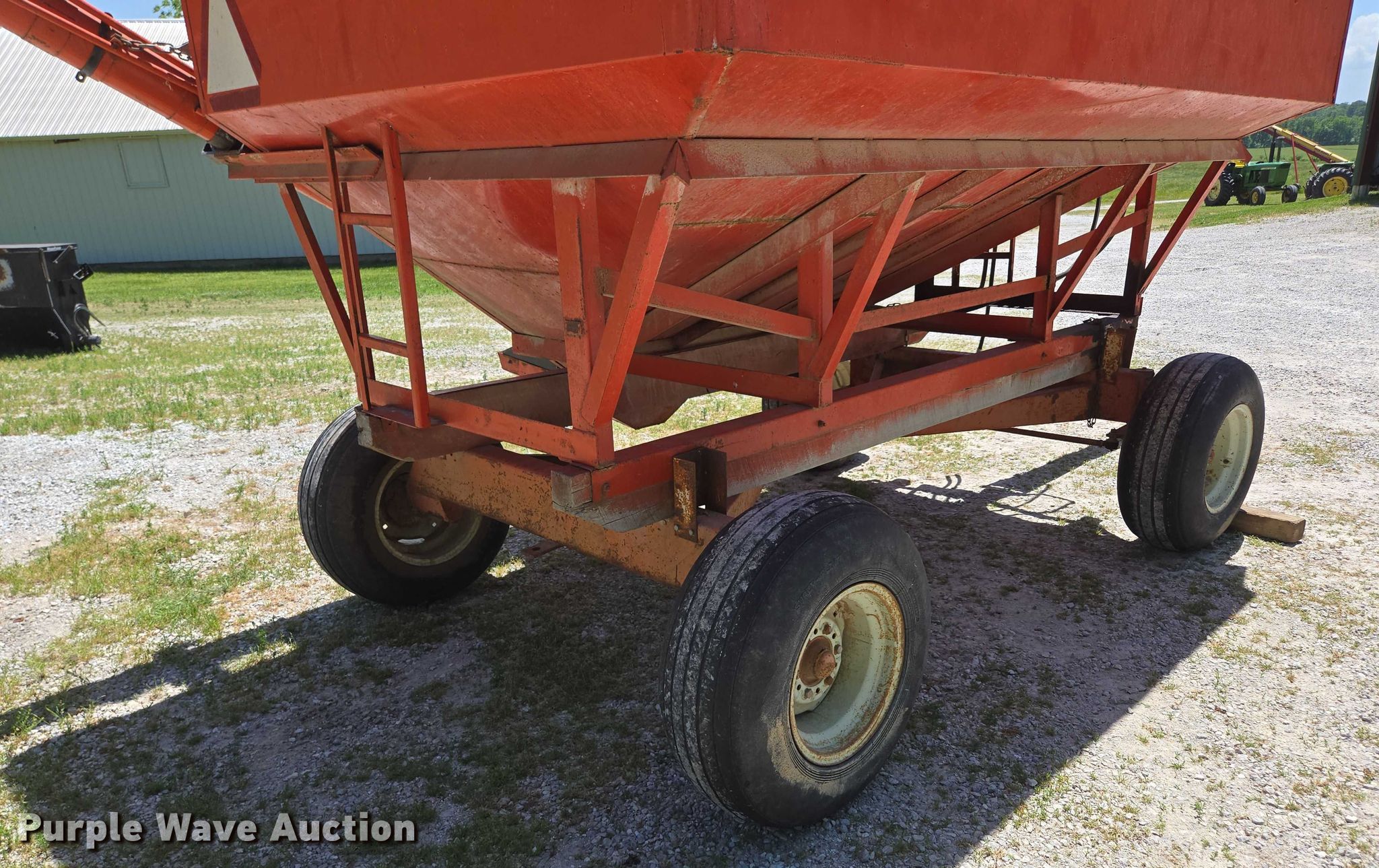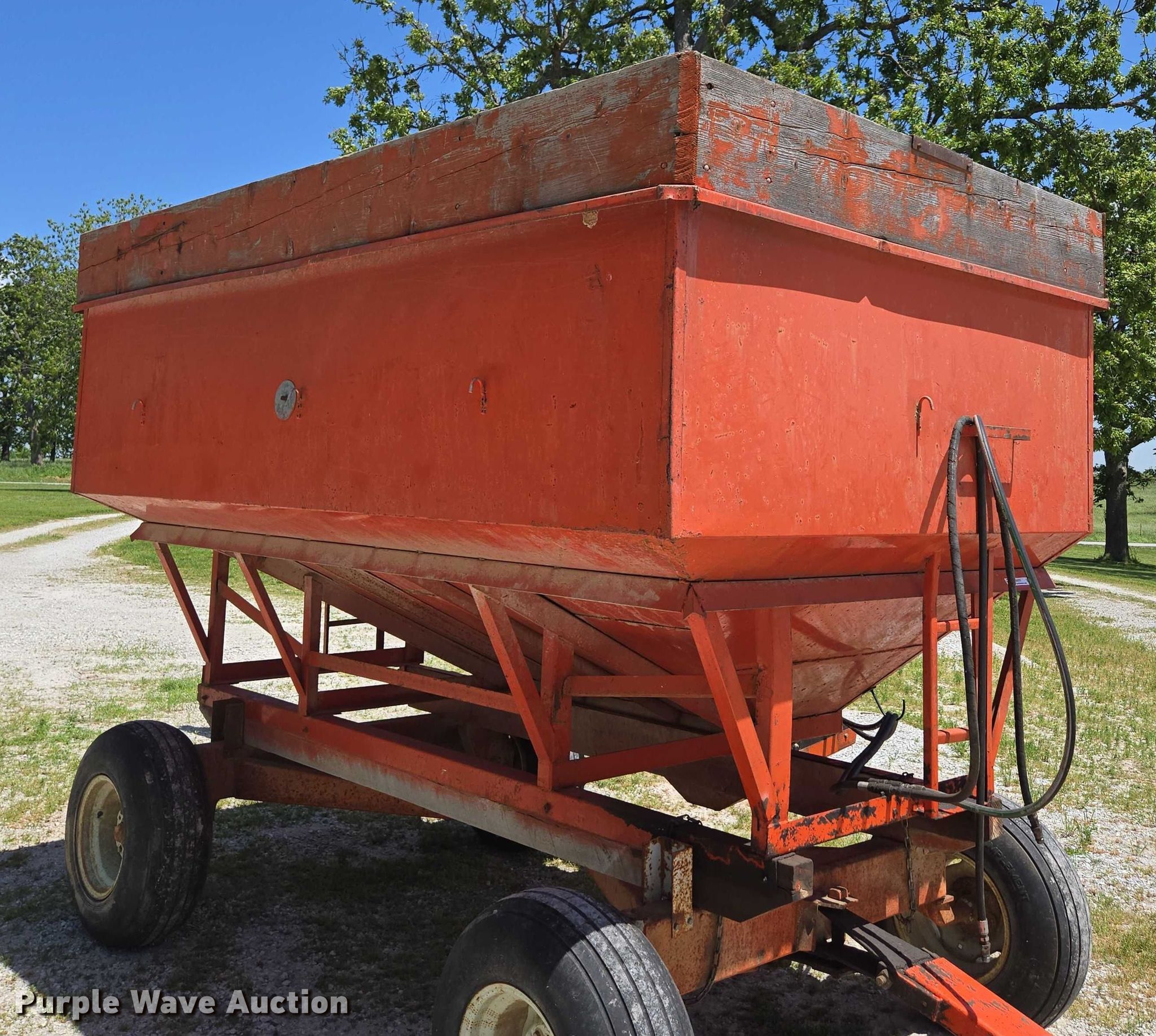 Purple Wave is selling a used Grain Cart or Gravity Wagon in Missouri. This item is a Grain cart with the following: Auger, Length: 13' 6", Diameter: 6", Lift: Manual, Shut-off gate: Manual, Compartments: 1