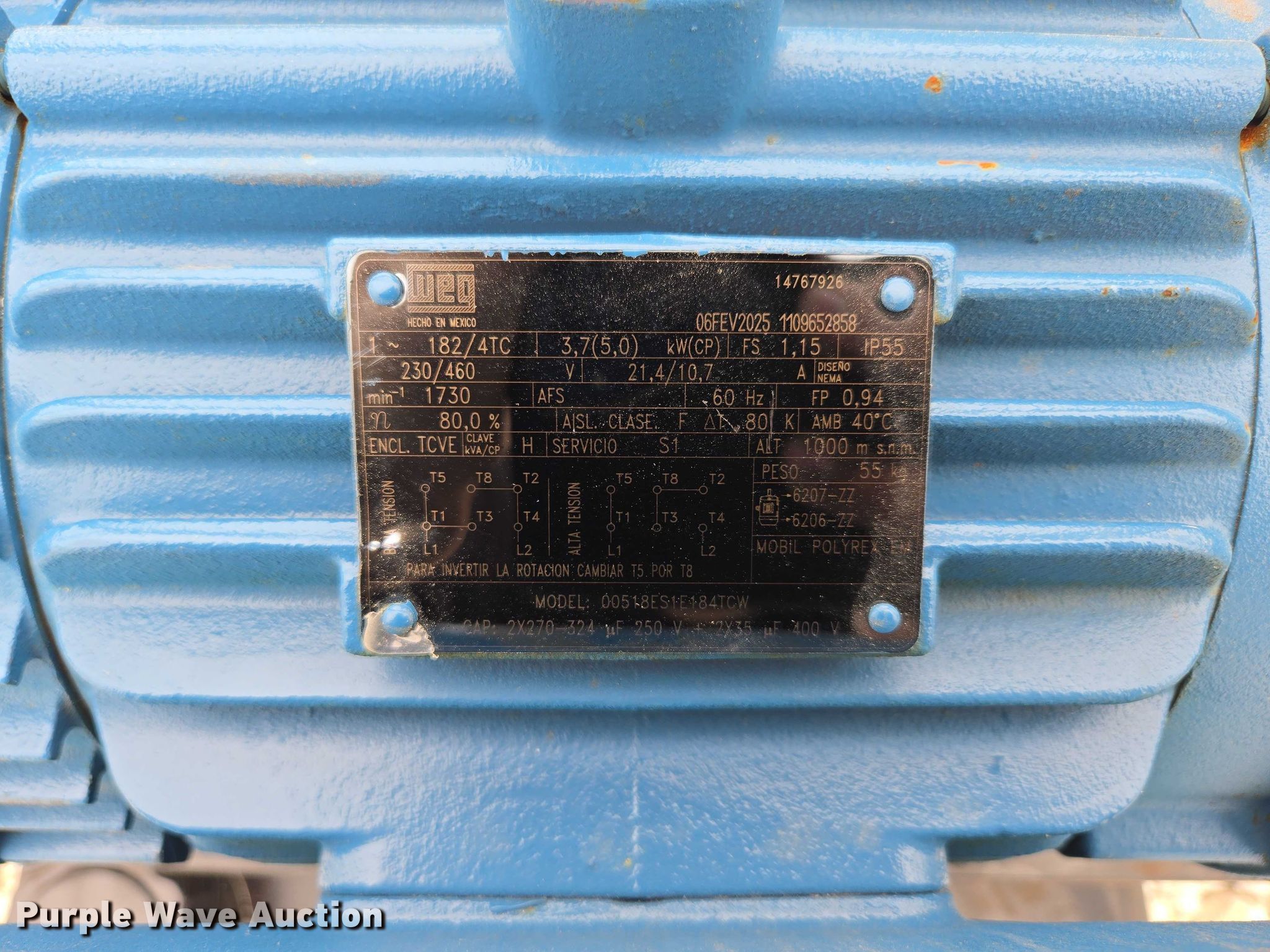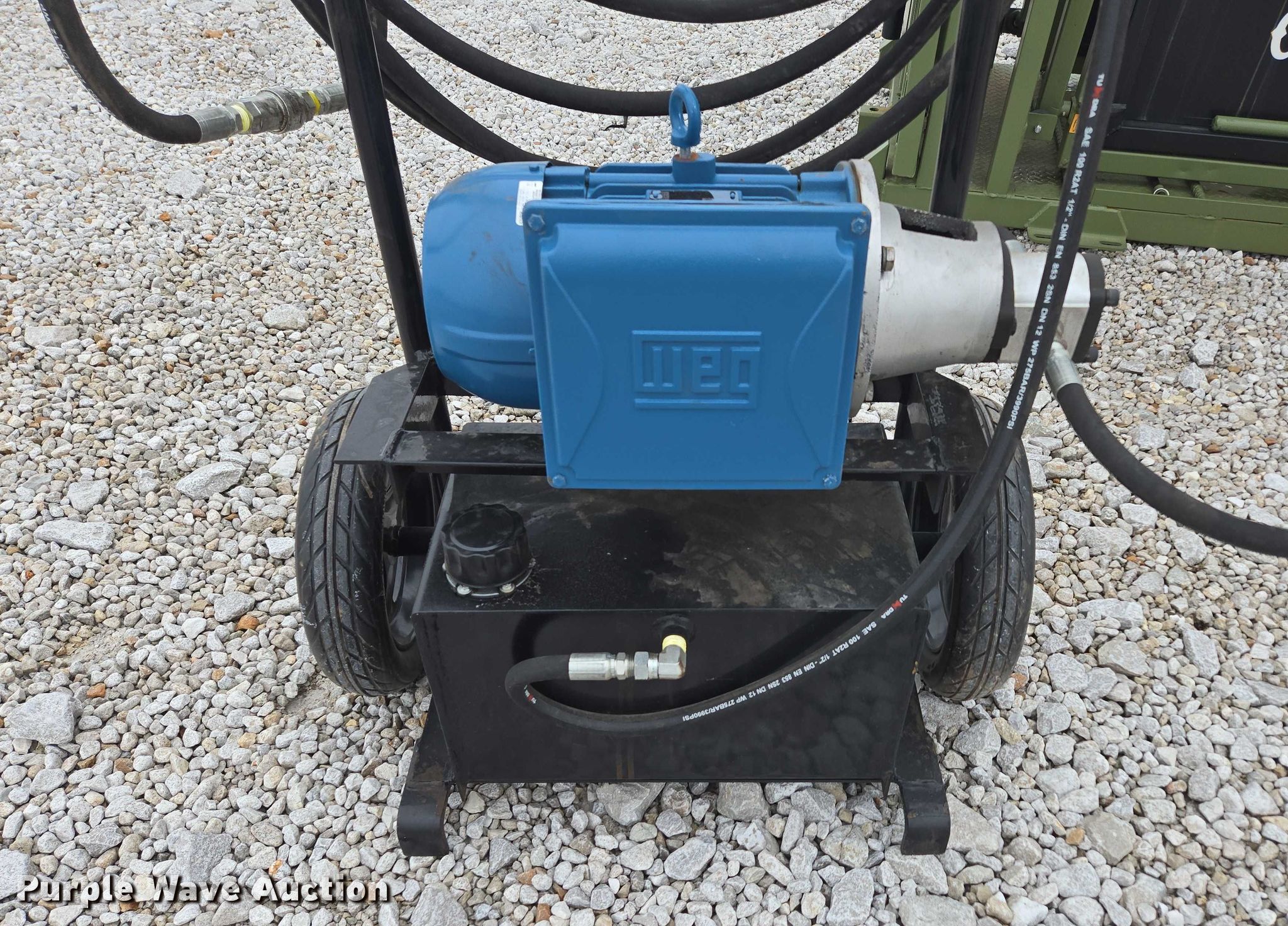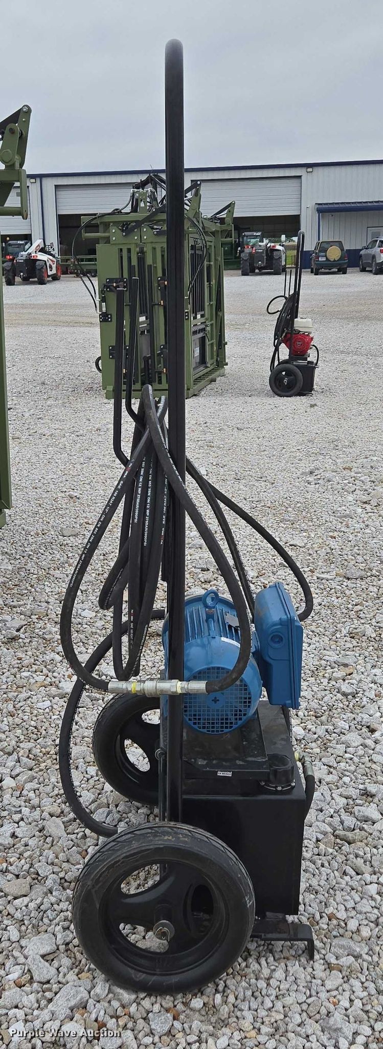 Cattle Baron livestock squeeze chute. Electric Motor. WEG 00518ES1E184TCW, Volts: 230/460, Phase: Single. Features Overall dimensions: 11'L x 4' 6" W. Cart tires Size: 4.80/4.00-8. Notes Unused, Self contained electric over hydraulic hydraulic pump and hoses included, Gas powered pump not included. RBW Agricutural LLC. Bolivar, MO 65613