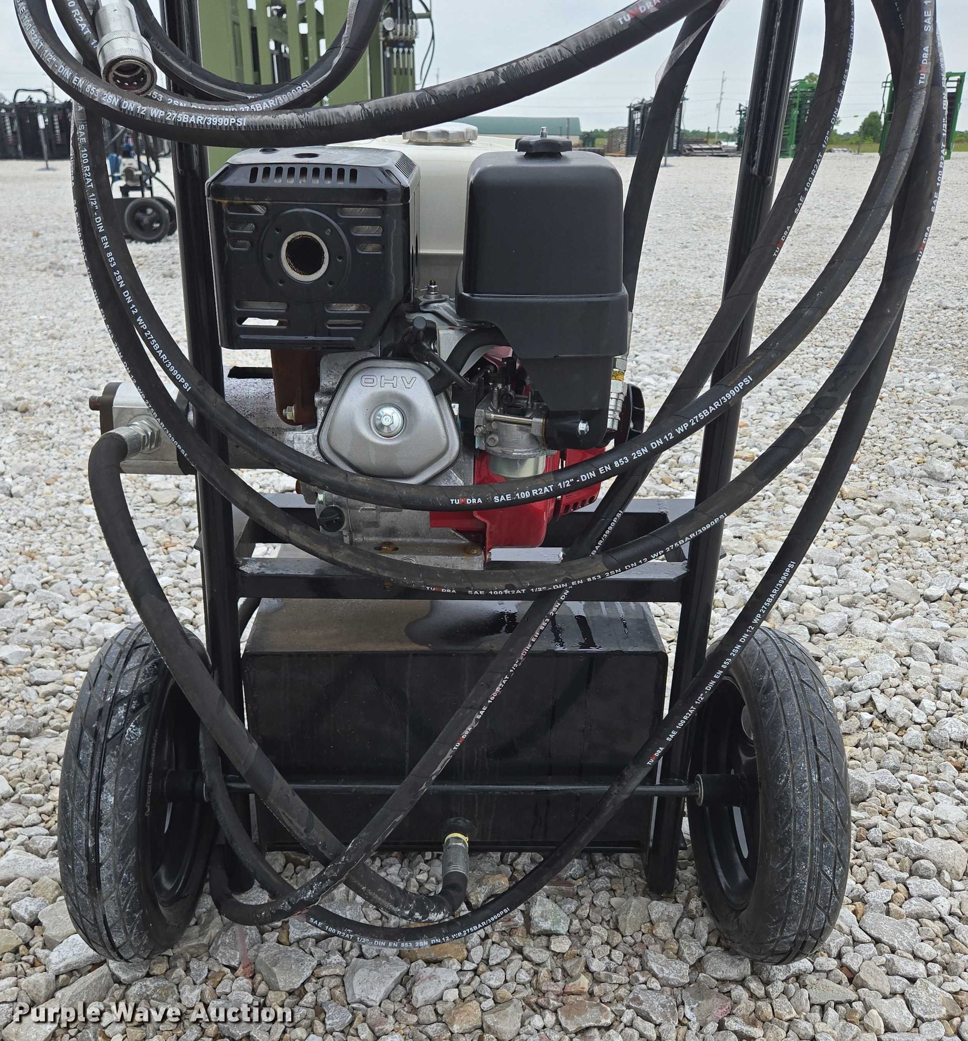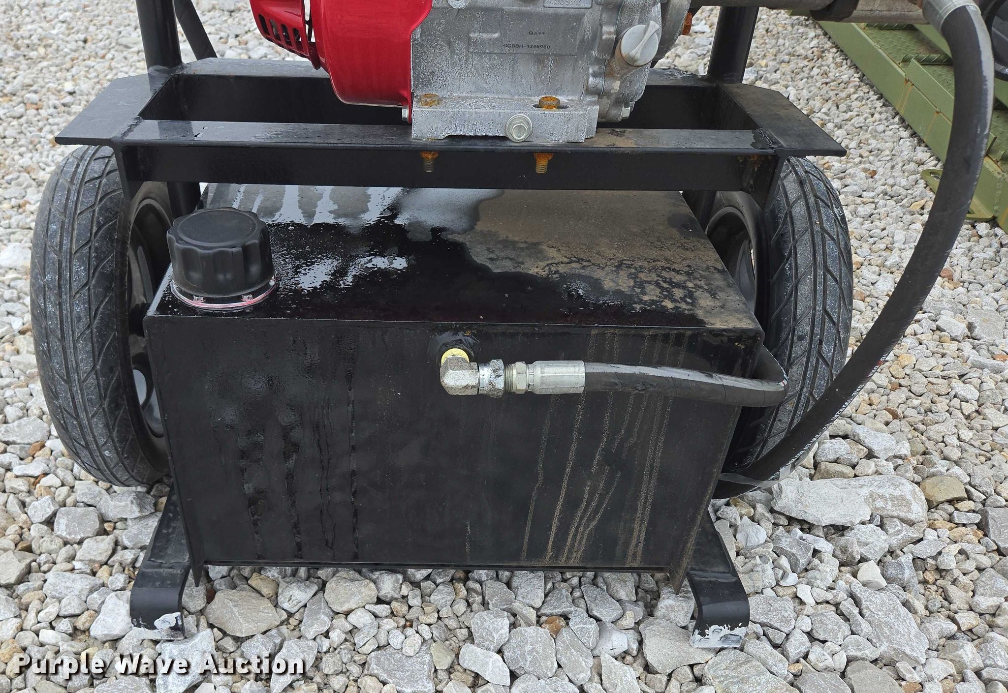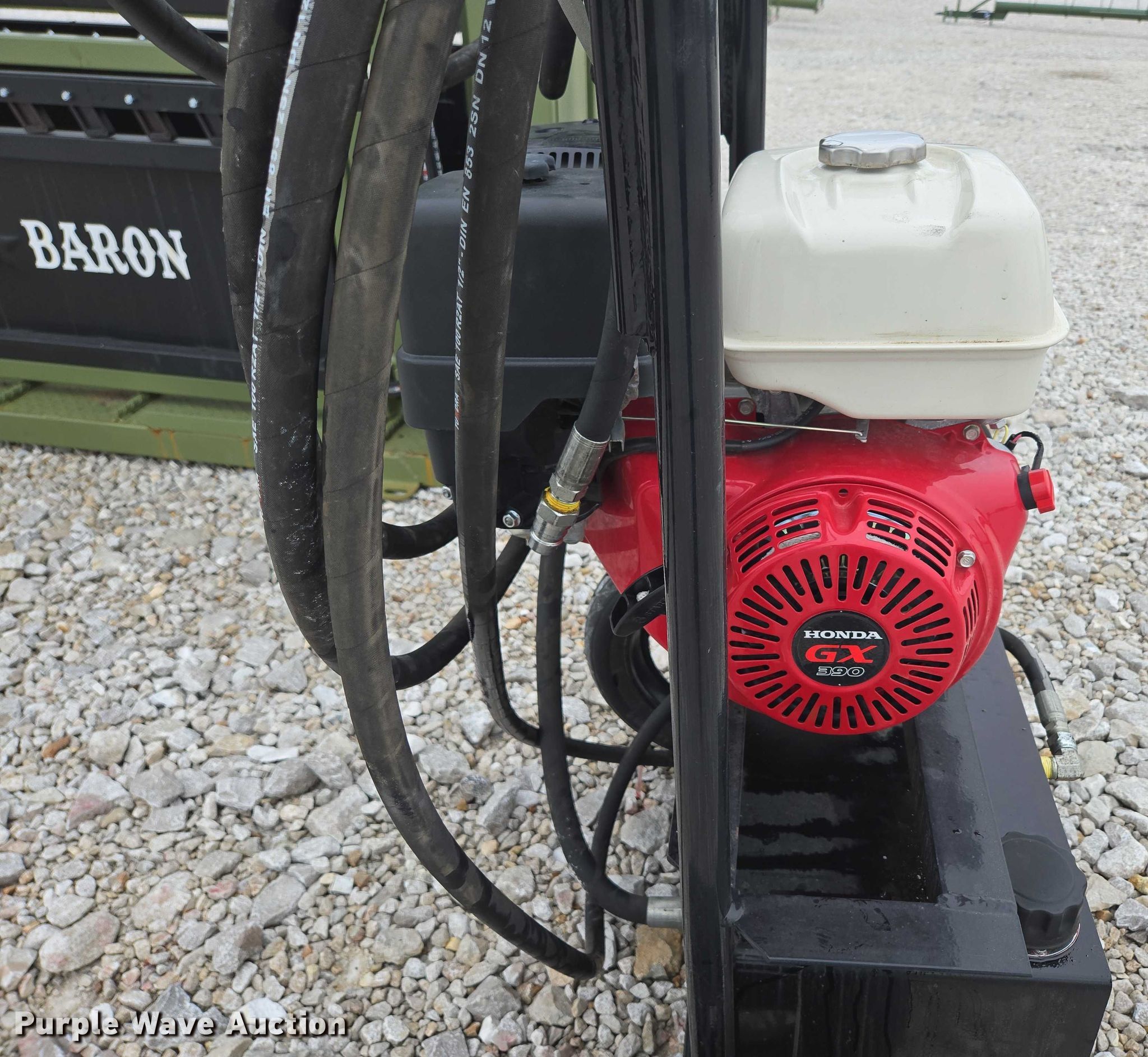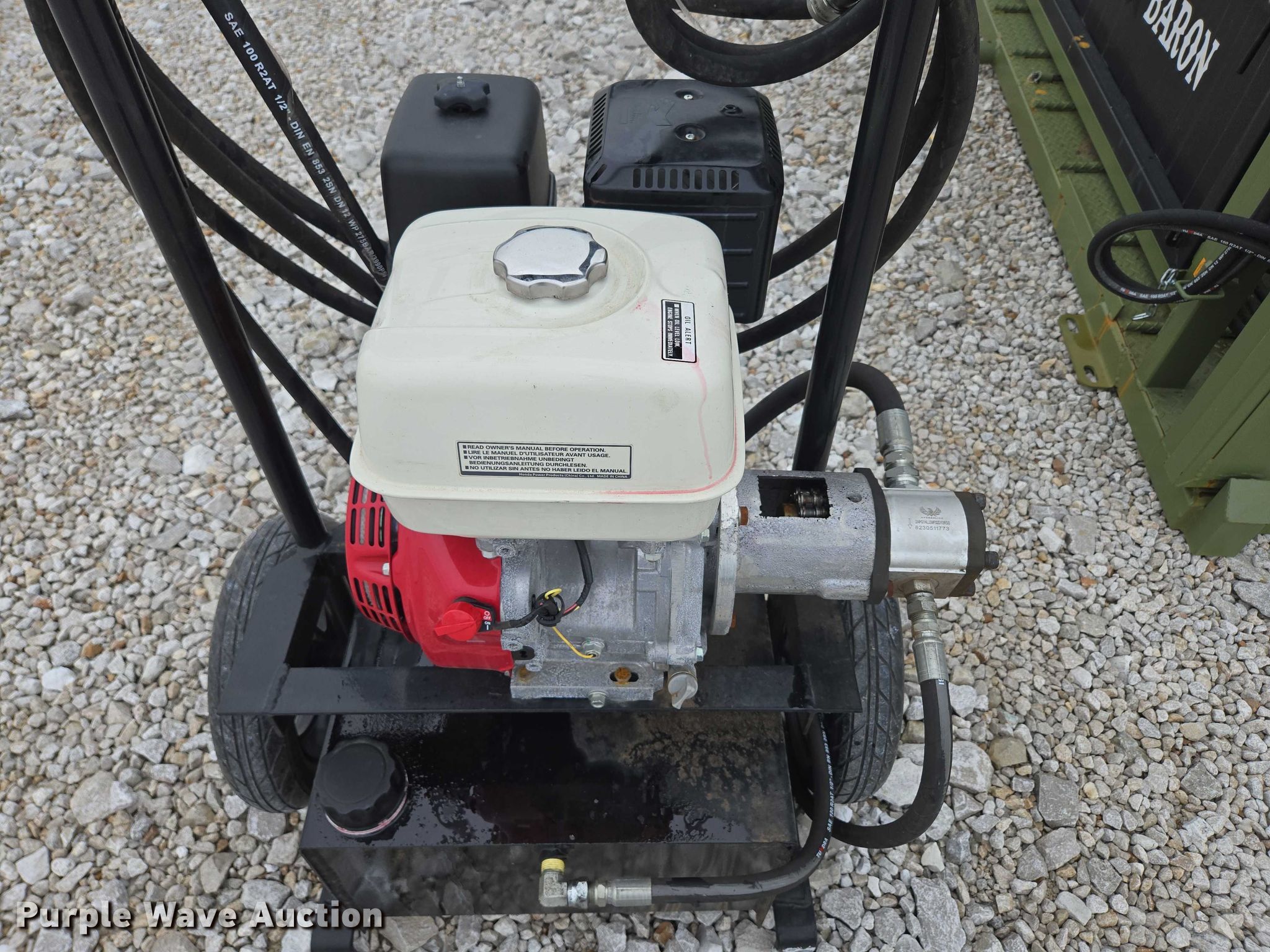 Cattle Baron livestock squeeze chute. Engine. Honda GX 390, Cylinders: 1, Fuel type: Gas. Features Overall dimensions: 11'L x 4' 6" W, Hydraulic pump engine. Cart tires Size: 4.80/4.00-8. Notes Unused, Self contained engine driven hydraulic pump included, Left neck extender bar issues, only actuates part way. RBW Agricutural LLC. Bolivar, MO 65613