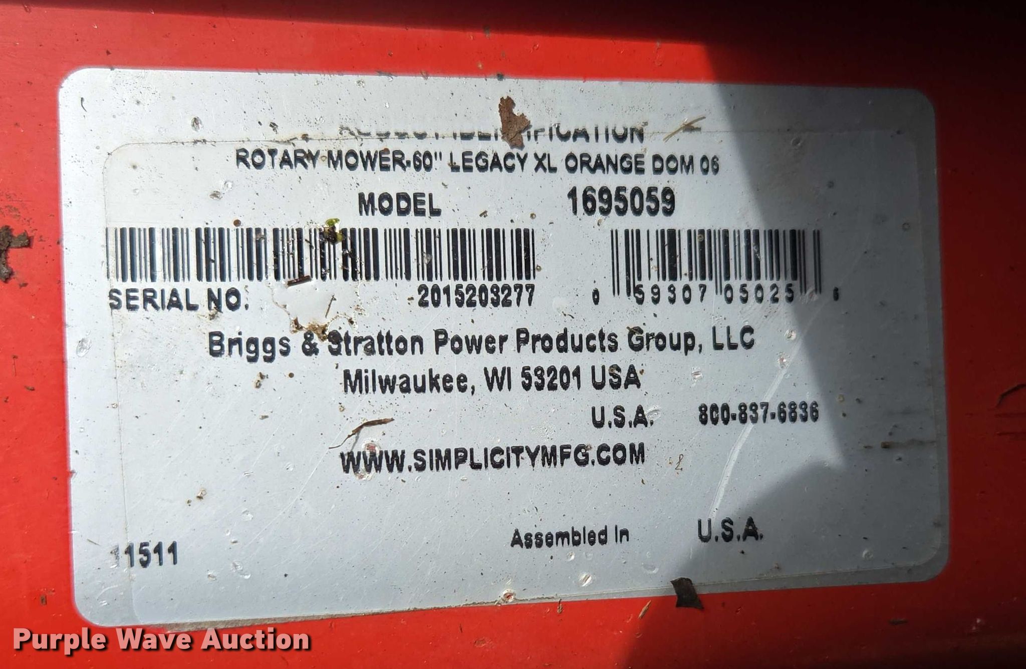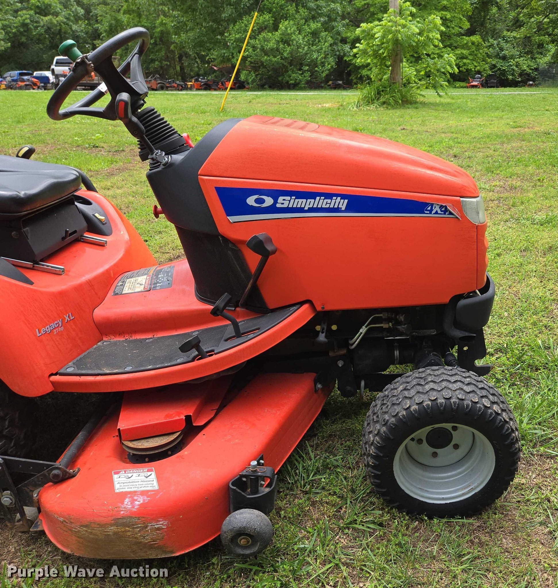 Purple Wave is selling a used Lawn Mower in Missouri. This item is a Simplicity Legacy XL lawn mower with the following: Hours: 1,275 on meter, Cutting width: 60", Serial: 00519