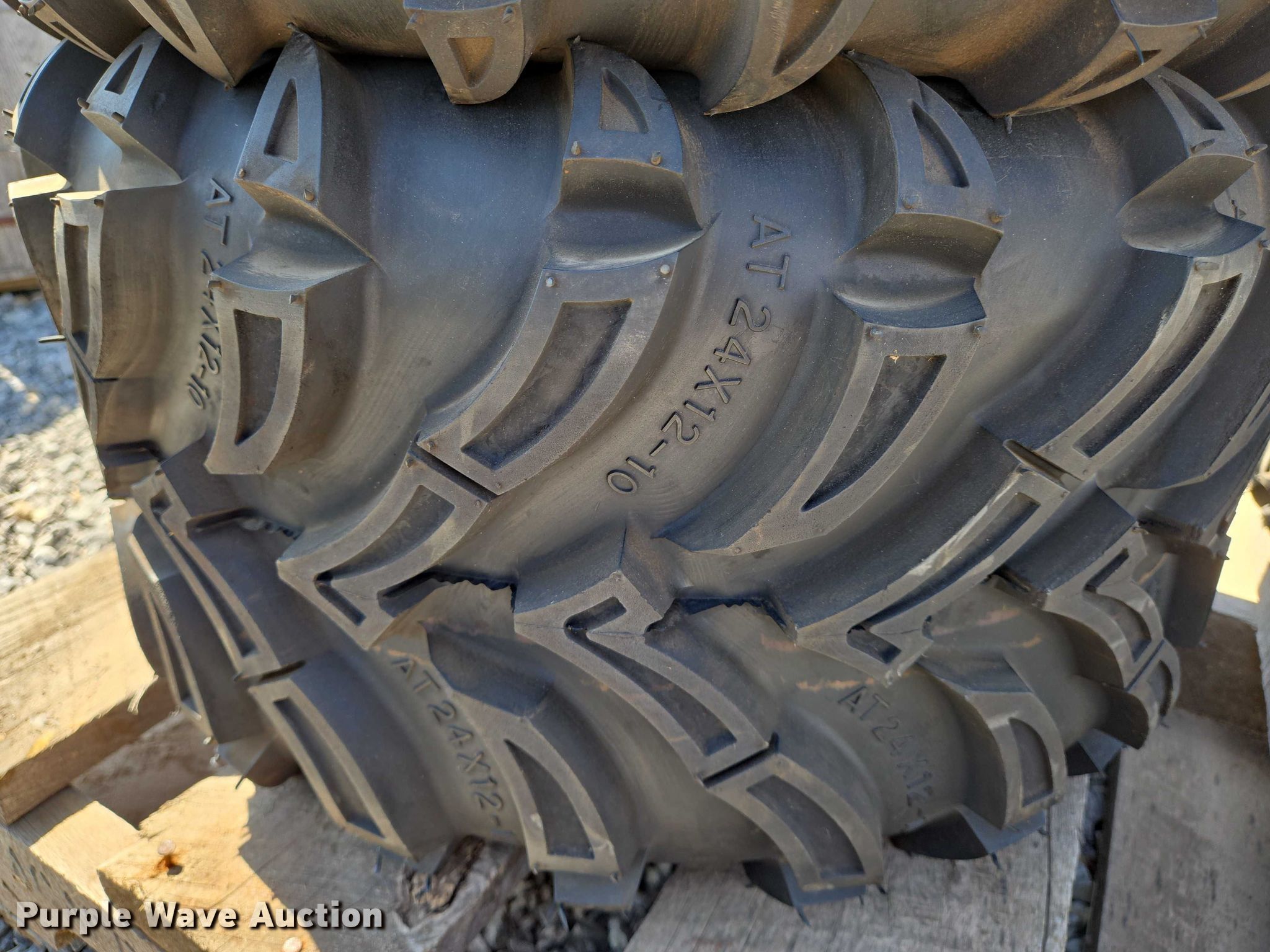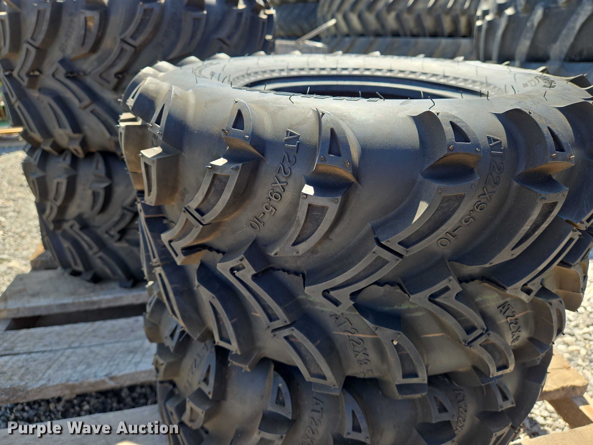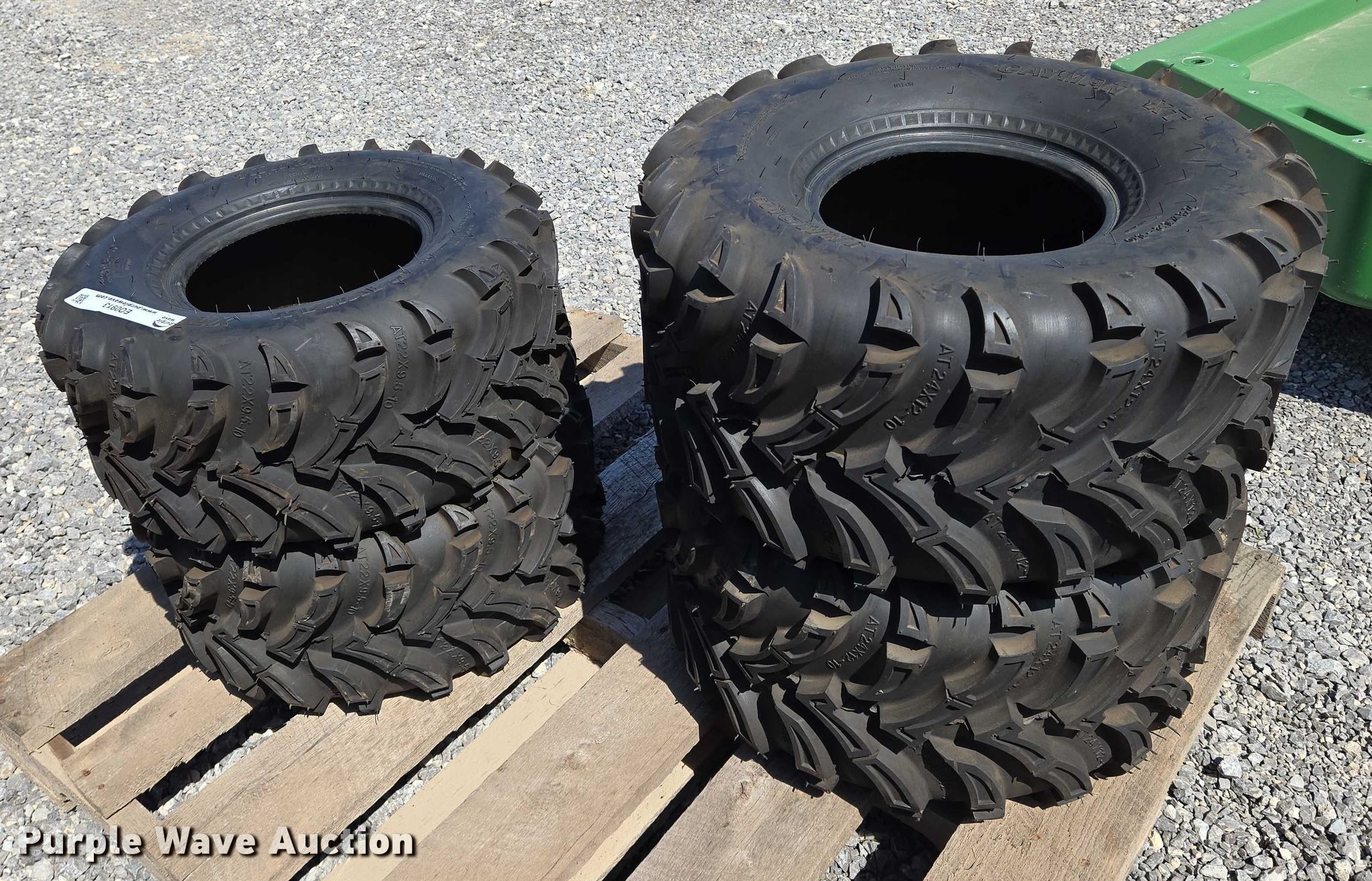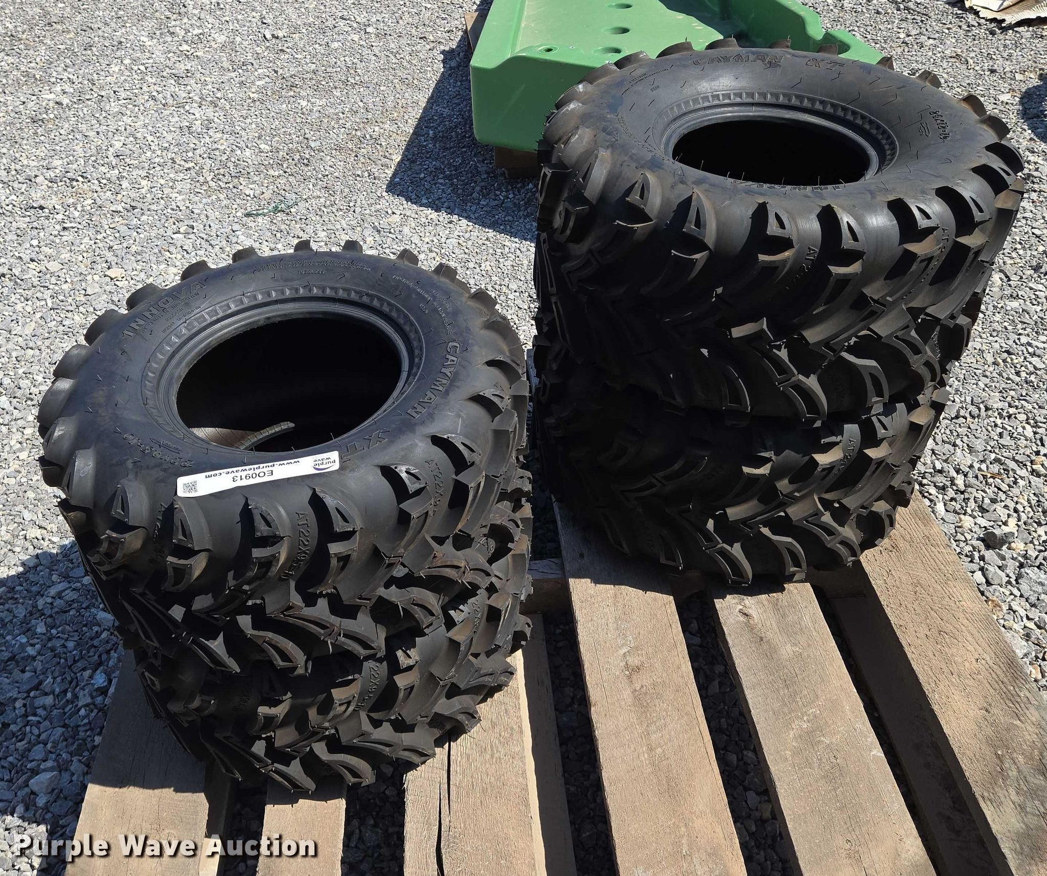 Purple Wave is selling a used Industrial Tires or Tracks in Oklahoma. This item is a (4) Cayman XT tires with the following: (2) Cayman XT 22x9.50-10 tires, (2) Cayman XT 24x12-10 tires