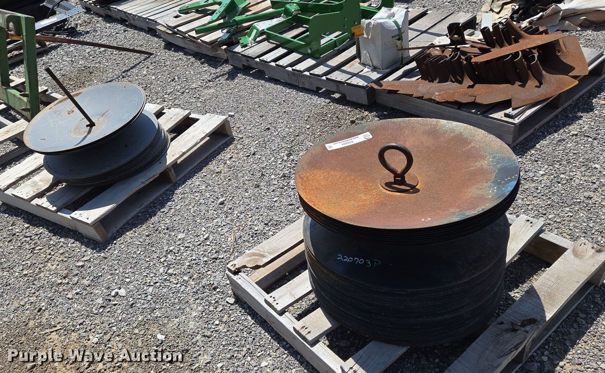 Purple Wave is selling a used Ag Equip. Other in Oklahoma. This item is a Ag equipment with the following: (2) pallets of disks, Diameter: 22", (2) pallets of sweeps, Width: 7" to 19"