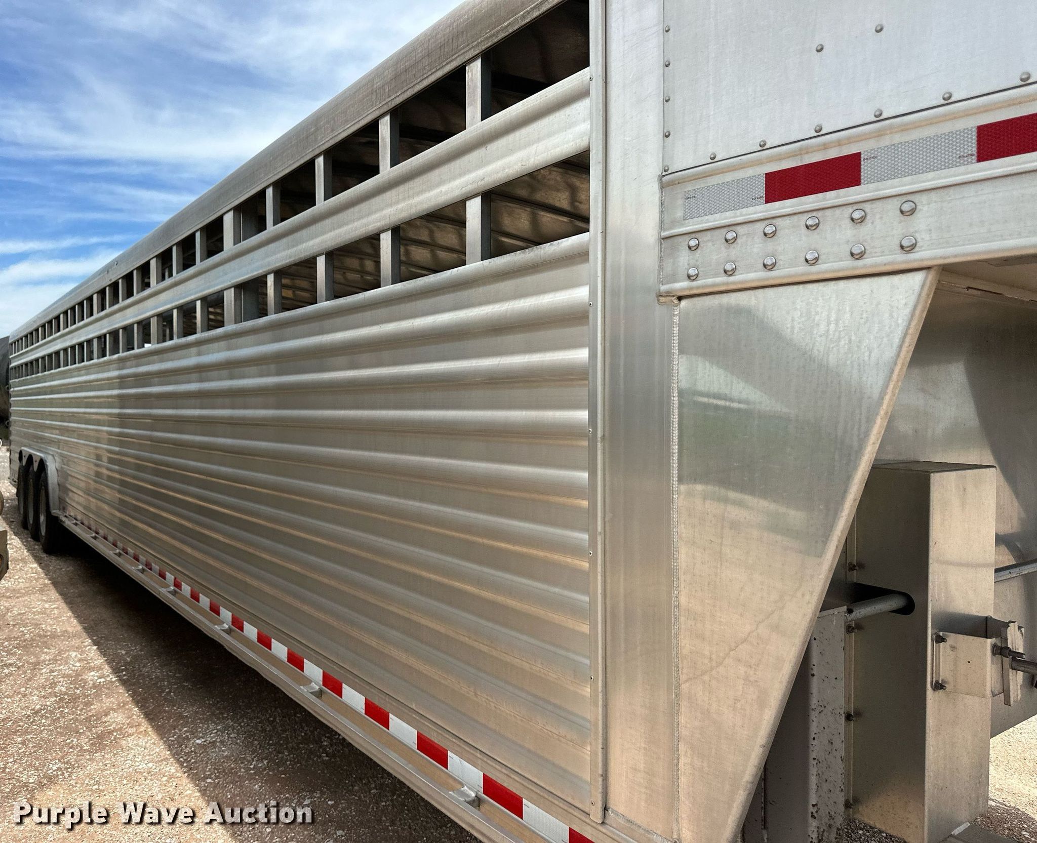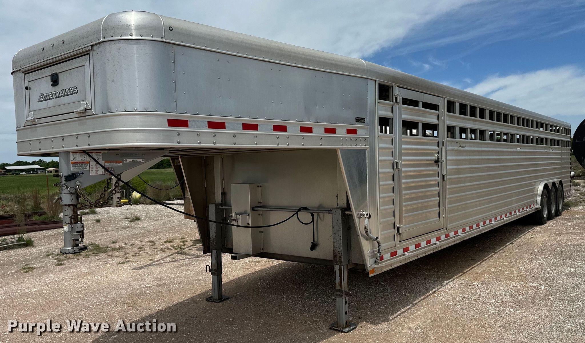 2023 Elite Trailer livestock trailer. VIN: 5MKWG3838P0021506. Dimensions Overall: 45' L x 102" W, Body: 37' L x 96" W. Features Center gates: 3, Ground load. Chassis Hitch: Gooseneck, Landing gear: Dual, Suspension: Spring, Brakes: Electric, Axles: Triple, GVWR: 25,963 lbs, GAWR: 8,000 lbs. Tires Steel wheels, Size: 235/75R17.5. Transfer of ownership documentation will be a bill of sale. Reydon, OK 73660