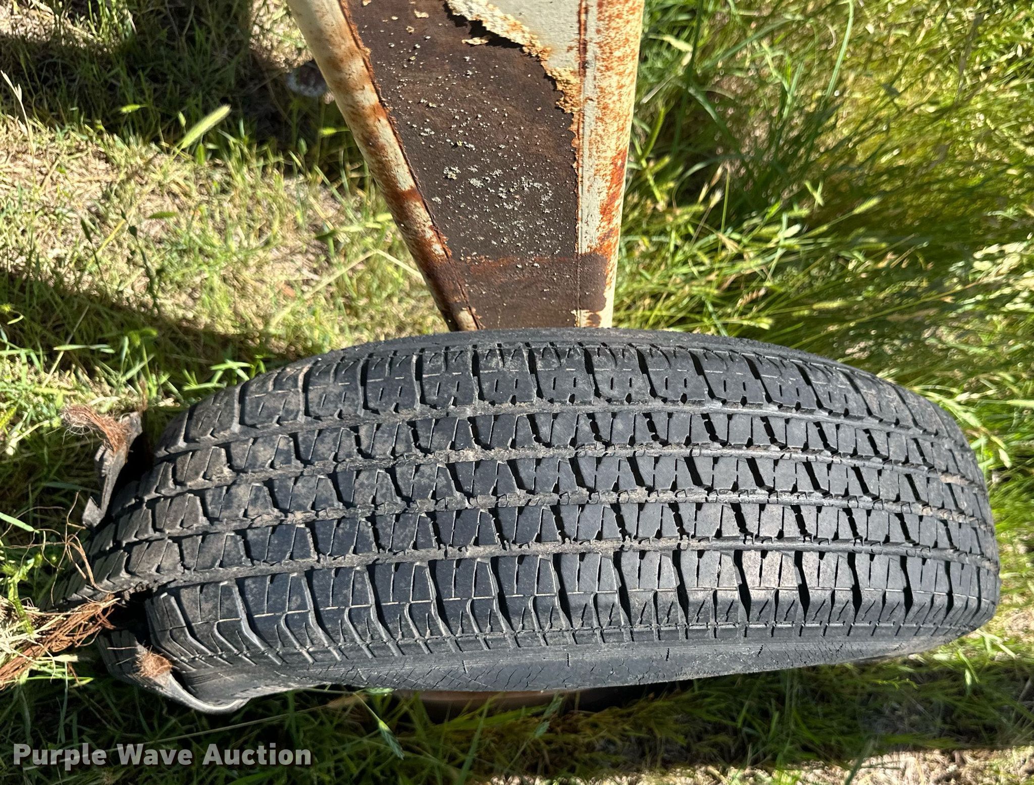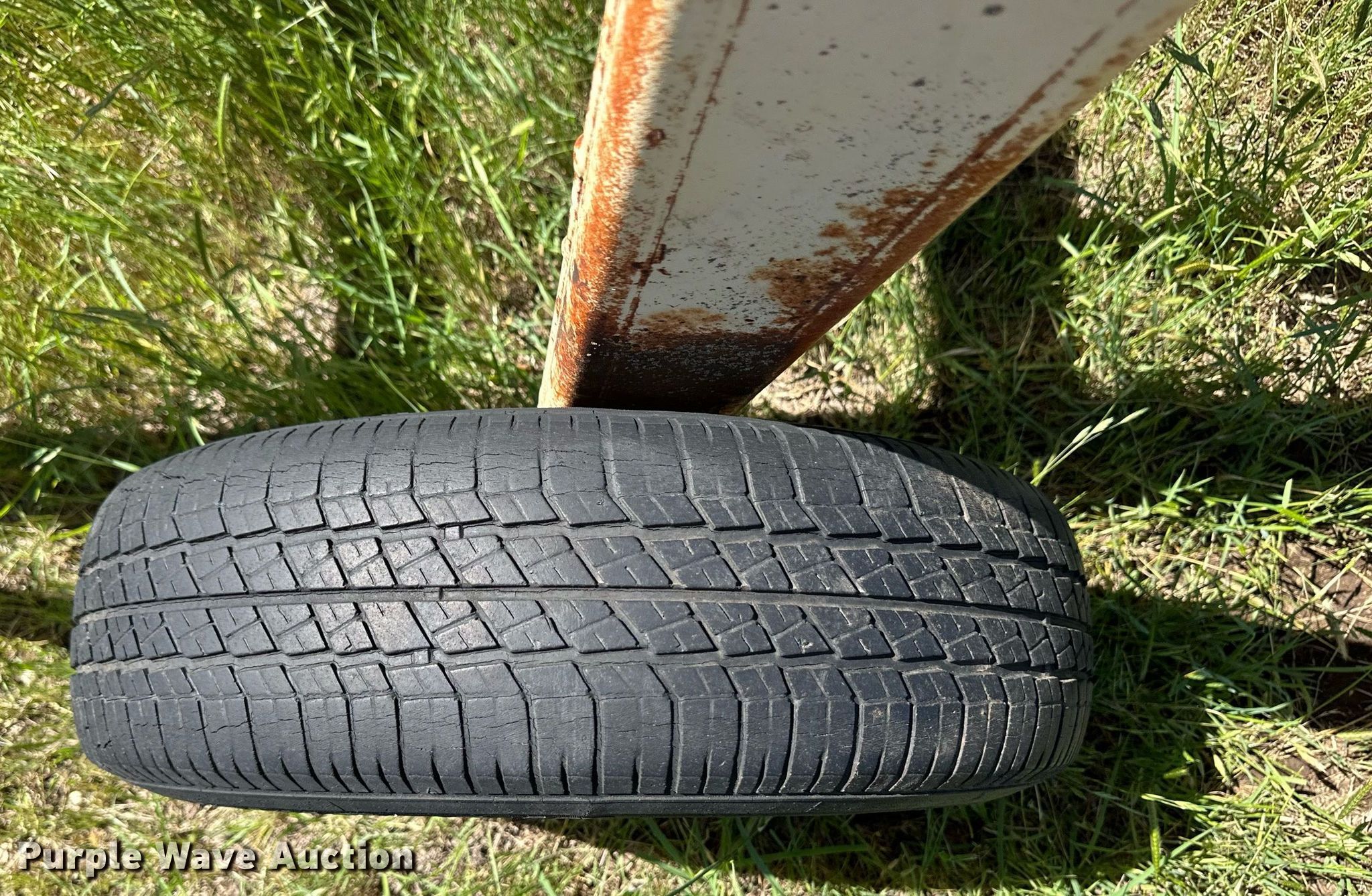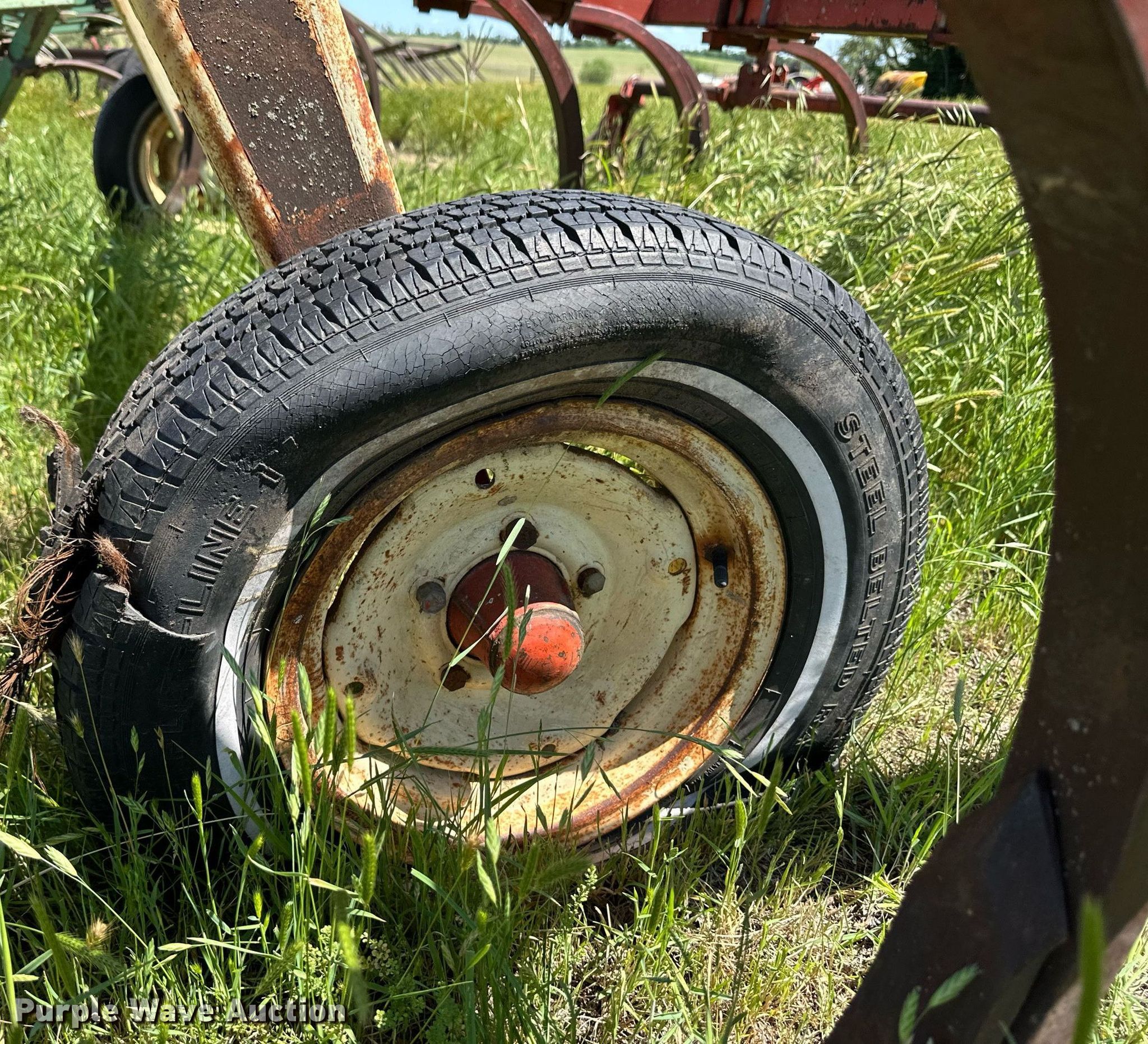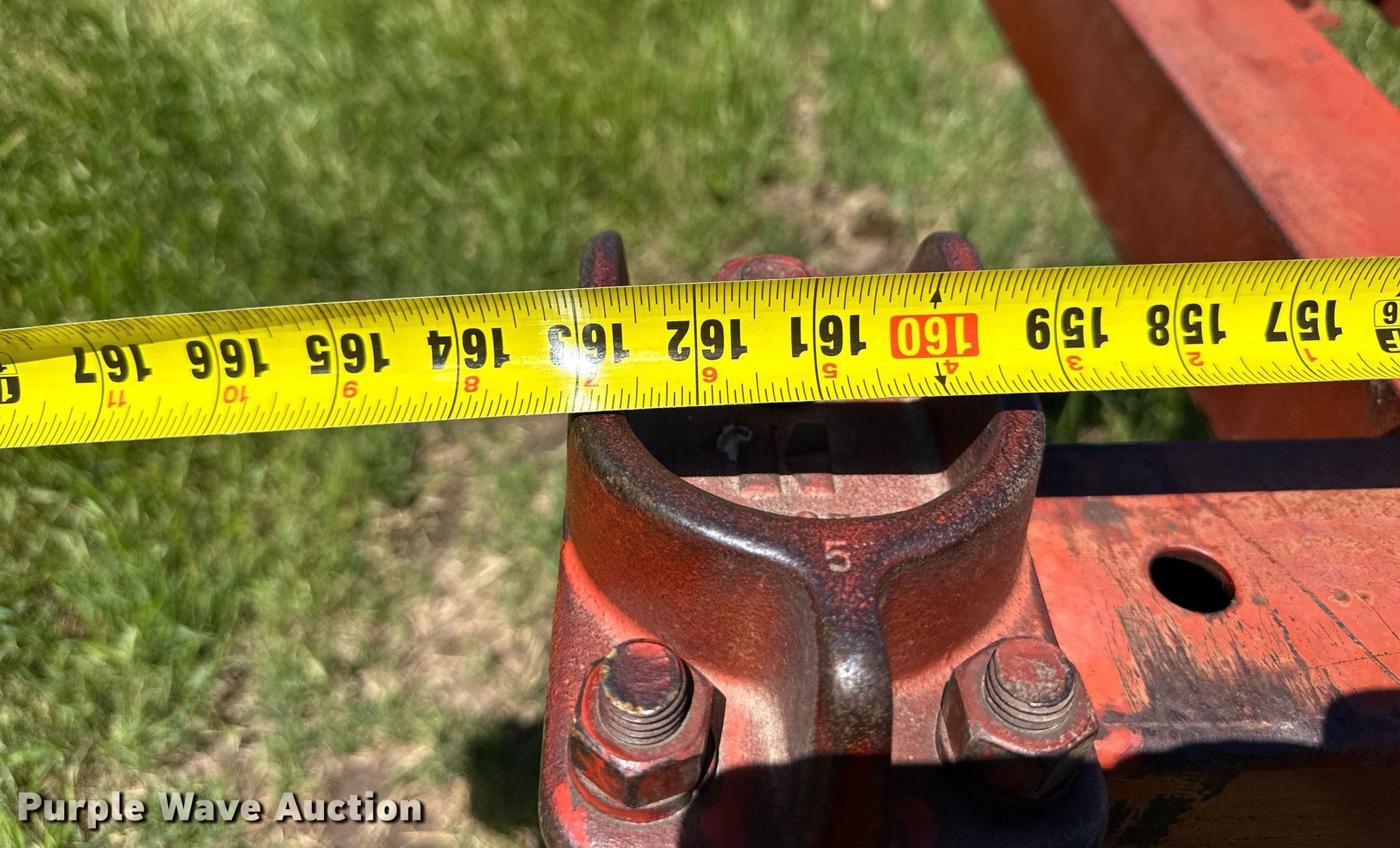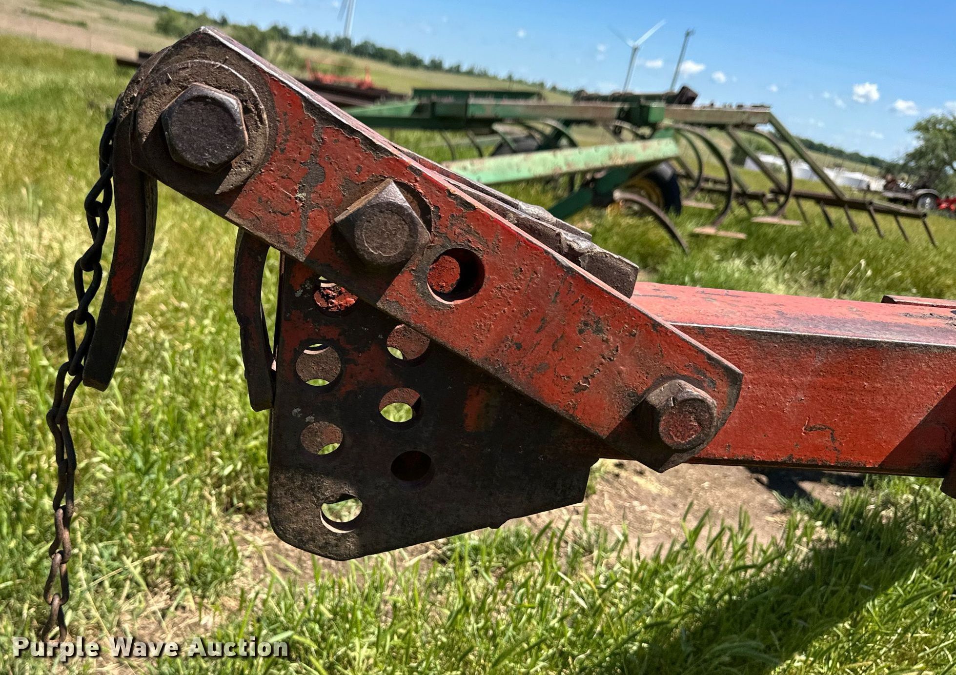 Krause 271 chisel. Overall width: 13' 6", Serial: 4538. Features Shanks: 15, Operation Hydraulic lift, Attachments Rolling pickers/ treader. Tires Tire size: 195/75R14. Notes Hydraulic lift cylinder missing, Flat tire. Vici, OK 73801