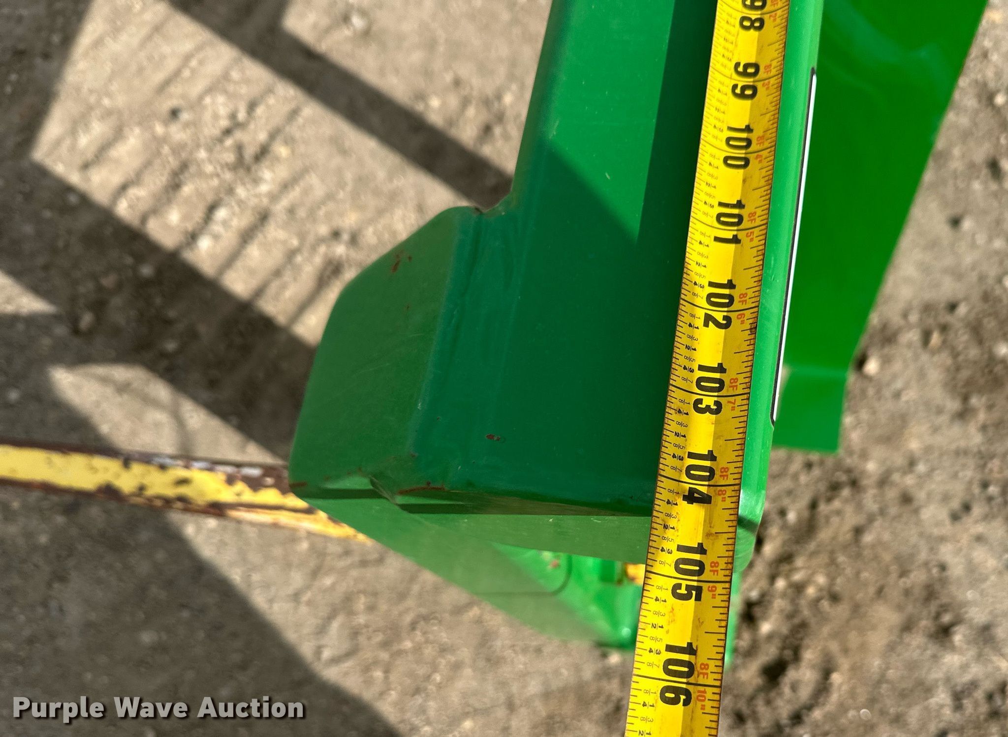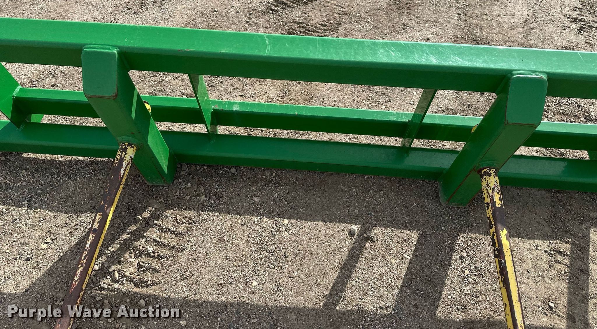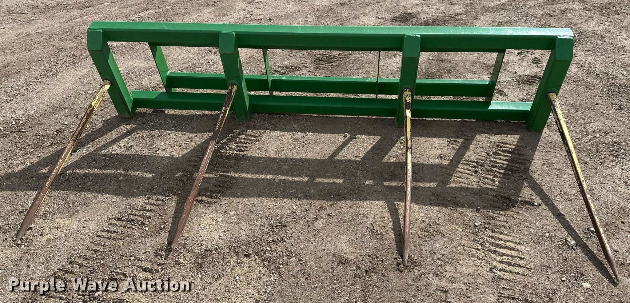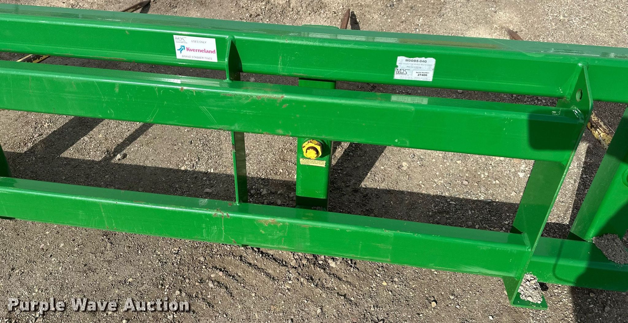 MDS Bale spear. Serial: 27406. Features Bale spears: 4, Spear length: 43" Length: 4' 2", Width: 104". Notes Brackets missing. Floyd's Kubota. Fort Pierre, SD 57532