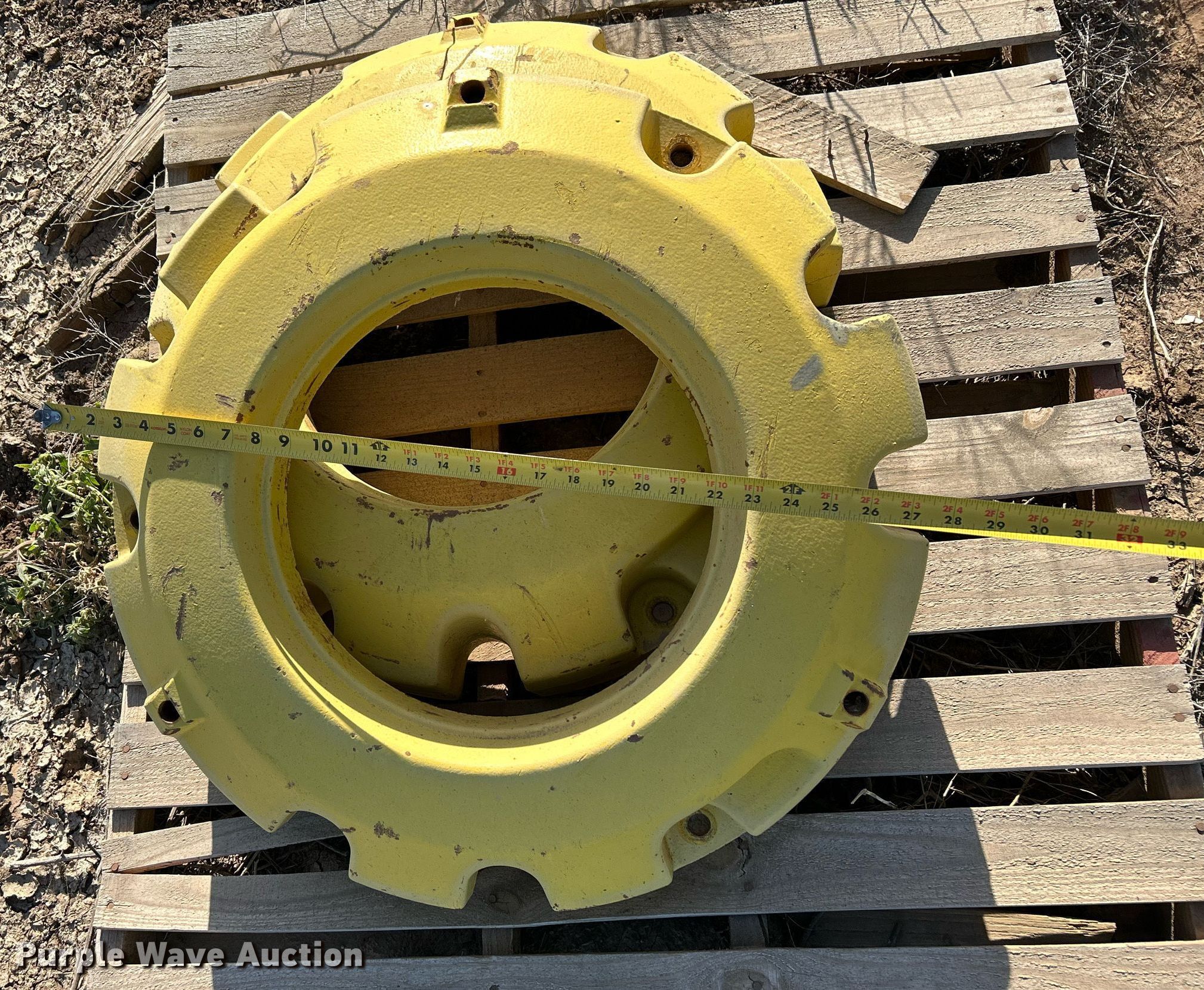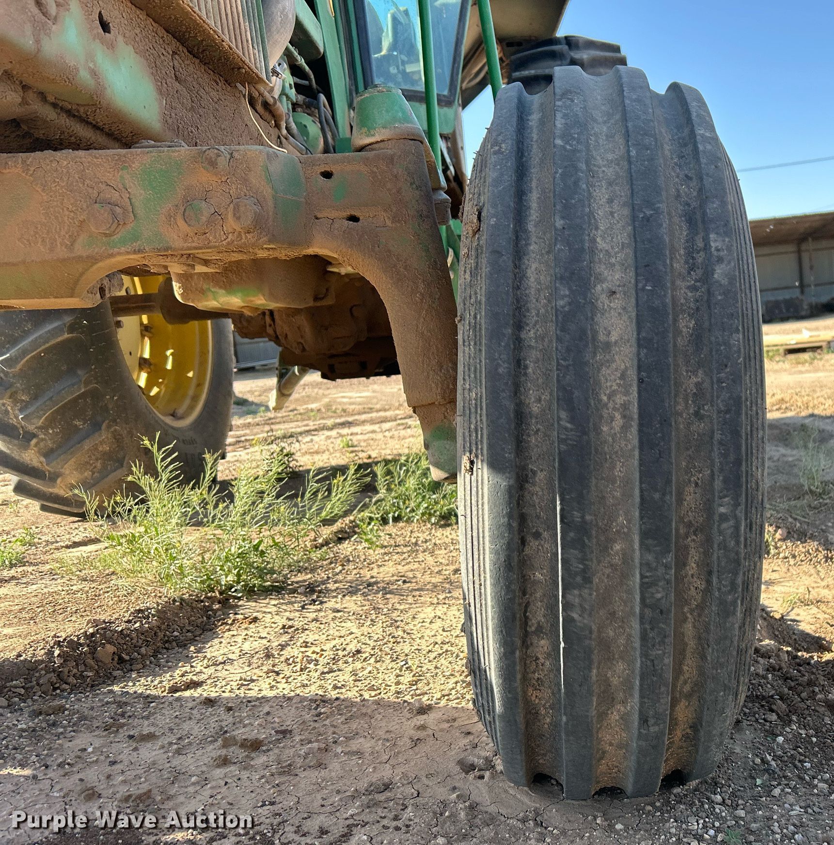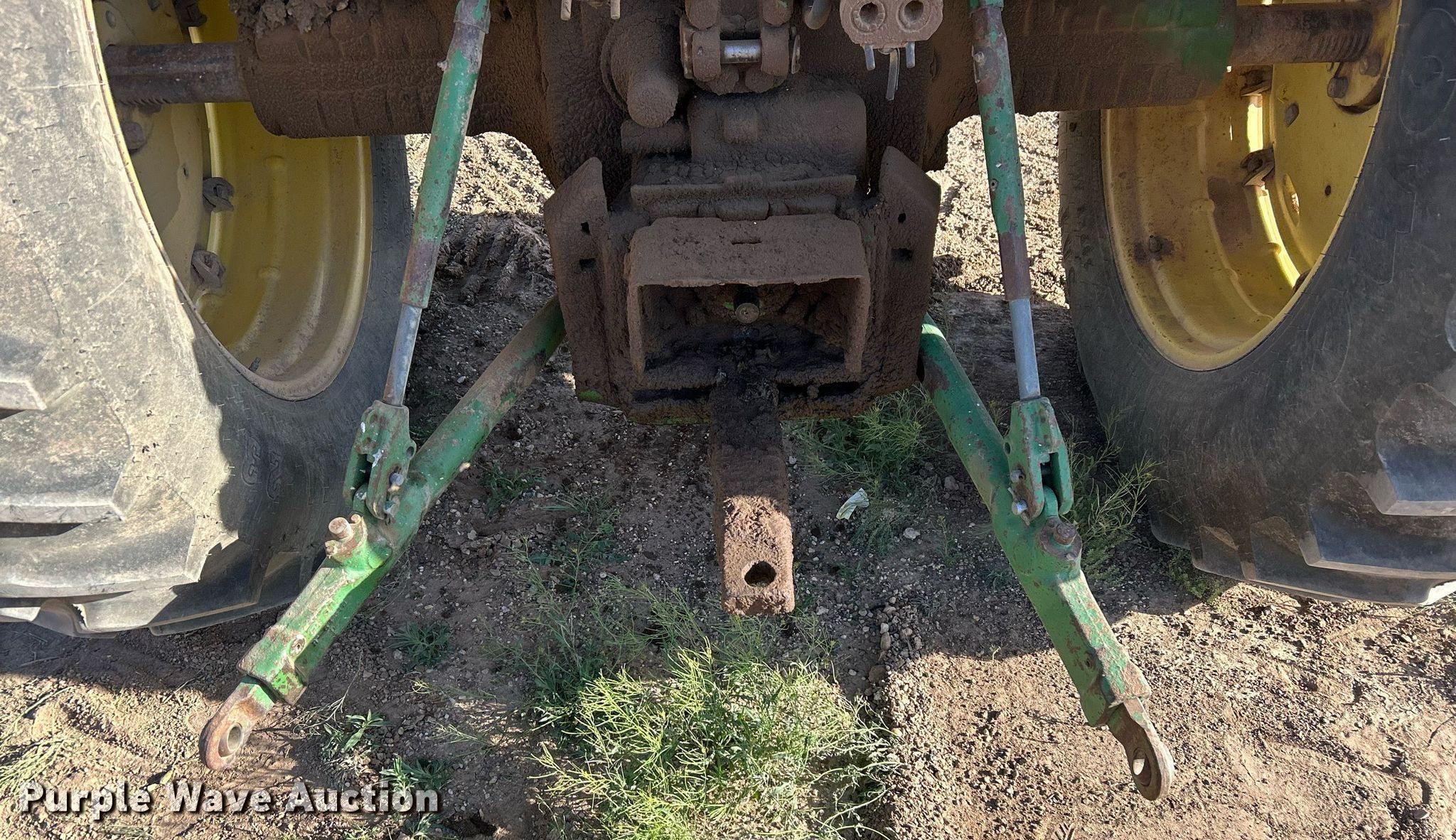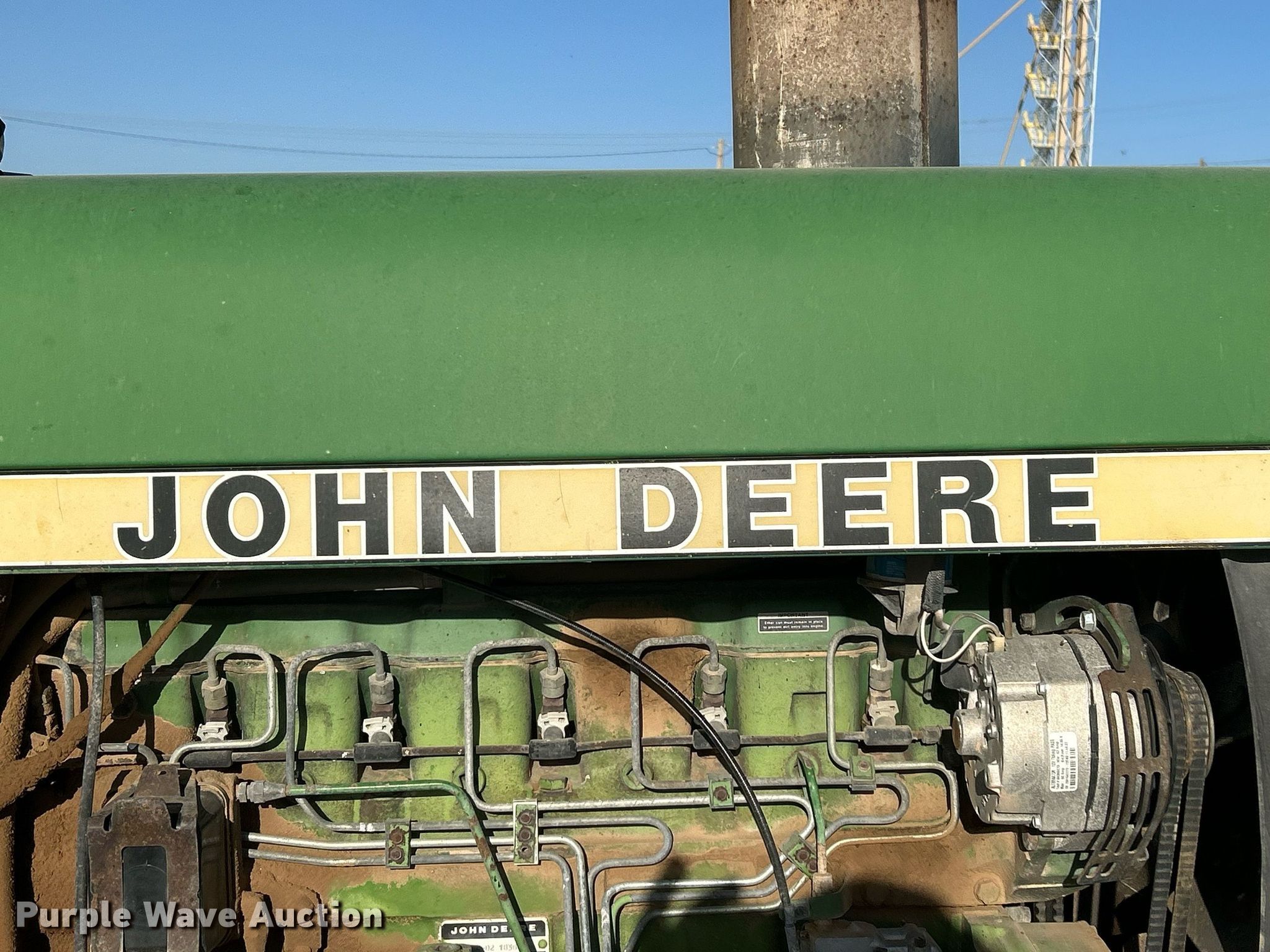 1978 John Deere 4240 tractor. Hours: 97 on meter Actual hours unknown, Serial: SG22-005670RW. Engine John Deere, Serial: 6466DR-02 183040RG, Cylinders: 6, Fuel type: Diesel. Transmission Powershift, Differential lock. Operators station AC, Heat. Features PTO: 1 3/4" 1000, Three point, Seven pin outlet, Hydraulic remote sets Rear: 2, Suitcase weights: 9. Tires Front: 10.00-16, Rear: 18.4-38, Wheel weights: 4. Notes additional wheel weights included, Transmission issues, stuck in forward high gear. Cobalt Cattle Company. Tulia, TX 79088