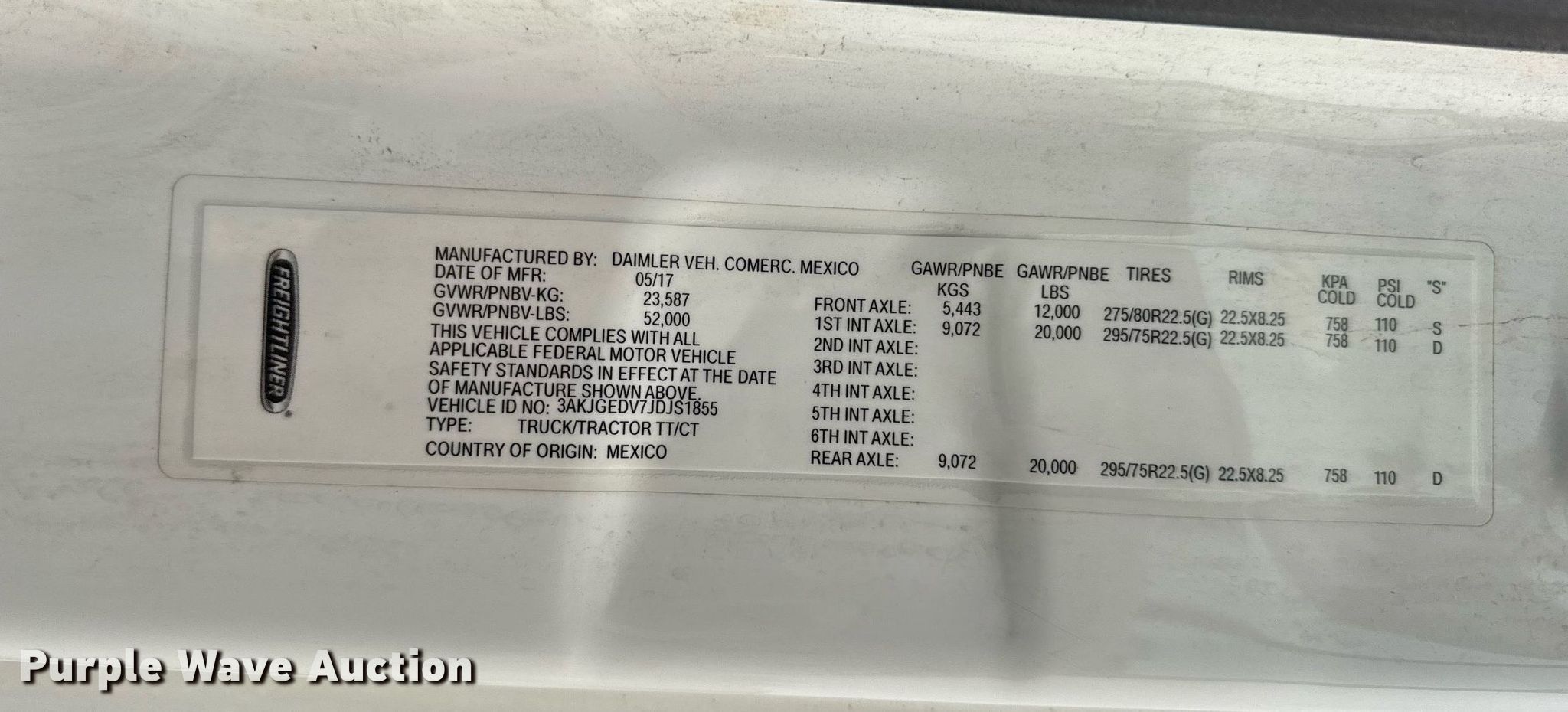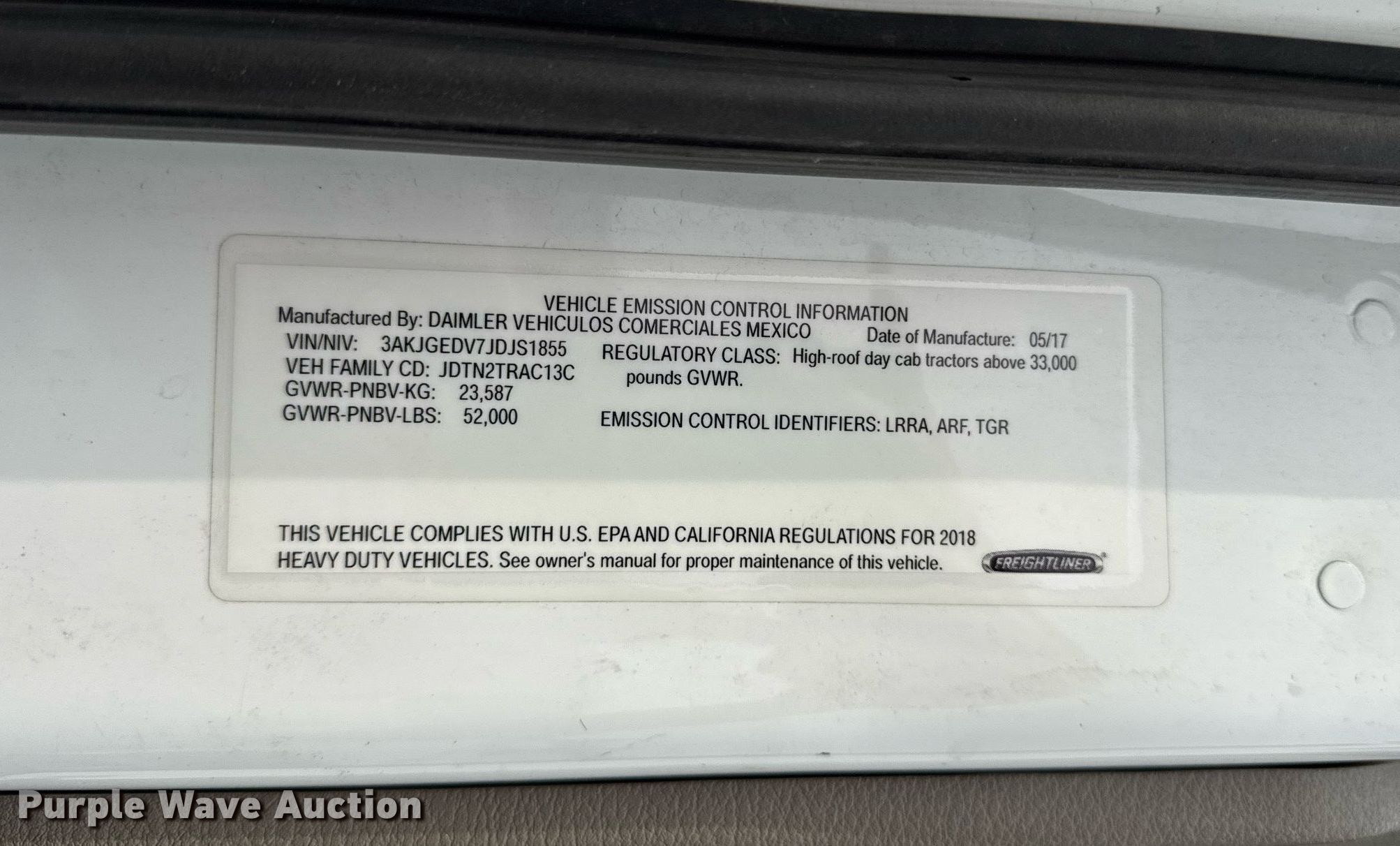 - VIN: 3AKJGEDV7JDJS1855