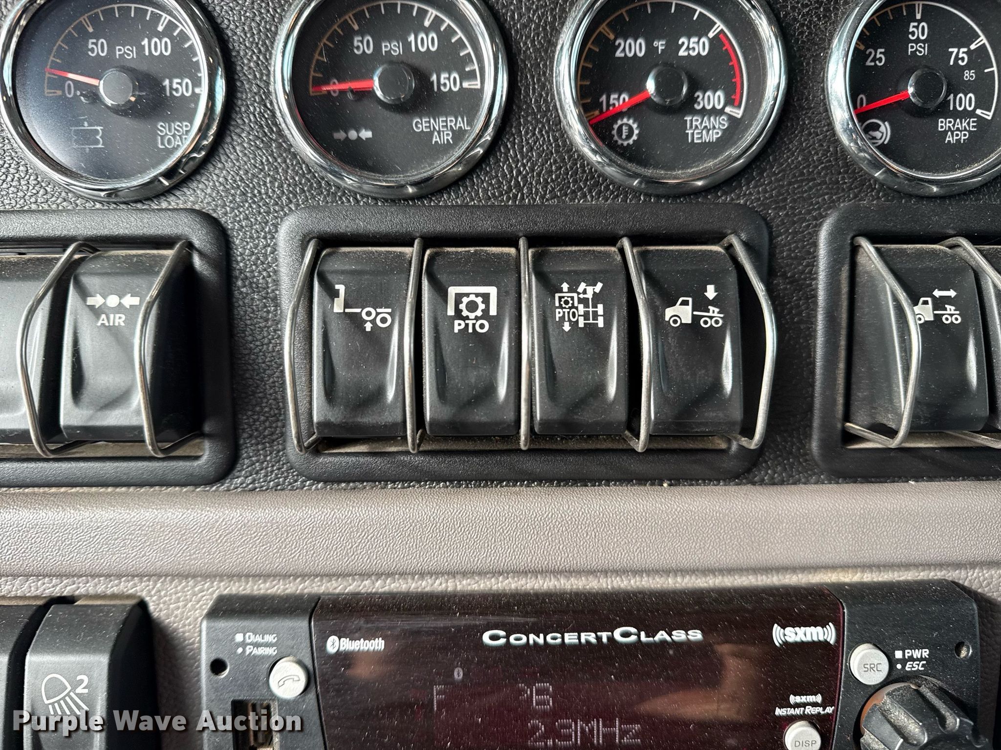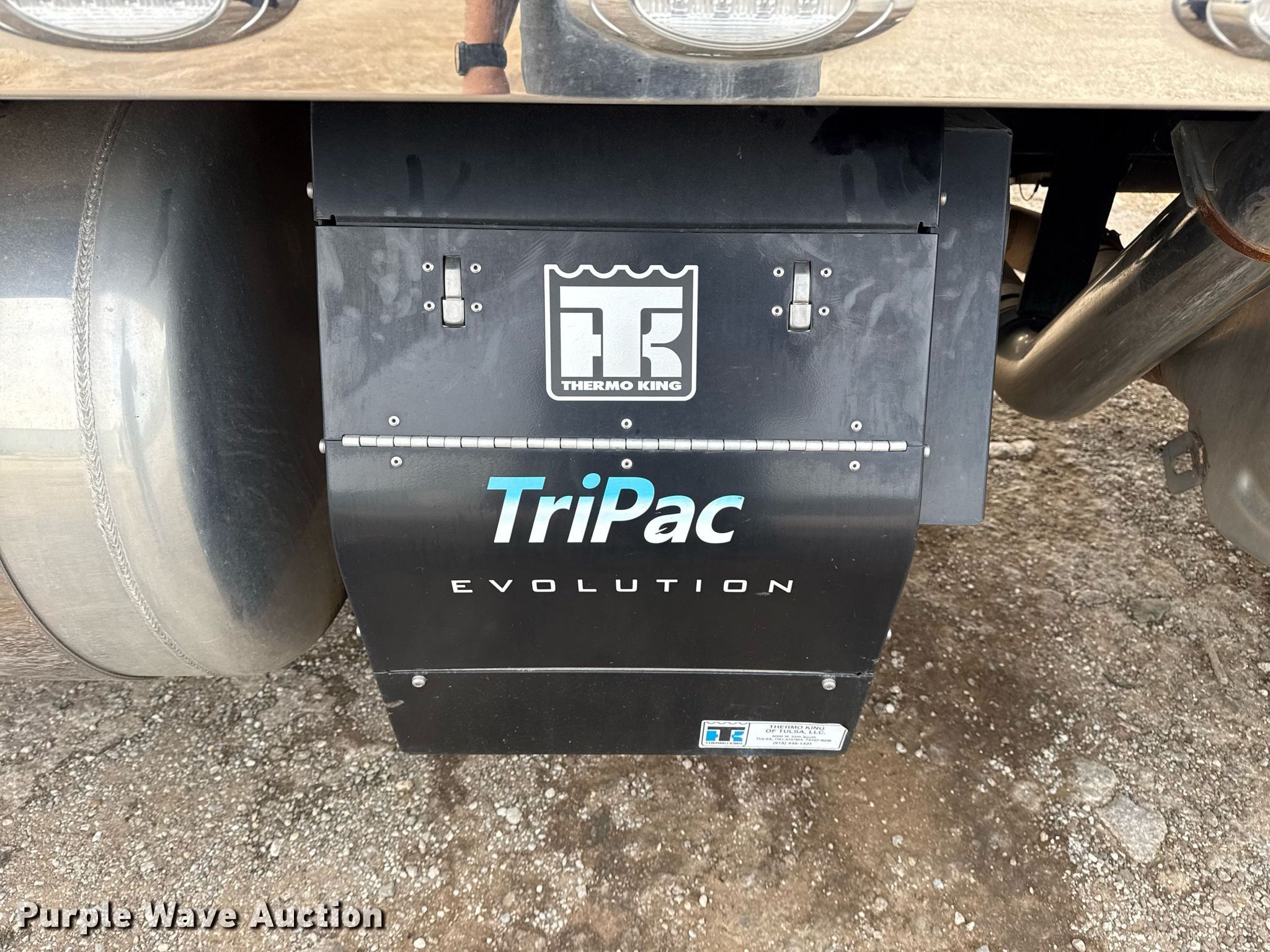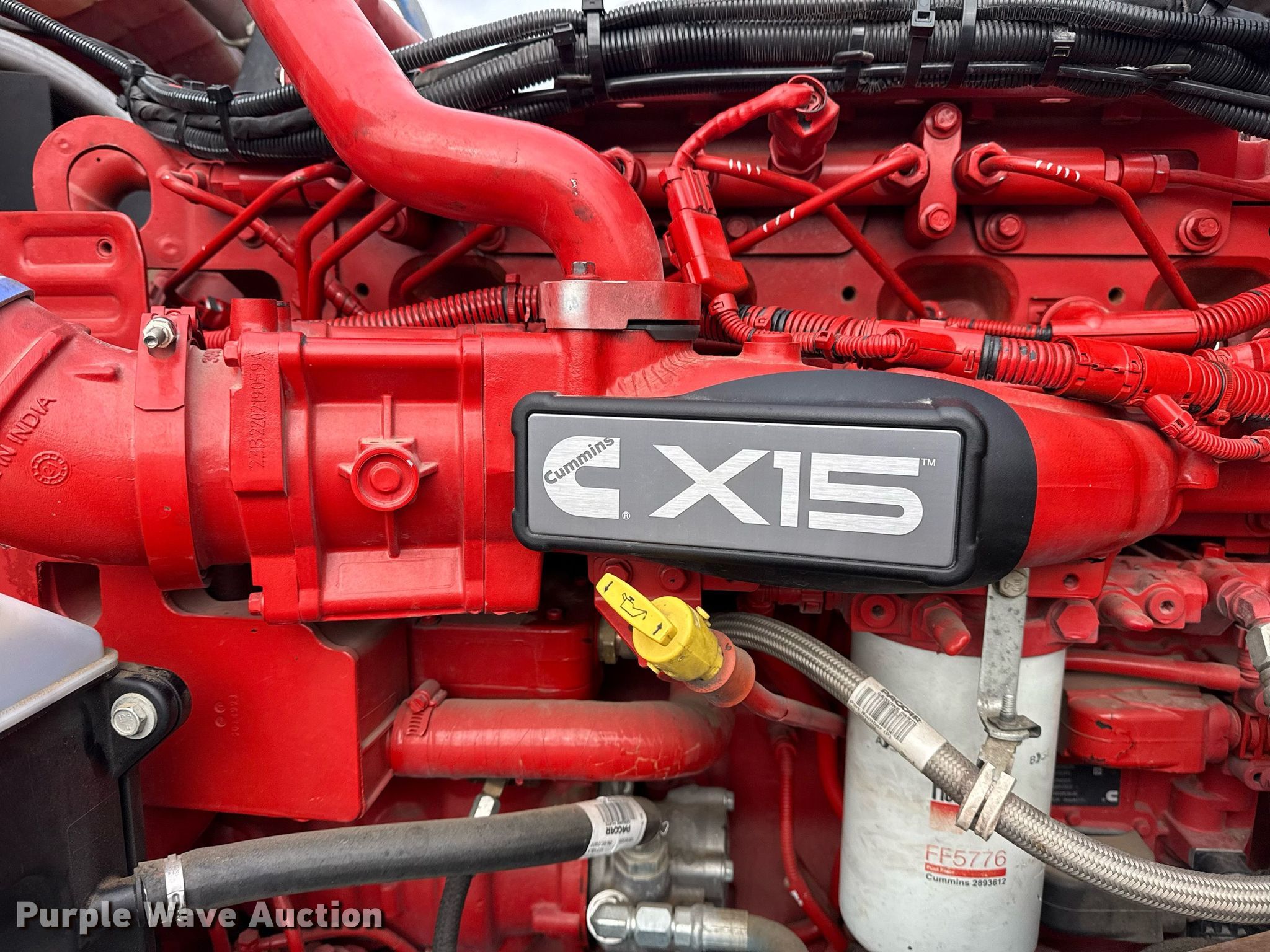 2023 Peterbilt 389 semi truck. Miles: 133,997 on odometer, Hours: 4,500 on meter, VIN: 1XPXP4EX6PD887788. Engine Cummins X15, Displacement: 15.0L, Cylinders: 6, Fuel type: Diesel. Transmission Eaton Fuller, Manual, Speed: 18. Chassis Axles: Triple, Pusher axle, Differential lock: Full, Suspension: Air Dump valves, Brakes: Air, PTO, GVWR: 80,000 lbs FAWR: 20,000 lbs, IAWR: 20,000 lbs, RAWR: 23,000 lbs, Lift axle GAWR: 20,000 lbs. Interior AC, Heat, Heated mirrors, Power windows, Power locks, Cruise control, Air ride cab, Sleeper Sleeper length: 60", Beds: Single, Refrigerator, Rear climate control, Auxiliary power unit Thermo King Tri Pack Evolution, Engine Yanmar TK270VFM.. Features Fifth wheel type: Air operated, Sliding, Fuel tank: Dual. Tires Front: 425/65R22.5, Rear: 11R24.5, Lift axle: 425/65R22.5. Notes Stacks removed but included. Oklahoma title. Title has a lien that will be released following the close of the auction. Title distribution may be delayed up to 30 days from verification of funds. ARKK Trucking, Inc.. Sand Springs, OK 74063