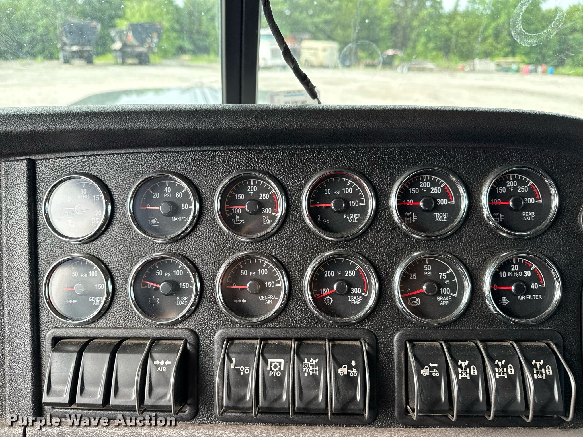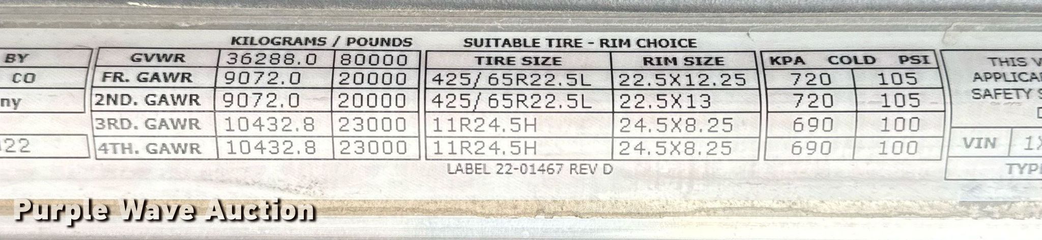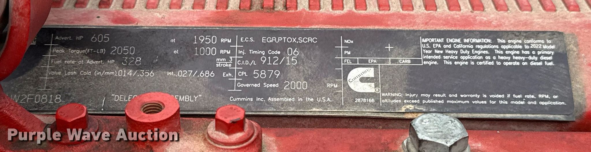 2023 Peterbilt 389 semi truck. Miles: 133,997 on odometer, Hours: 4,500 on meter, VIN: 1XPXP4EX6PD887788. Engine Cummins X15, Displacement: 15.0L, Cylinders: 6, Fuel type: Diesel. Transmission Eaton Fuller, Manual, Speed: 18. Chassis Axles: Triple, Pusher axle, Differential lock: Full, Suspension: Air Dump valves, Brakes: Air, PTO, GVWR: 80,000 lbs FAWR: 20,000 lbs, IAWR: 20,000 lbs, RAWR: 23,000 lbs, Lift axle GAWR: 20,000 lbs. Interior AC, Heat, Heated mirrors, Power windows, Power locks, Cruise control, Air ride cab, Sleeper Sleeper length: 60", Beds: Single, Refrigerator, Rear climate control, Auxiliary power unit Thermo King Tri Pack Evolution, Engine Yanmar TK270VFM.. Features Fifth wheel type: Air operated, Sliding, Fuel tank: Dual. Tires Front: 425/65R22.5, Rear: 11R24.5, Lift axle: 425/65R22.5. Notes Stacks removed but included. Oklahoma title. Title has a lien that will be released following the close of the auction. Title distribution may be delayed up to 30 days from verification of funds. ARKK Trucking, Inc.. Sand Springs, OK 74063