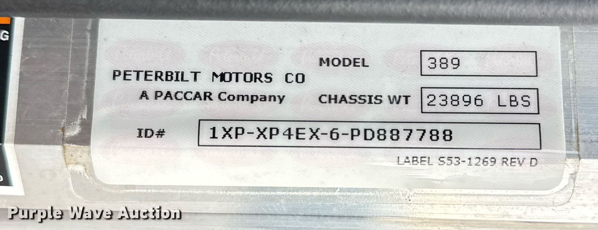 Purple Wave is selling a used Truck Tractor in Oklahoma. This item is a 2023 Peterbilt 389 semi truck with the following: Miles: 133,997 on odometer, Hours: 4,500 on meter, VIN: 1XPXP4EX6PD887788