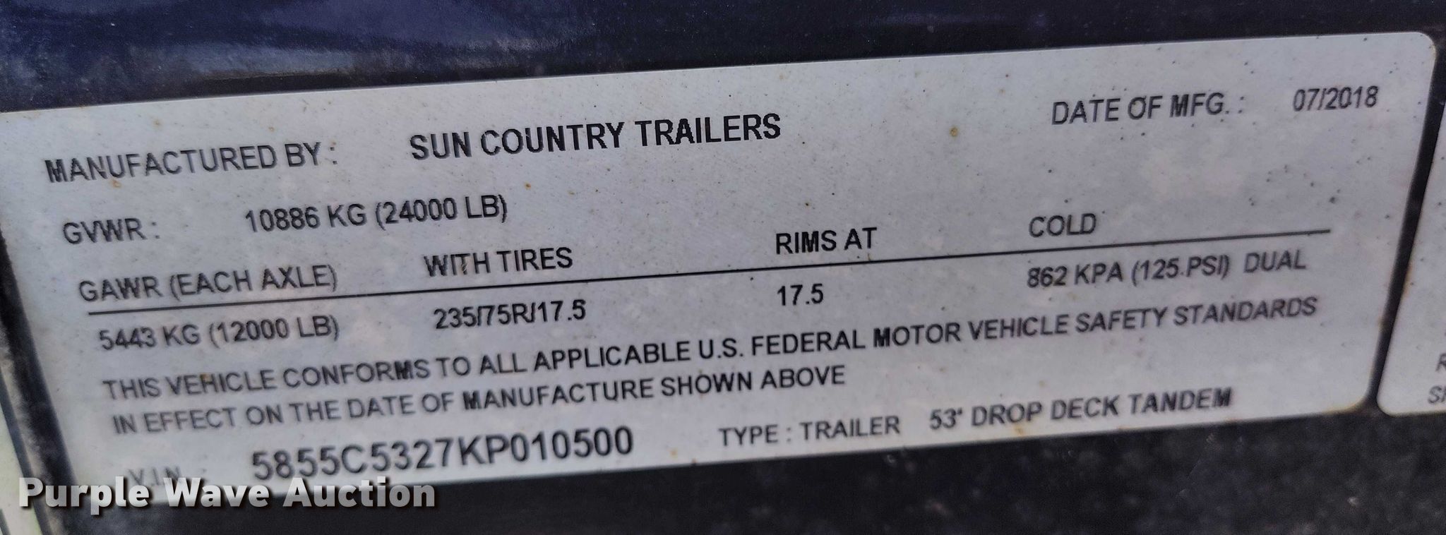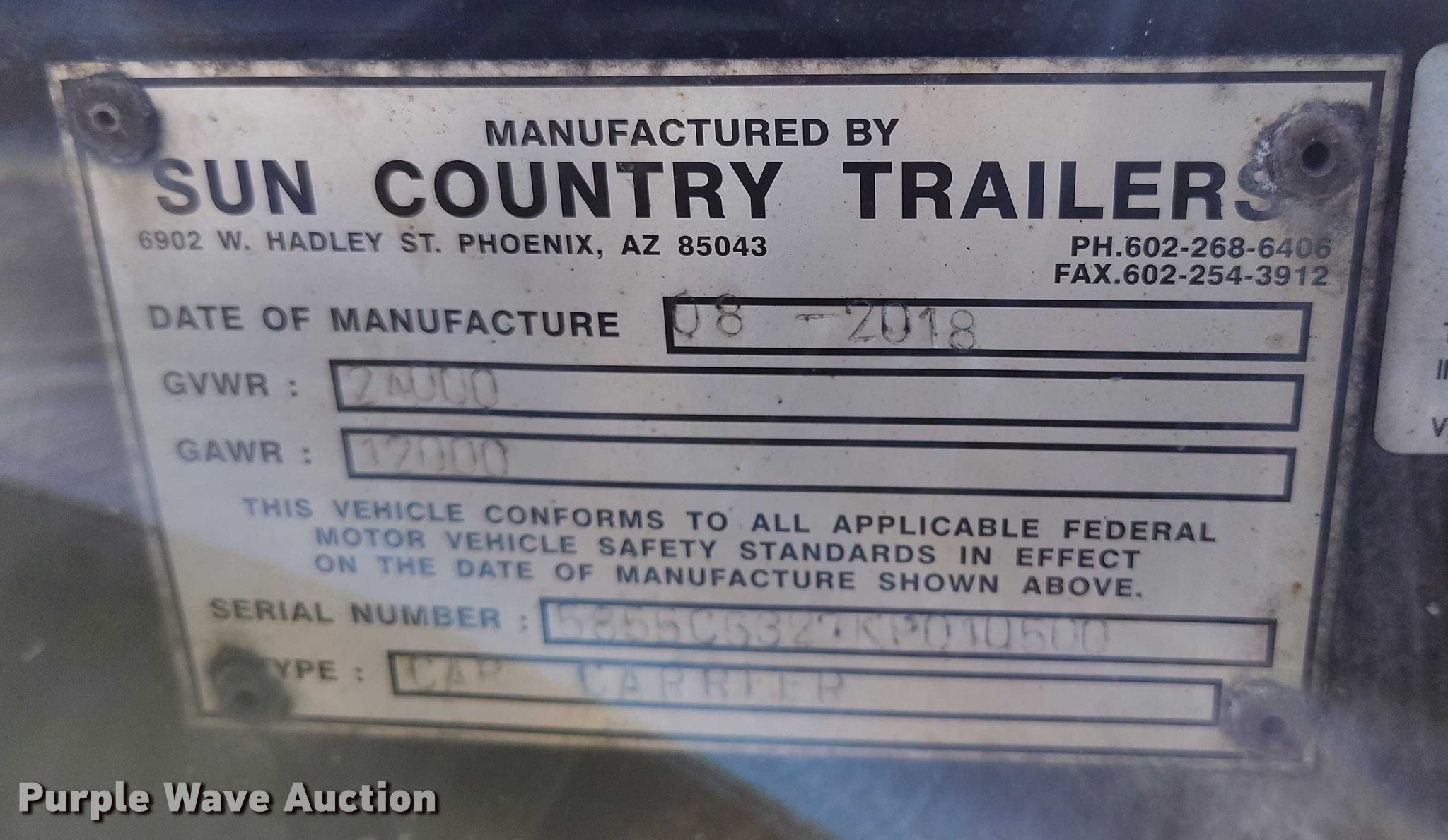 Purple Wave is selling a used Car Carrier in Colorado. This item is a 2019 Sun Country car carrier with the following: VIN: 5855C5327KP010500