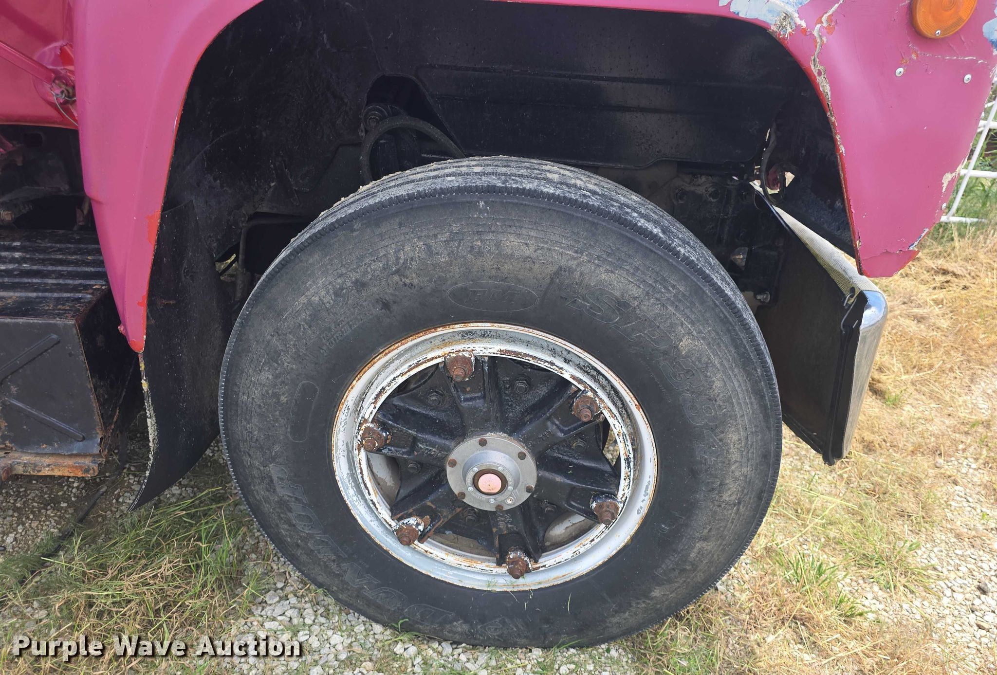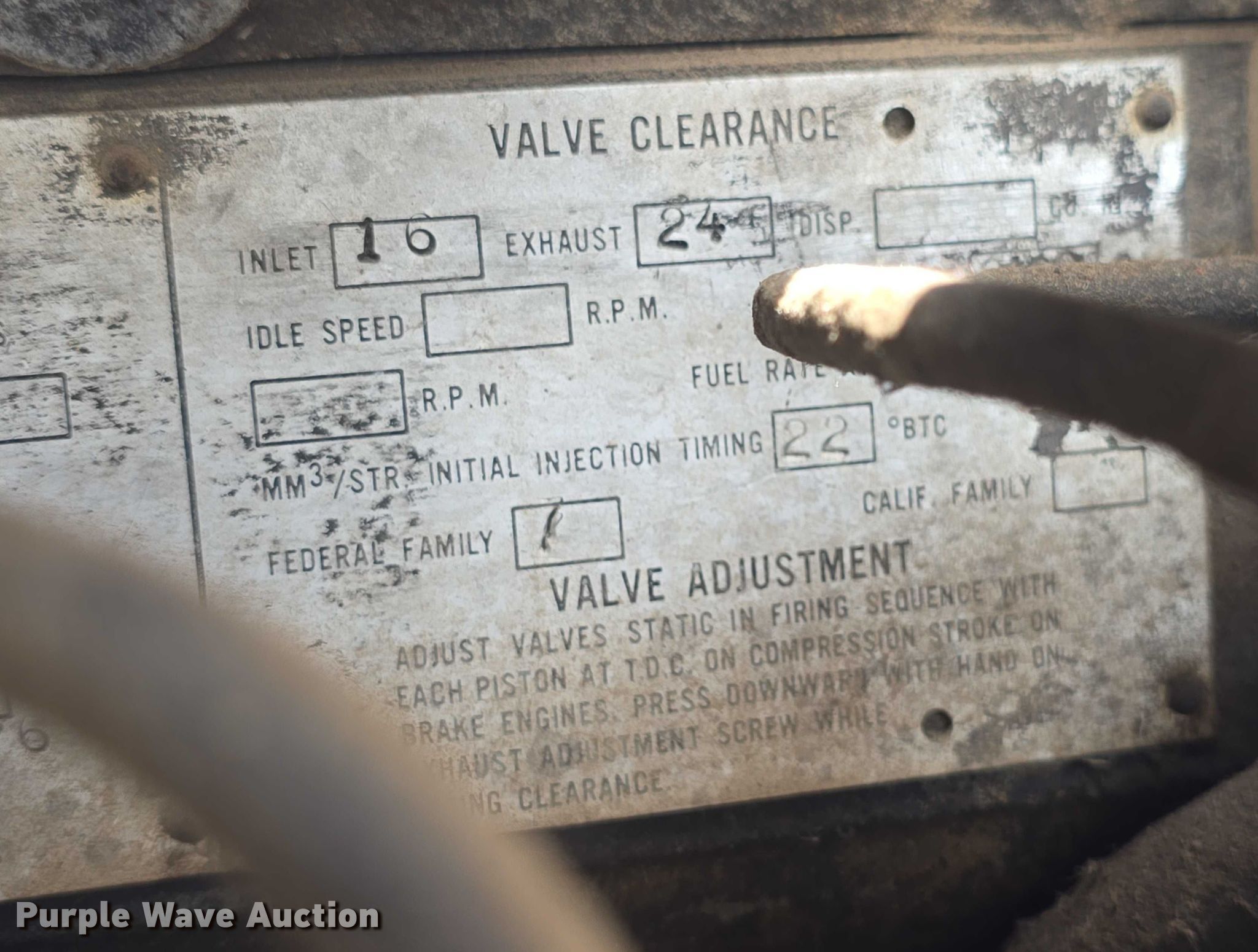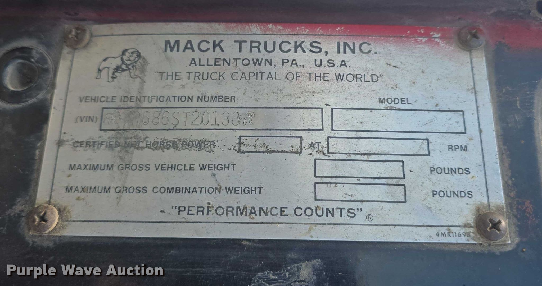 1978 Mack R686 semi truck. Miles: 814,178 on odometer, Hours: 2,571 on meter, VIN: R686ST20138. Engine Mack, Cylinders: 6, Fuel type: Diesel. Transmission Mack, Manual. Chassis Axles: Tandem, Suspension: Camelback, Brakes: Air, PTO, Wet kit. Interior Heat. Features Fifth wheel type: Fixed, Fuel tank: Dual. Tires Size: 11R22.5. Notes Oil leak , AC pump missing, Non-operational passenger door exterior handle, Unknown operating condition of hour meter, Unknown operating condition Unit is not road worthy, Unit must be towed or hauled. Kansas antique title. Title distribution may be delayed up to 30 days from verification of funds. Onaga, KS 66521