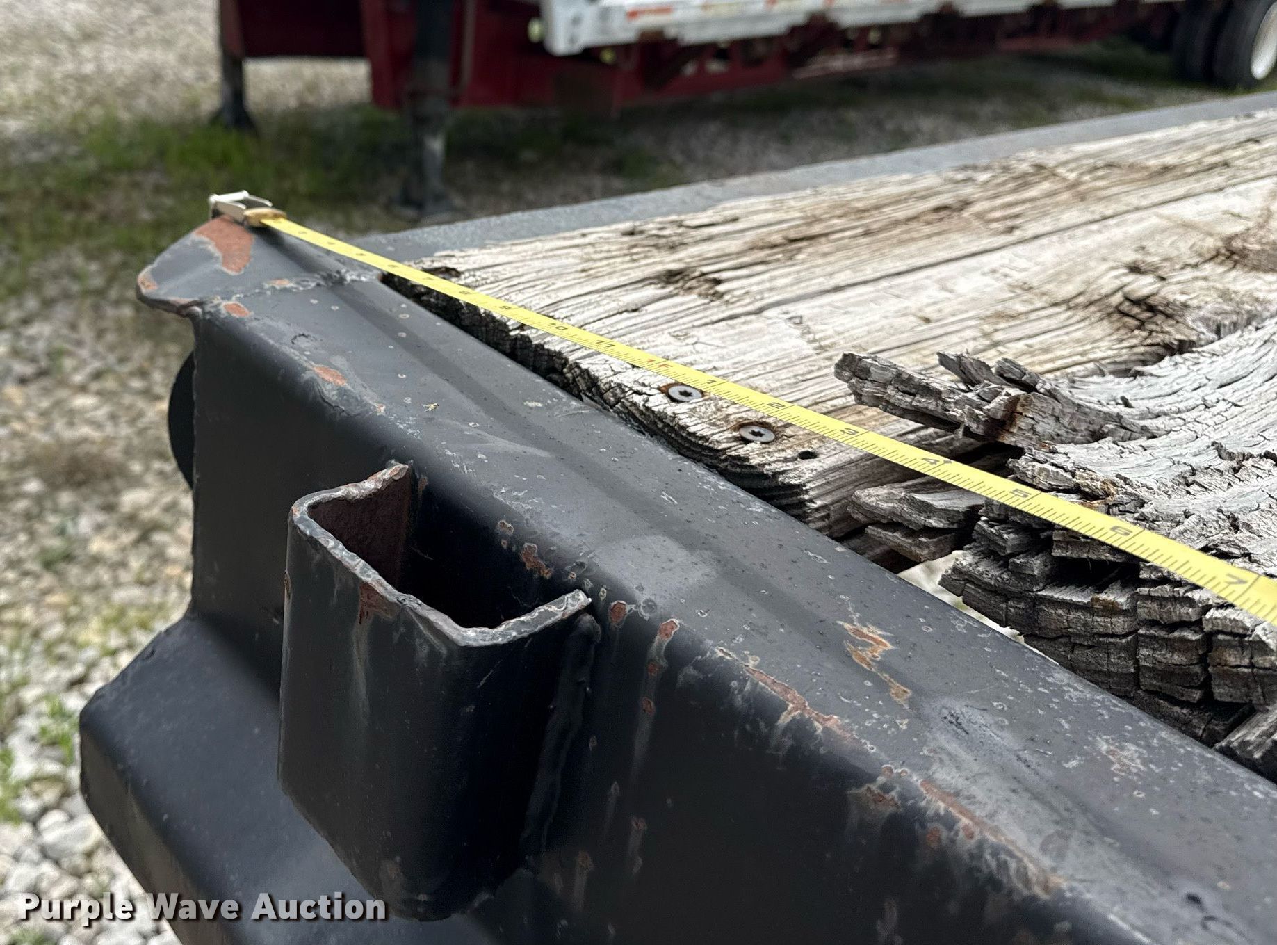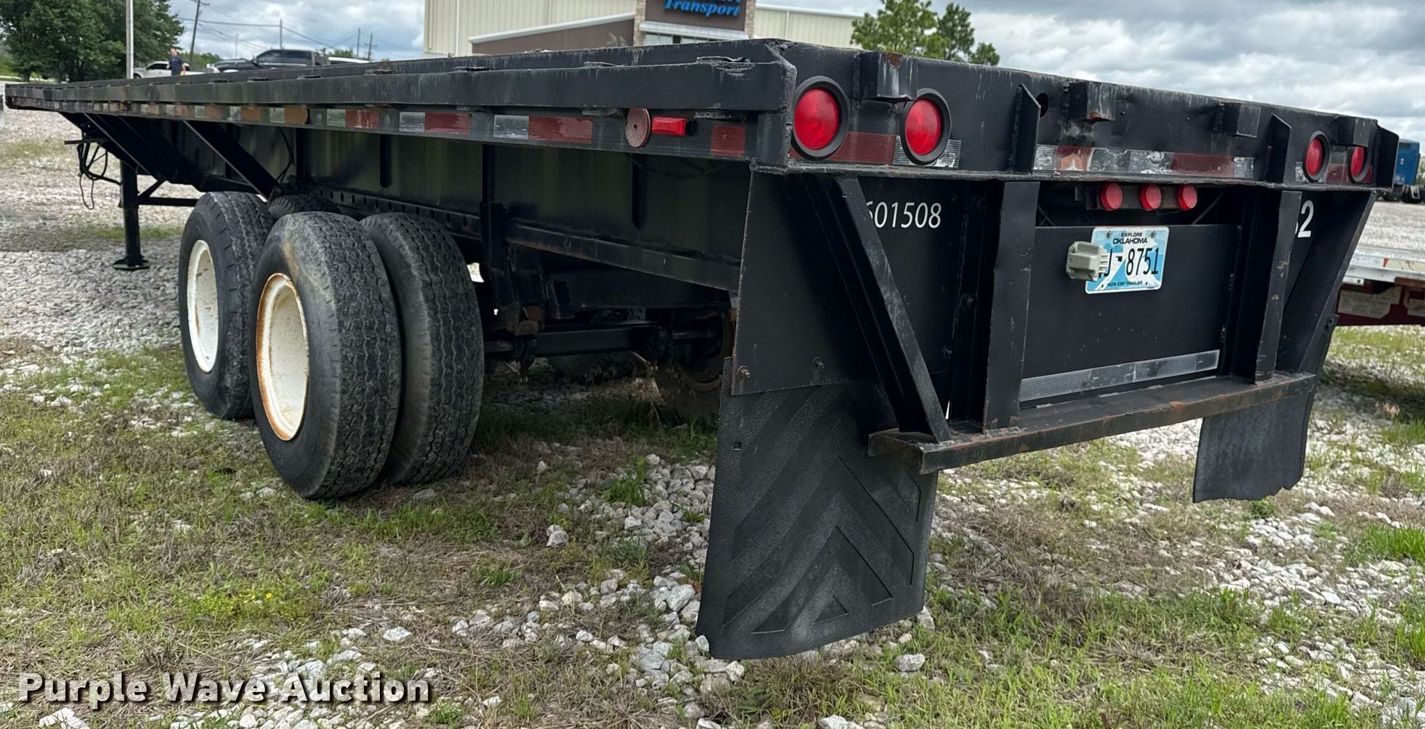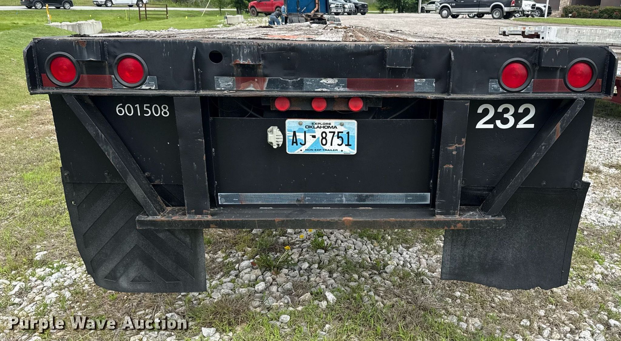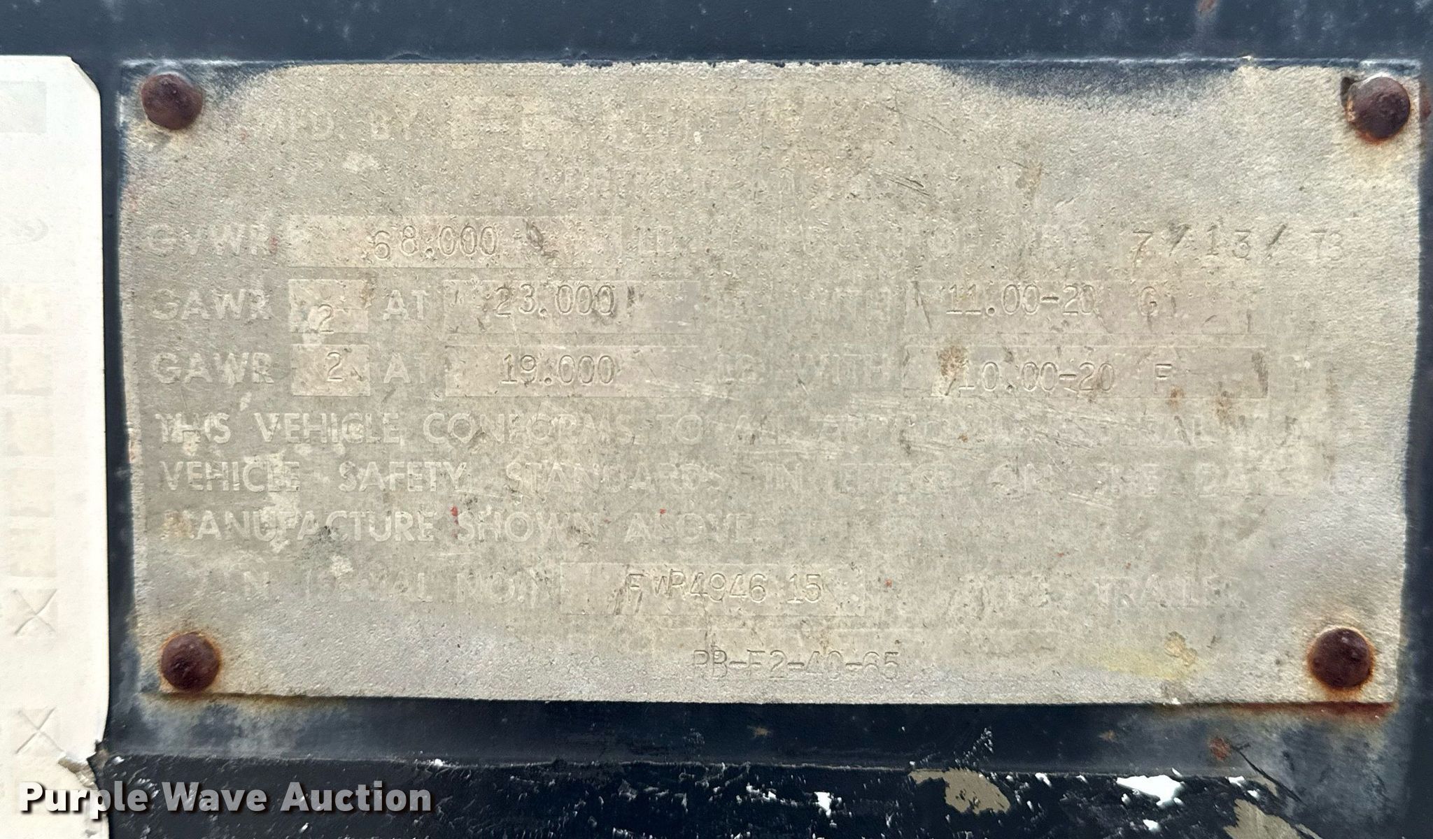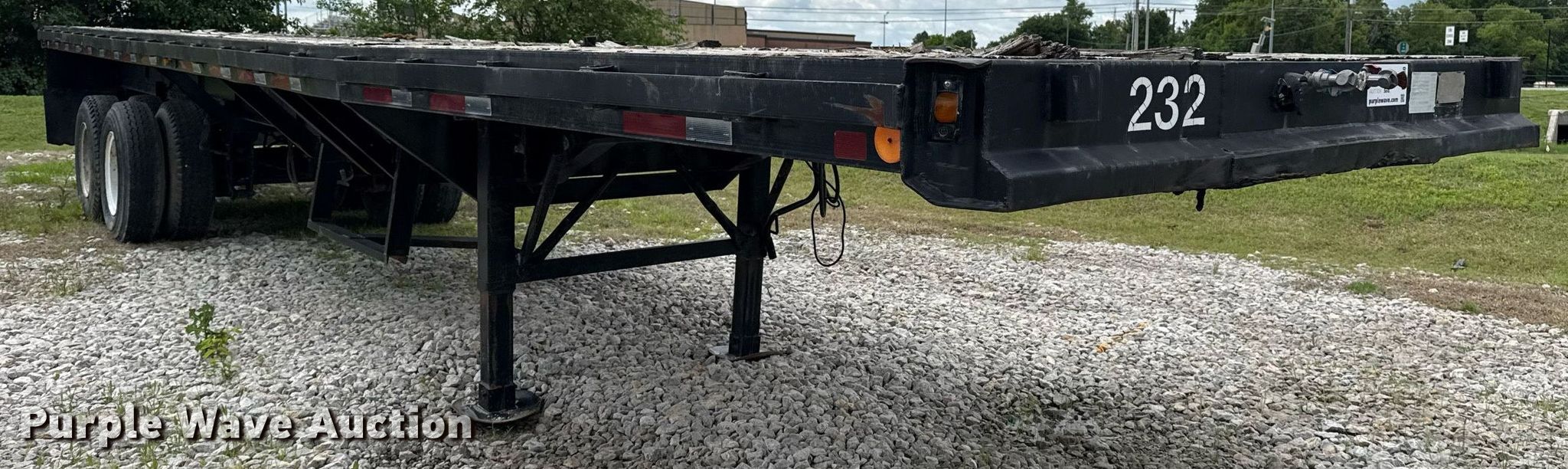 1973 Fruehauf PB-F2-40-65 flatbed trailer. VIN: FWR494615, Unit #: 232. Dimensions Overall: 40' L x 96" W. Features Deck type: Wood. Chassis Landing gear: Dual, Suspension: Spring, Brakes: Air, Axles: Tandem Sliding, GVWR: 68,000 lbs, GAWR: 23,000 lbs. Tires Steel wheels, Size: 10.00-20. Notes Deck boards damaged. Oklahoma title. Title distribution may be delayed up to 14 days from verification of funds. Cotner Transport. Kiefer, OK 74041