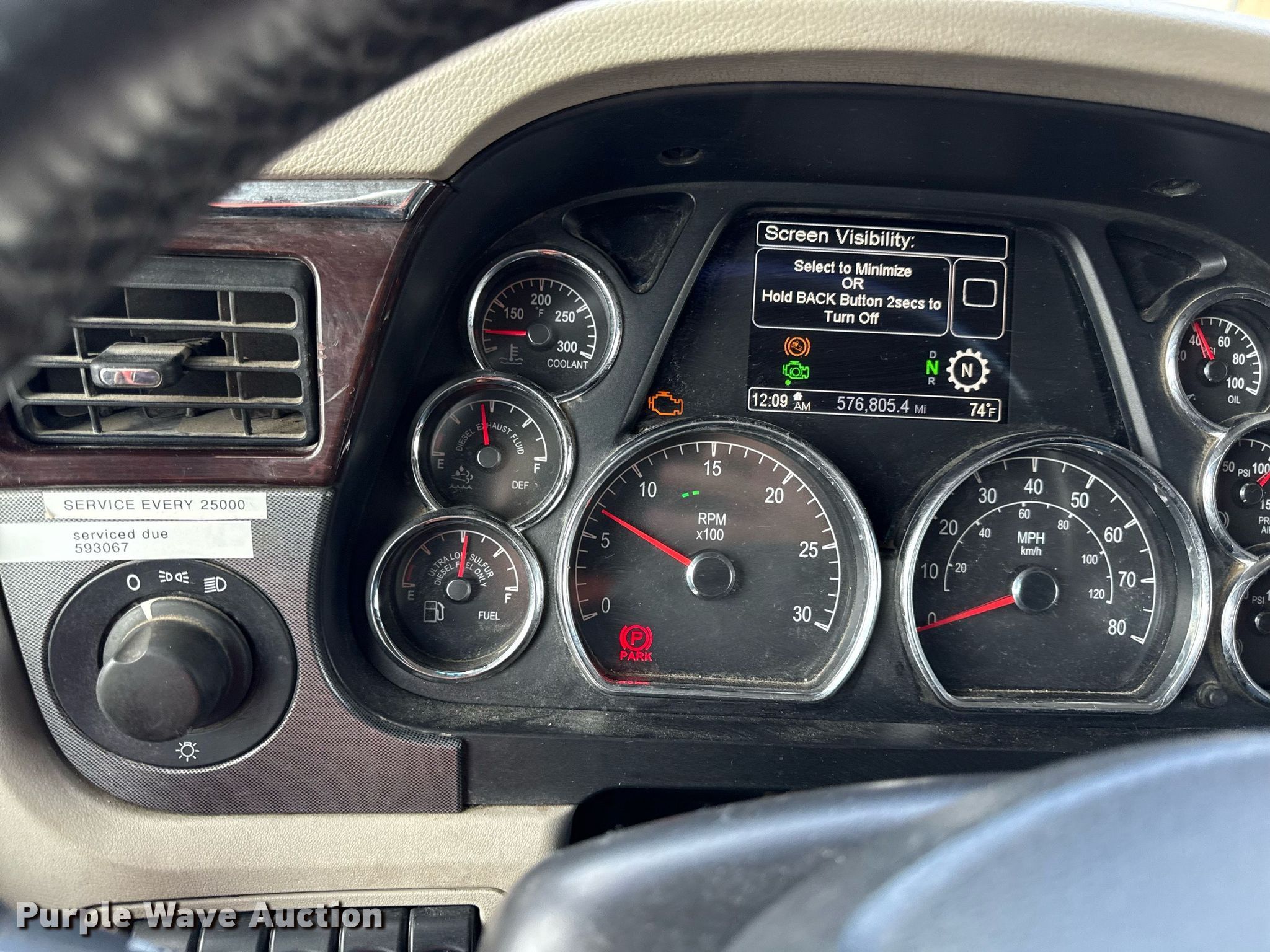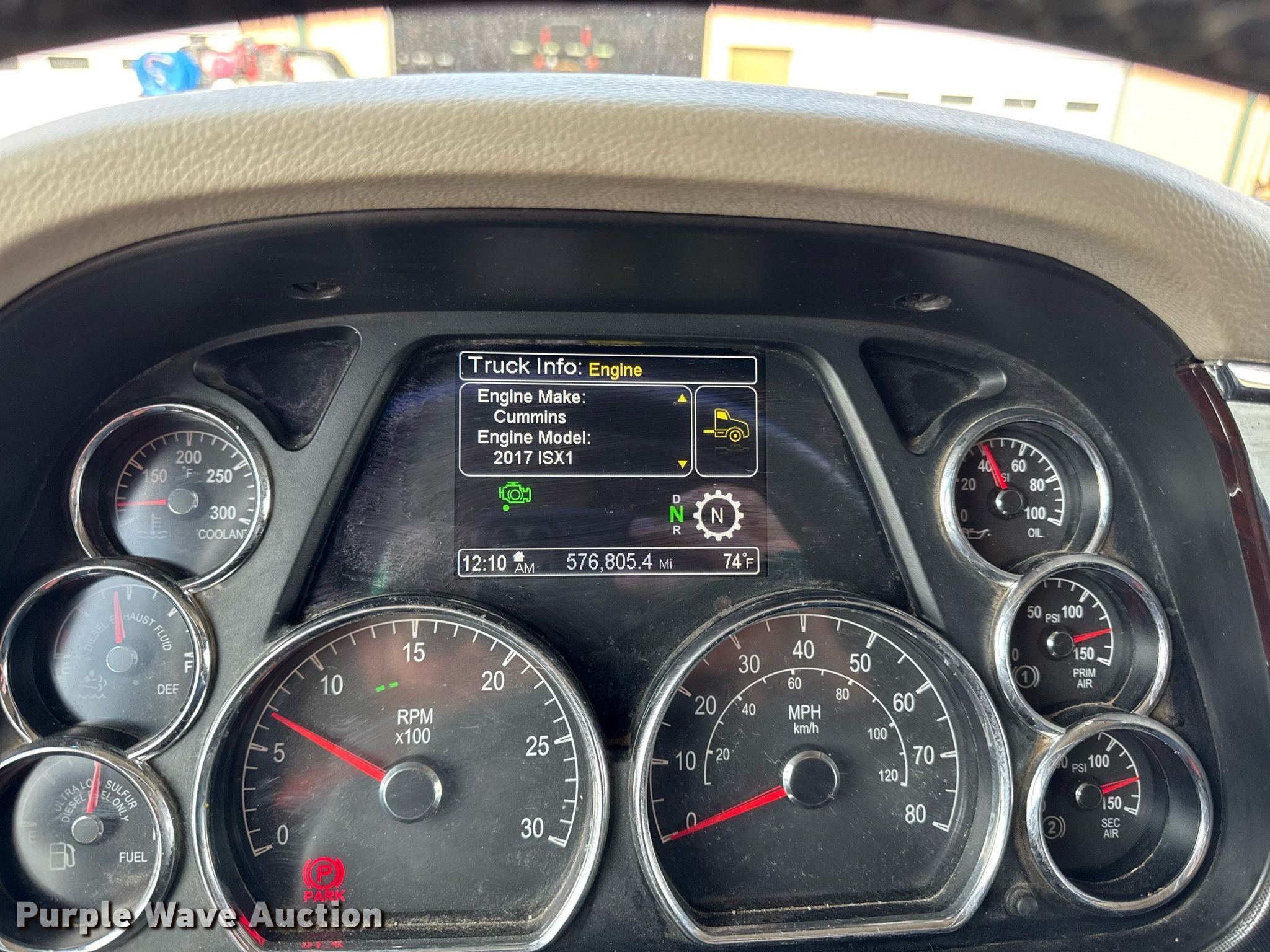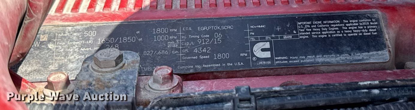 2019 Peterbilt 579 semi truck. Miles: 576,805 on odometer, Hours: 12,863 on meter, VIN: 1XPBD49X8KD613210. Engine Cummins X15, Displacement: 15L, Cylinders: 6, Fuel type: Diesel, HP: 500, Engine brake. Transmission Automated manual. Chassis Axles: Tandem, Differential lock: Inter-axle, Suspension: Air Dump valves, Brakes: Air, GVWR: 51,200 lbs FAWR: 13,200 lbs, IAWR: 19,000 lbs, RAWR: 19,000 lbs. Interior AC, Heat, Power windows, Power locks, Cruise control, Air ride cab, Sleeper Sleeper length: 60", Beds: Single, Rear climate control, Auxiliary power unit Carrier, Engine Kubota.. Features Deck plate: Aluminum, Fifth wheel type: Air operated, Sliding, Fuel tank: Dual. Tires Size: 275/80R22.5. Kansas title. Title distribution may be delayed up to 14 days from verification of funds. Irish Express, Inc.. Alma, KS 66401