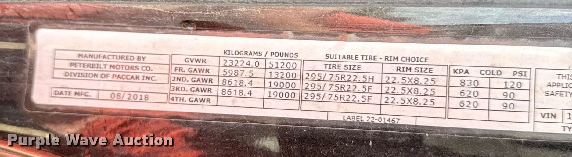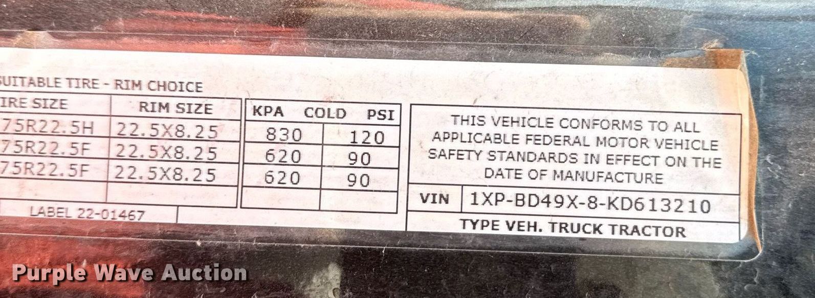 Purple Wave is selling a used Truck Tractor in Kansas. This item is a 2019 Peterbilt 579 semi truck with the following: Miles: 576,805 on odometer, Hours: 12,863 on meter, VIN: 1XPBD49X8KD613210