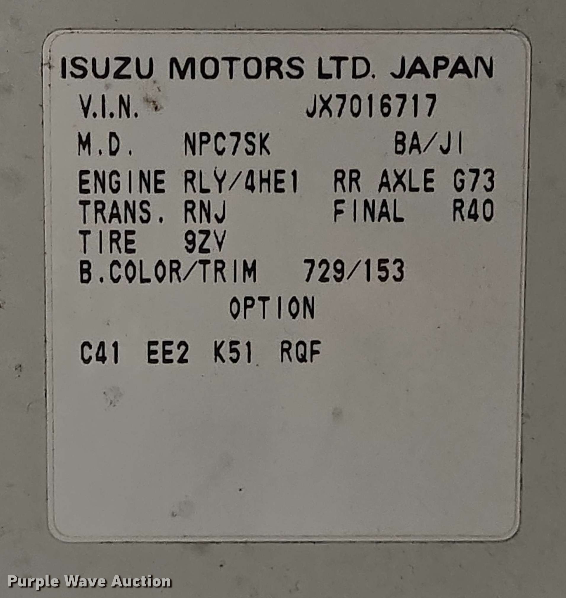 1999 Isuzu NPR box truck. Miles: 258,031 on odometer, VIN: JALB4B14XX7016717. Engine Isuzu, Displacement: 4.75L, Cylinders: 4, Fuel type: Diesel. Transmission Automatic. Chassis Axles: Single, Suspension: Spring, GVWR: 12,000 lbs, Wheelbase: 177". Interior AC, Heat. Features Box bed Supreme VA20084096, Serial: W22835, 20' L x 96" W x 84" H, Floor: Wood. Tires Size: LT215/85R16. Notes Windshield chipped or cracked, Battery needs replaced. Texas title. Title distribution may be delayed up to 14 days from verification of funds. National Works. Pasadena, TX 77505