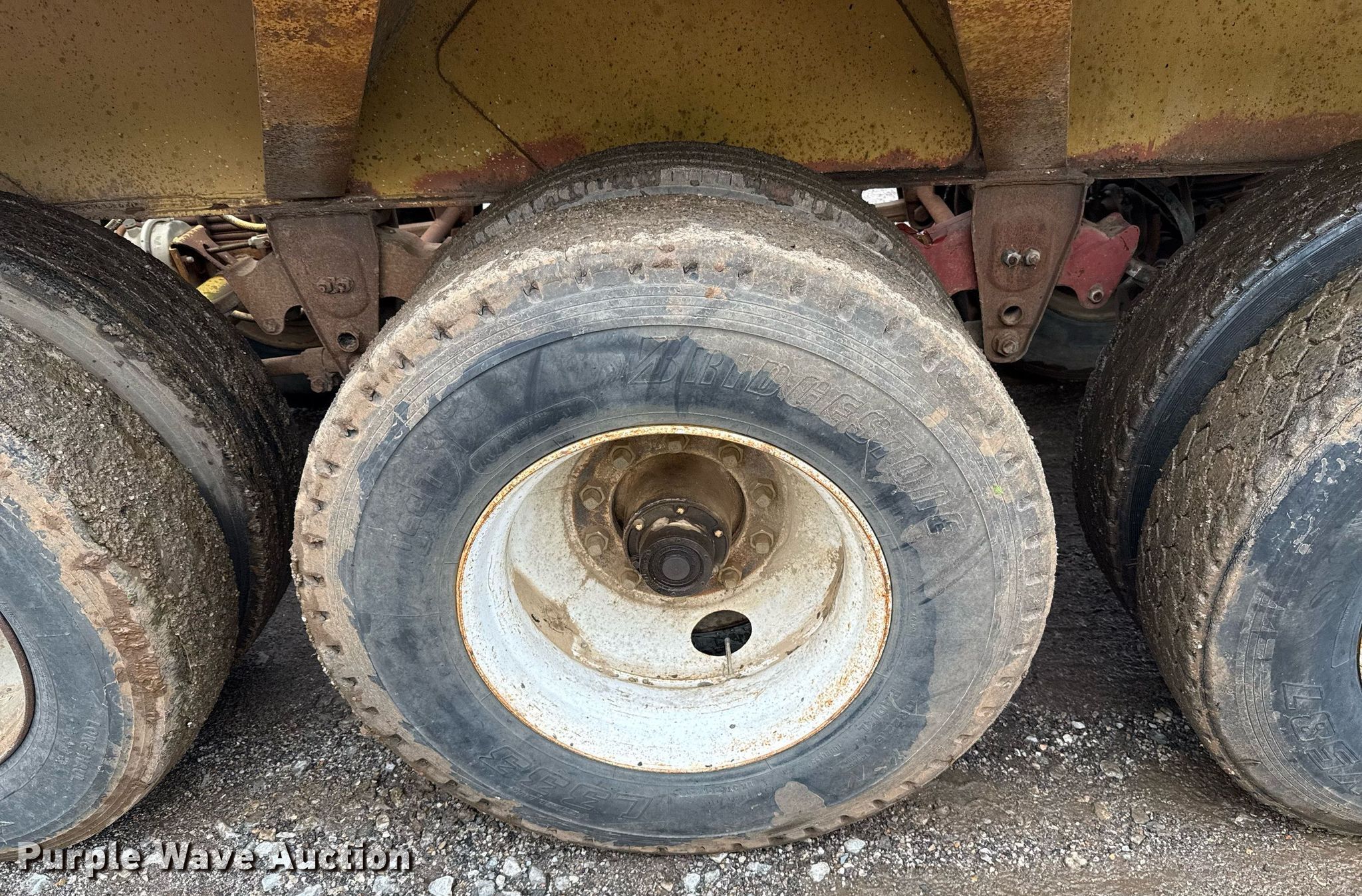 1984 Red River Manufacturing bottom dump trailer. VIN: 1R9BD403XE1051016. Dimensions Overall: 40' L x 96" W, Body: 16' L x 96" W, Side height: 52", Sideboard height: 10". Features Body type: Steel, Clamshell gate: Air operated, Trailer controls Remote control, Rear push block, Roll tarp. Chassis Landing gear: Dual, Suspension: Spring, Brakes: Air, Axles: Triple, GVWR: 73,000 lbs, GAWR: 20,000 lbs. Tires Steel wheels, Size: 295/75R22.5. Notes Semi not included. Oklahoma title. Title has a lien that will be released following the close of the auction. Title distribution may be delayed up to 30 days from verification of funds. Liberty Oil Company Transportation. Okemah, OK 74859