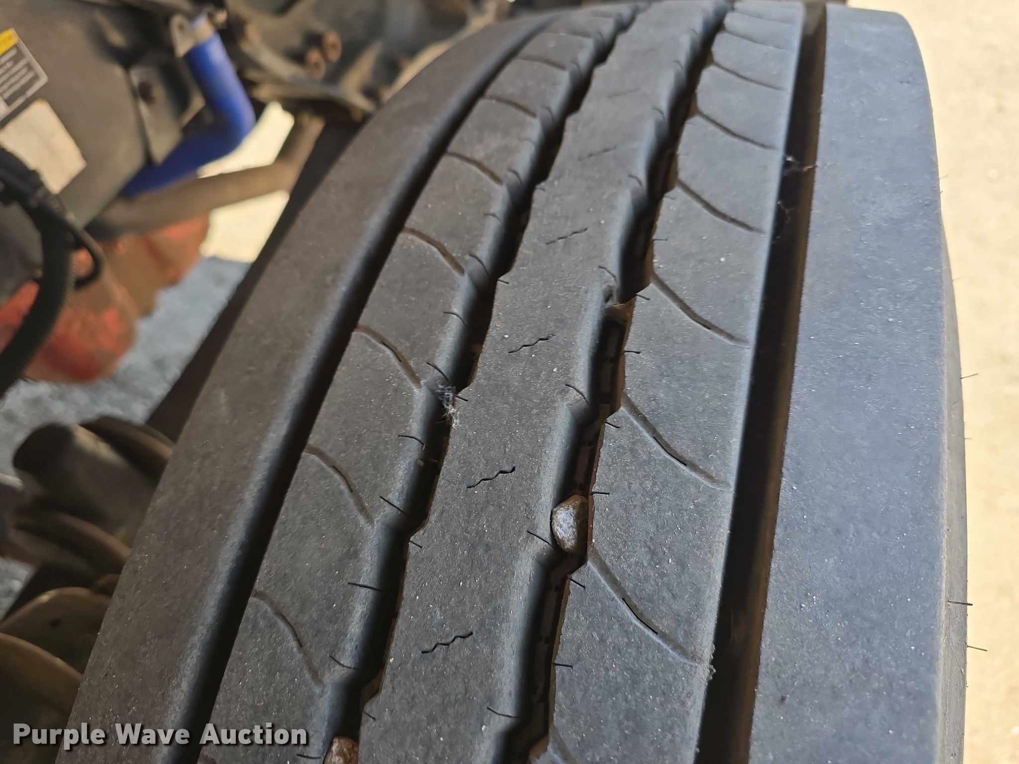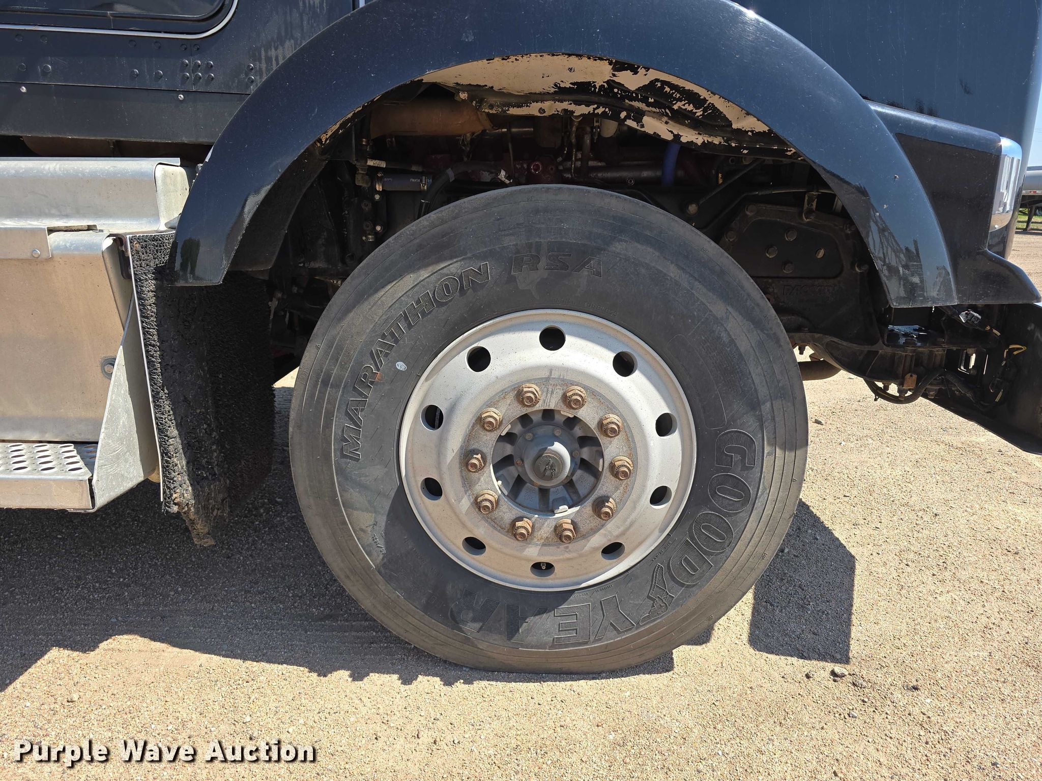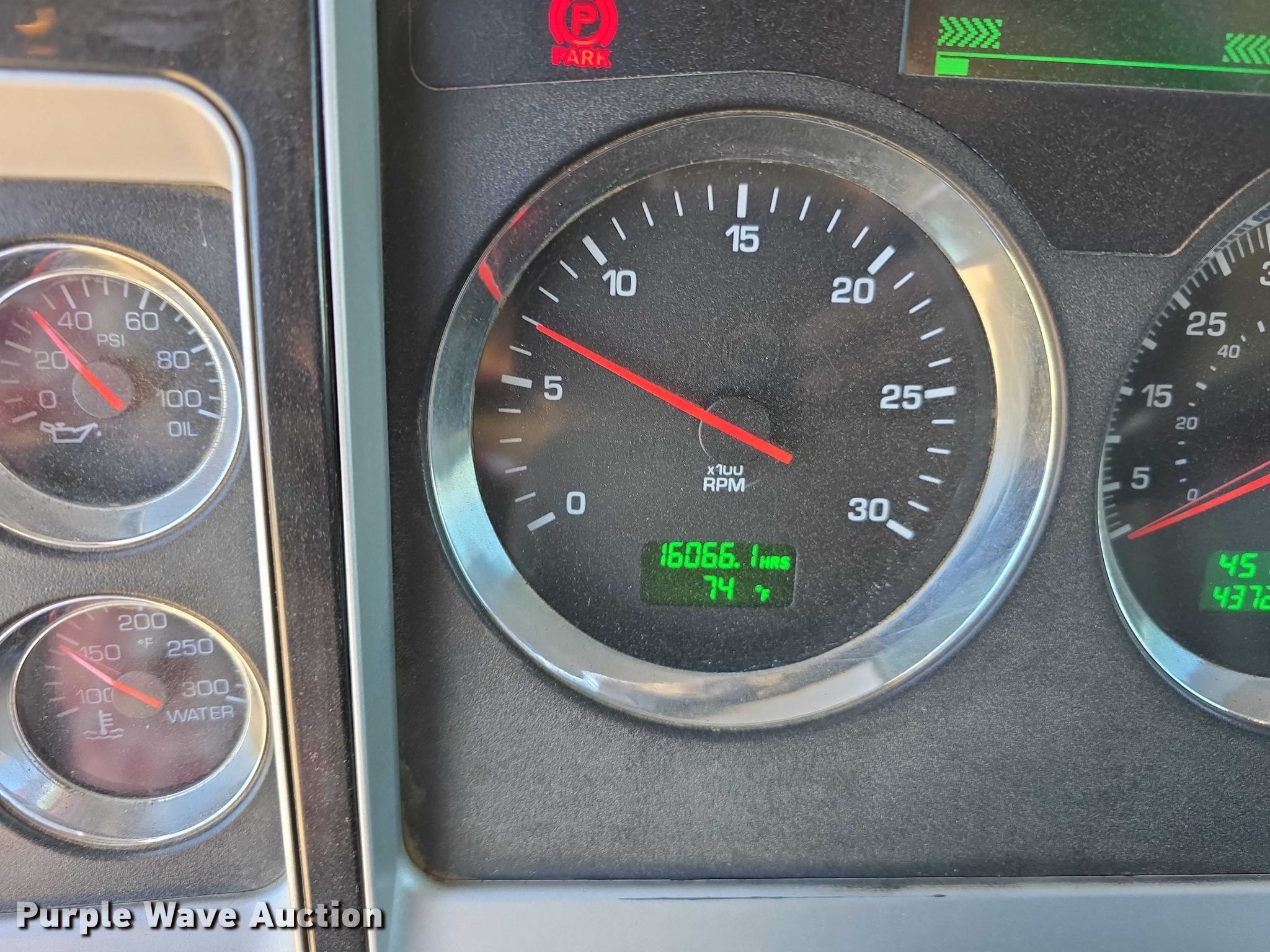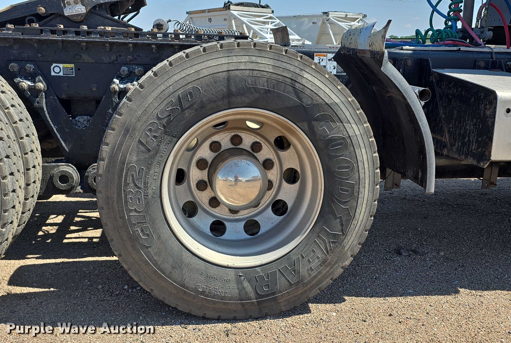 2013 Kenworth T800 semi truck. Miles: 451,948 on odometer, Hours: 16,066 on meter, VIN: 1XKDD49X9DJ349496. Engine Cummins ISX15 450ST, Serial: 79567130, Displacement: 15.0L, Cylinders: 6, Fuel type: Diesel, HP: 450, Engine brake. Transmission Eaton Fuller, Automated manual. Chassis Axles: Tandem, Gear ratio: 3.55, Suspension: Air Dump valves, Brakes: Air, GVWR: 52,000 lbs FAWR: 12,000 lbs, IAWR: 20,000 lbs, RAWR: 20,000 lbs, Wheelbase: 184". Interior AC, Heat, Heated mirrors, Power passenger window, Power locks, Cruise control, Air ride cab. Features Deck plate: Aluminum, Fifth wheel type: Air operated, Sliding, Fuel tank: Dual. Tires Size: 11R22.5. Notes EGR deleted, DEF deleted, Windshield chipped or cracked. Nebraska title. Title distribution may be delayed up to 14 days from verification of funds. Vontz Paving. Hastings, NE 68901