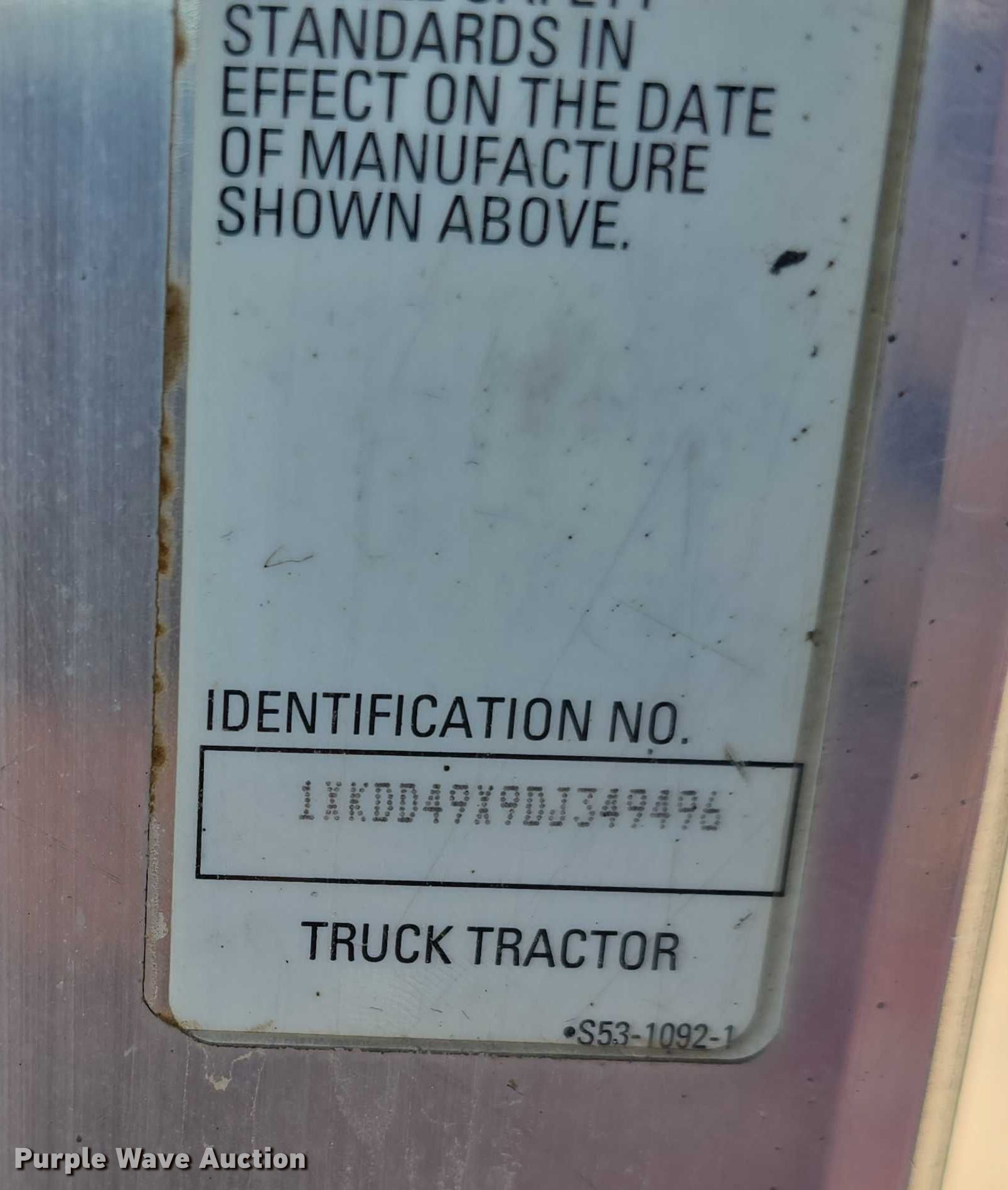 Purple Wave is selling a used Truck Tractor in Nebraska. This item is a 2013 Kenworth T800 semi truck with the following: Miles: 451,948 on odometer, Hours: 16,066 on meter, VIN: 1XKDD49X9DJ349496