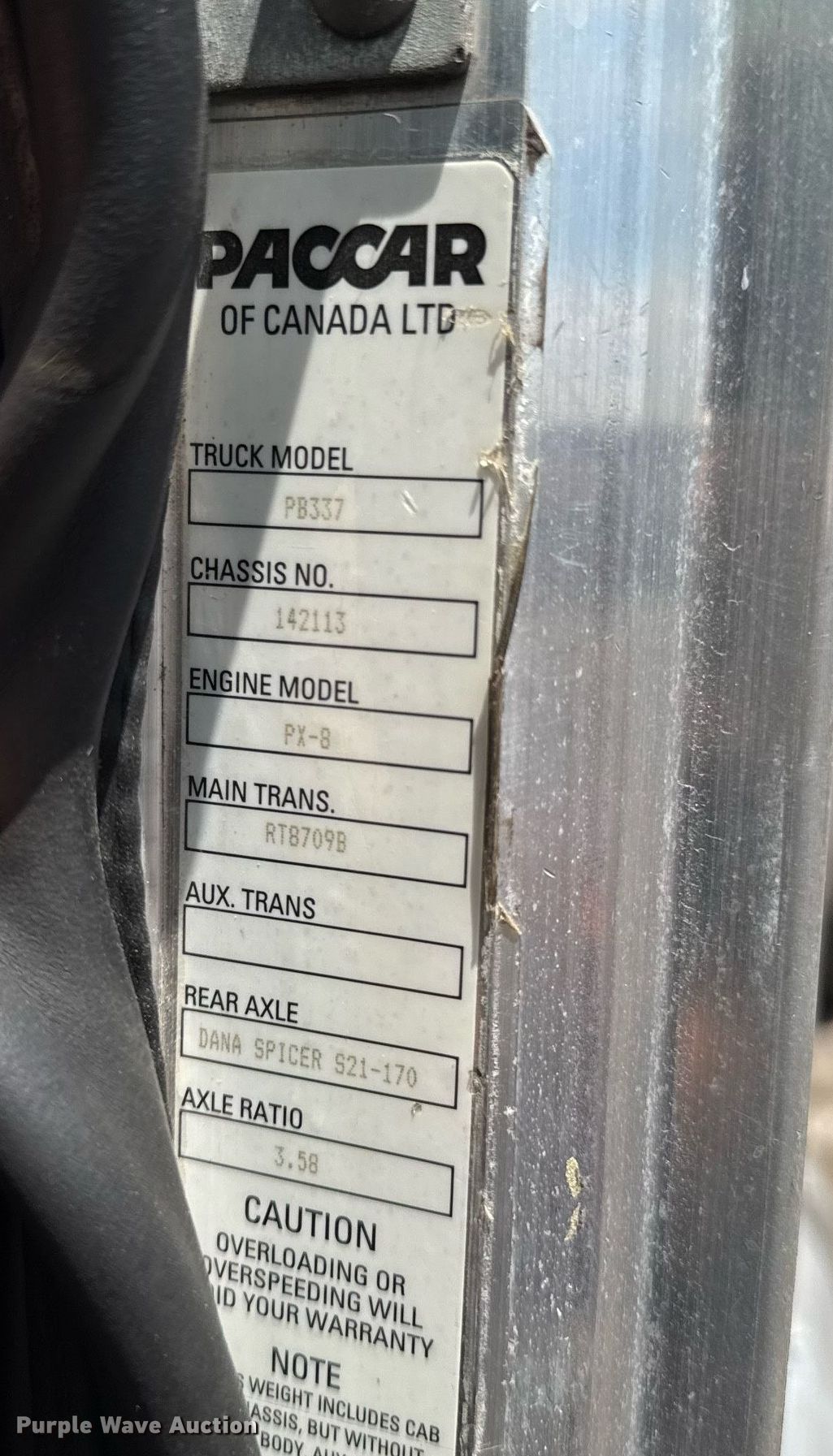 2012 Peterbilt 337 truck cab and chassis. Miles: 412,193 on odometer, Hours: 14,152 on meter, VIN: 2NP2HN7X6CM142113. Engine Paccar PX-8, Displacement: 8.3L, Cylinders: 6, Fuel type: Diesel, HP: 240, Engine brake. Transmission Eaton Fuller, Manual, Speed: 9. Chassis Axles: Single, Suspension: Air Dump valves, Brakes: Air, Truck chassis: 23' 6", GVWR: 33,000 lbs FAWR: 12,000 lbs, RAWR: 21,000 lbs. Interior AC, Heat, Heated mirrors, Power windows, Power locks, Cruise control, Air ride cab. Features Fuel tank: Single. Tires Size: 11R22.5. Notes In frame engine overhaul done at 411,909 miles, EGR delete, DEF delete, DPF delete. View repairs. Arkansas title. Title distribution may be delayed up to 14 days from verification of funds. KPC, LLC. Rudy, AR 72952