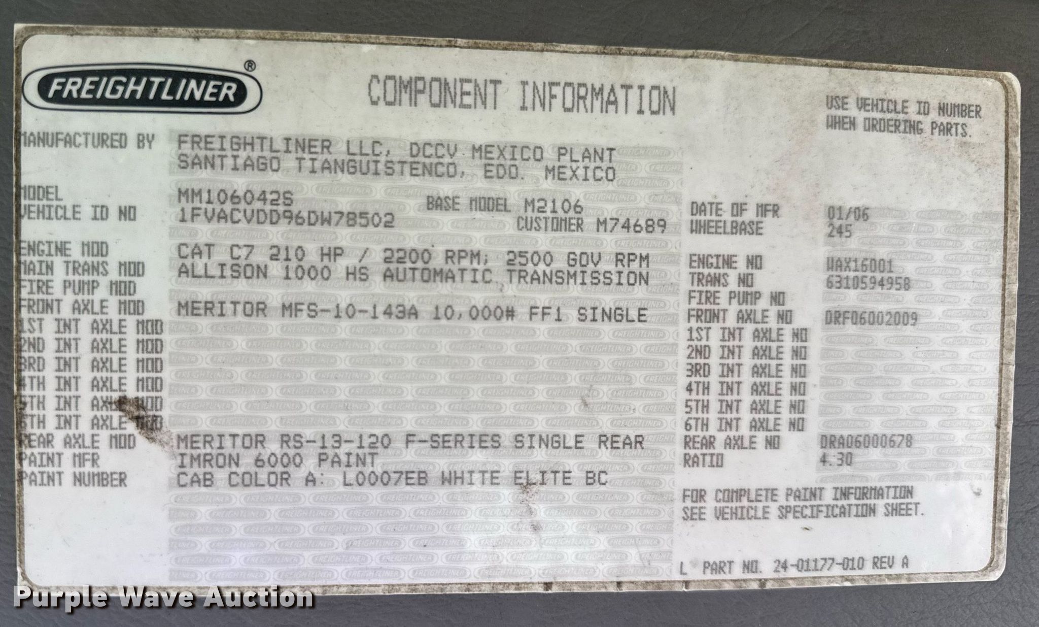 - VIN: 1FVACVDD96DW78502
