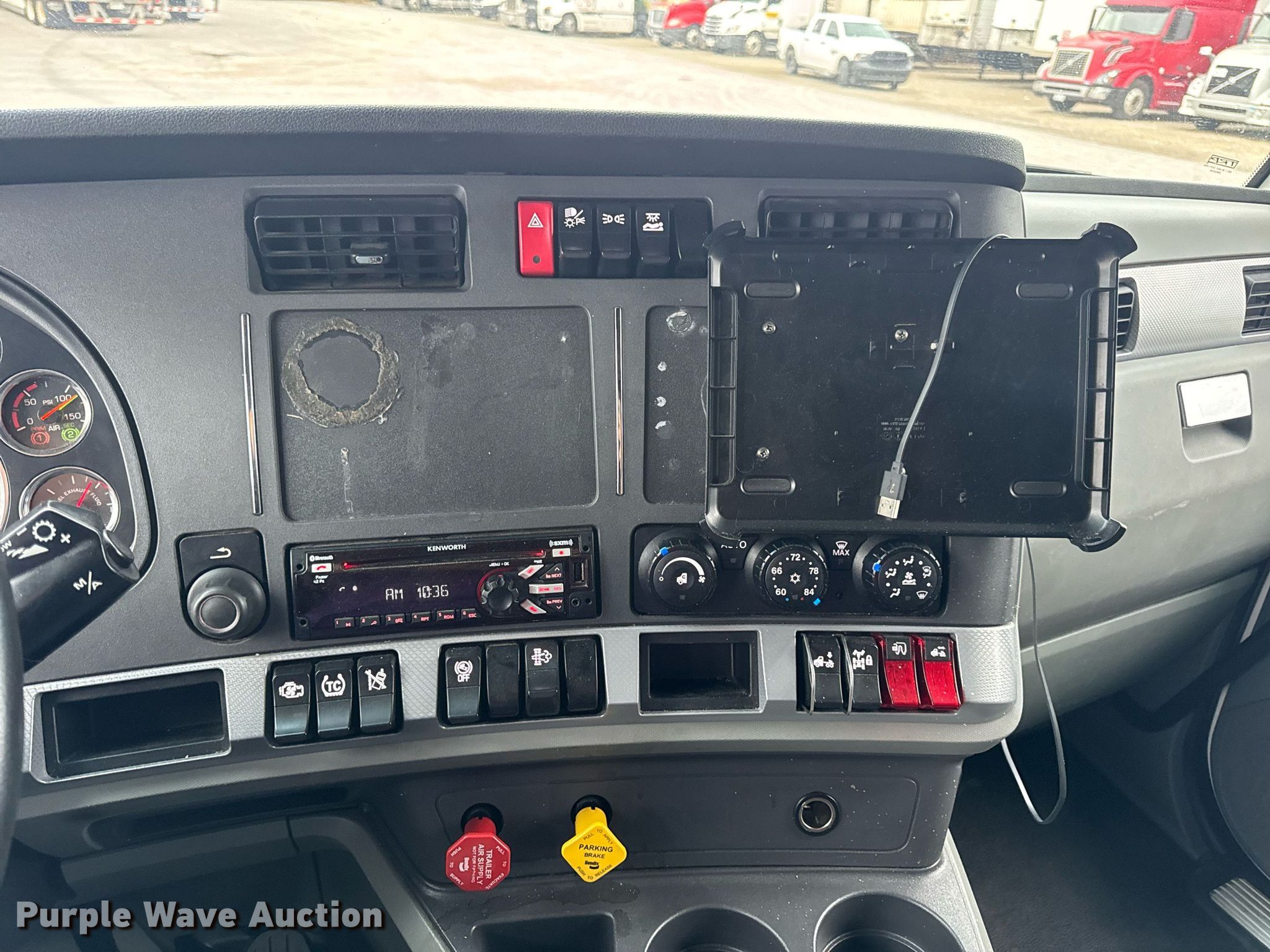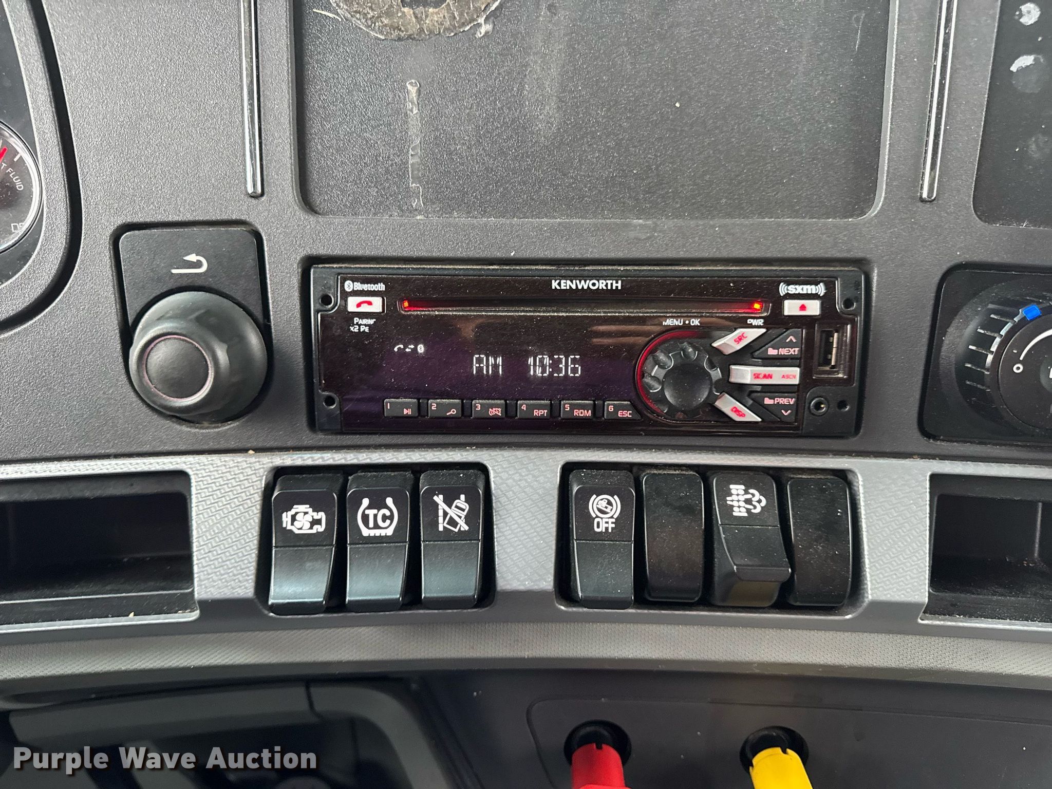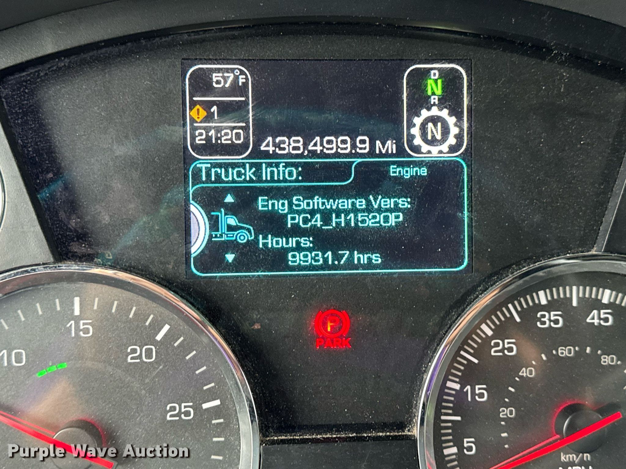 2021 Kenworth T680 semi truck. Miles: 438,500 on odometer, Hours: 9,932 on meter, Miles or hours may vary, unit still in use, VIN: 1XKYDP9XXMJ396121. Engine Paccar MX-13, Serial: Y236420, Displacement: 12.9L, Cylinders: 6, Fuel type: Diesel, HP: 405, Engine brake. Transmission Automated manual. Chassis Axles: Tandem, Differential lock: Inter-axle, Suspension: Air Dump valves, Brakes: Air, GVWR: 52,350 lbs FAWR: 12,350 lbs, IAWR: 20,000 lbs, RAWR: 20,000 lbs. Interior AC, Heat, Heated mirrors, Power windows, Power locks, Cruise control, Air ride cab, Sleeper Sleeper length: 64", Beds: Double bunk, Refrigerator, Rear climate control, Auxiliary power unit ThermoKing Evolution, Engine Yanmar TK270VFM.. Features Fifth wheel type: Air operated, Sliding, Fuel tank: Dual. Tires Size: 295/75R22.5. Notes Dash warning indicator: Check engine, Windshield chipped or cracked. Missouri prior salvage title. Title distribution may be delayed up to 14 days from verification of funds. Sedalia, MO 65301