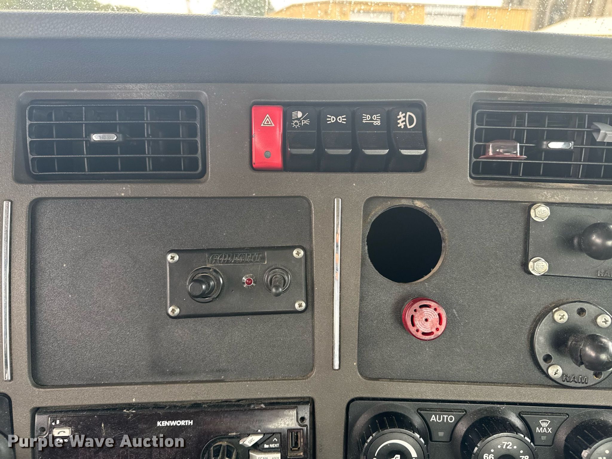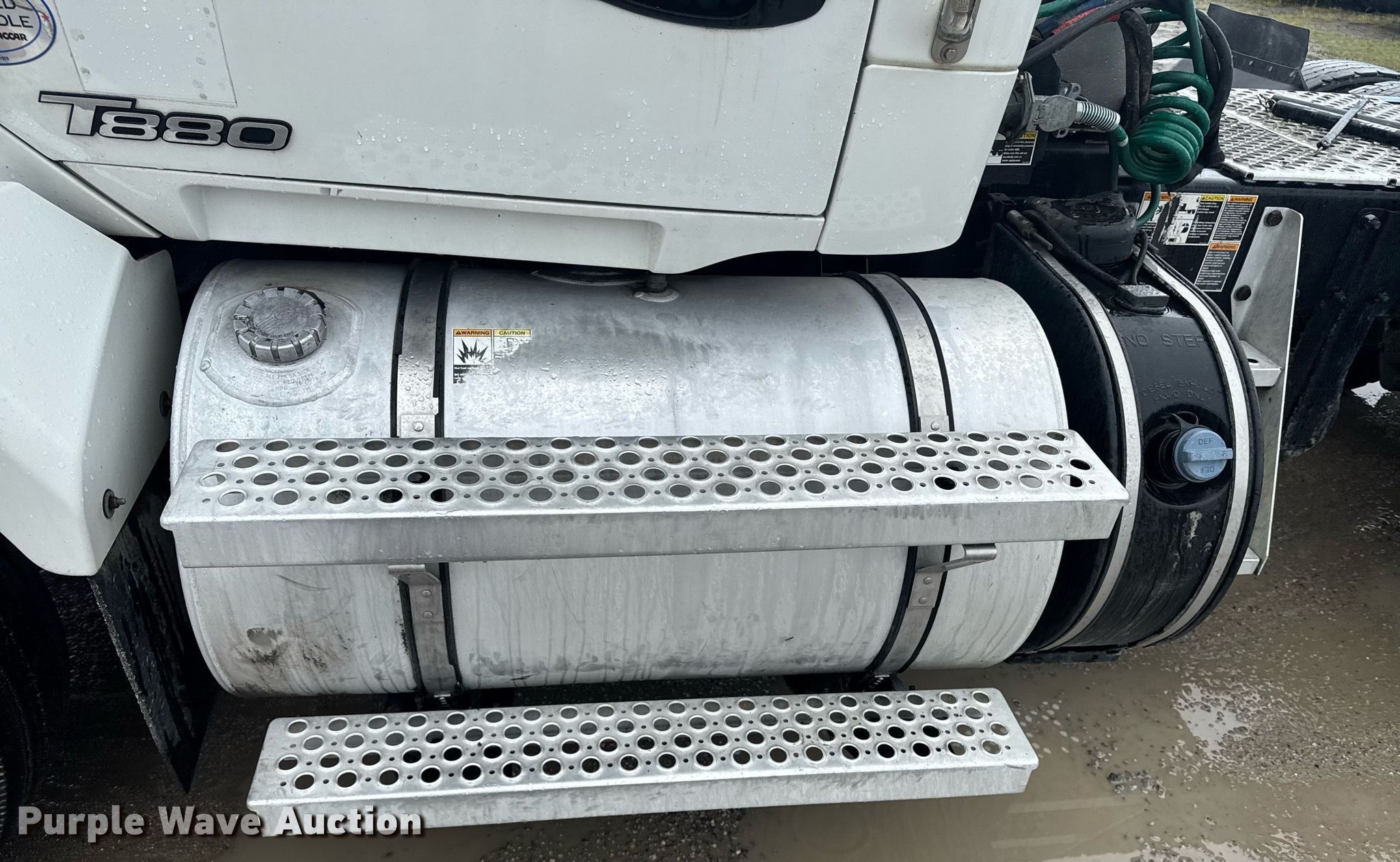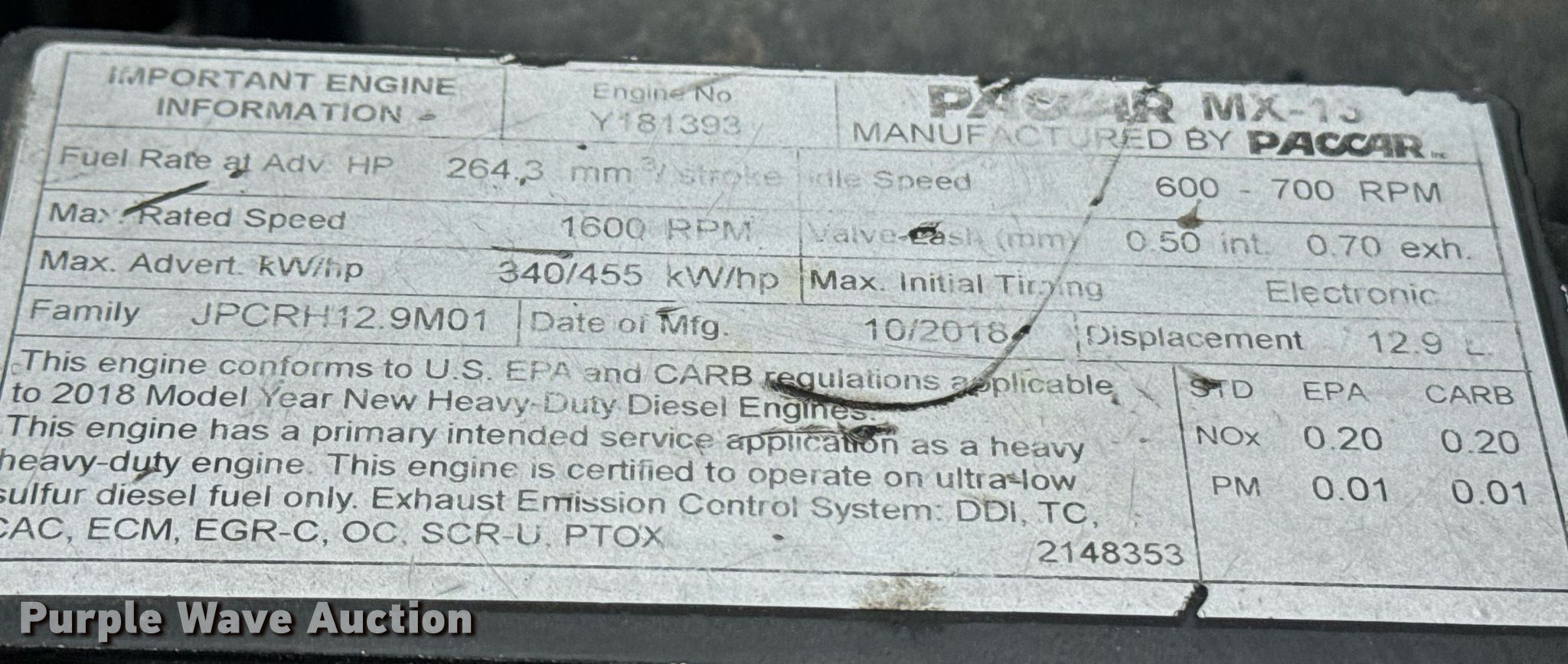 2019 Kenworth T880 semi truck. Miles: 603,762 on odometer, VIN: 1XKZDP9X3KJ285525. Engine Paccar MX-13, Displacement: 12.9L, Cylinders: 6, Fuel type: Diesel, Engine brake. Transmission Manual, Eaton Fuller, Speed: 10. Chassis Axles: Tandem, Gear ratio: 3.55, Differential lock: Full, Suspension: Air Dump valves, Brakes: Air, PTO, Wet kit, GVWR: 53,200 lbs FAWR: 13,200 lbs, IAWR: 20,000 lbs, RAWR: 20,000 lbs. Interior AC, Heat, Power windows, Power locks, Cruise control, Air ride cab. Features Deck plate: Aluminum, Fifth wheel type: Fixed, Fuel tank: Single. Tires Front: 275/80R22.5, Rear: 295/75R22.5. Virginia title. Smithfield Hog Production. Waverly, VA 23890