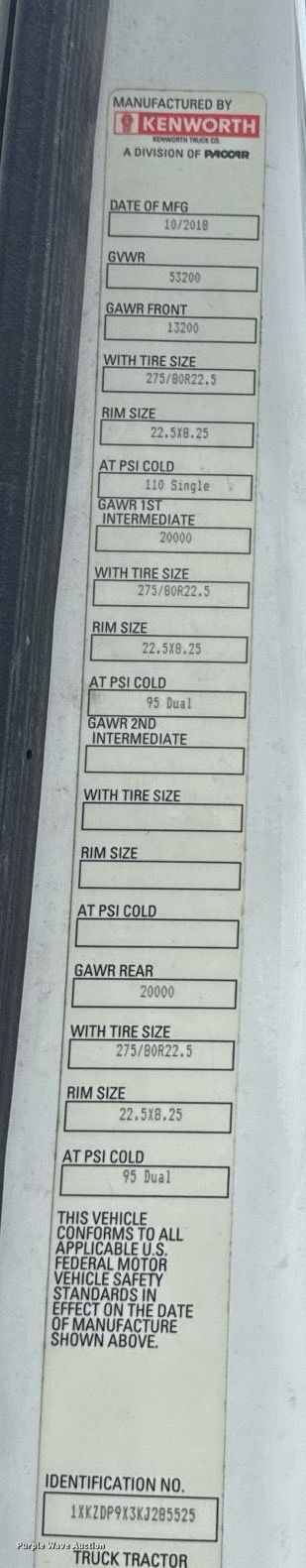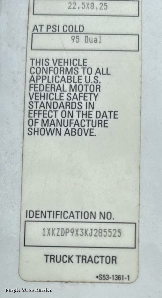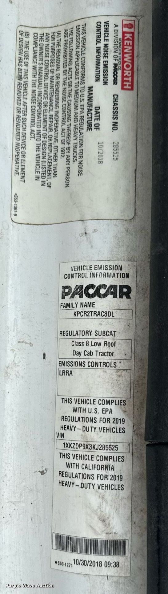 Purple Wave is selling a used Truck Tractor in Virginia. This item is a 2019 Kenworth T880 semi truck with the following: Miles: 603,762 on odometer, VIN: 1XKZDP9X3KJ285525