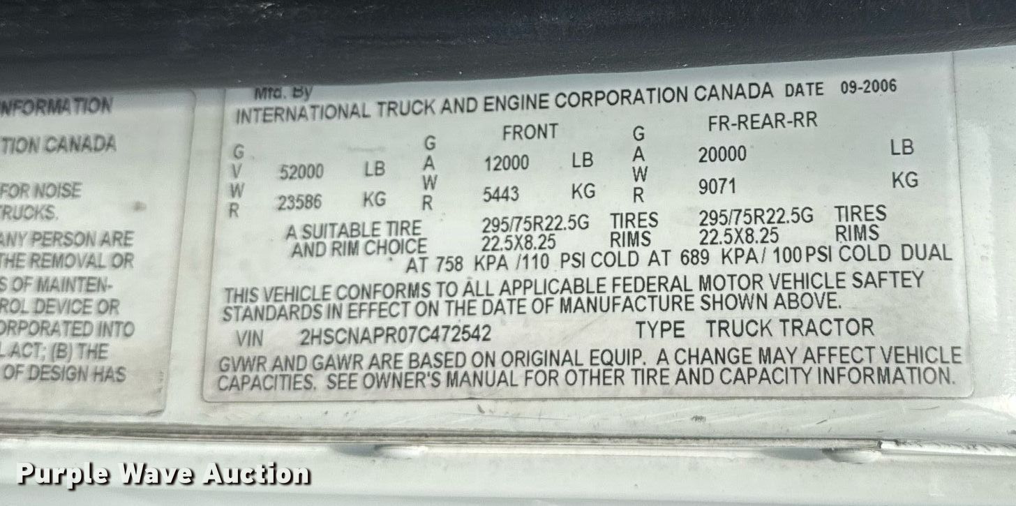 Purple Wave is selling a used Truck Tractor in Georgia. This item is a 2007 International 9400I semi truck with the following: Miles: 787,106 on odometer, VIN: 2HSCNAPR07C472542