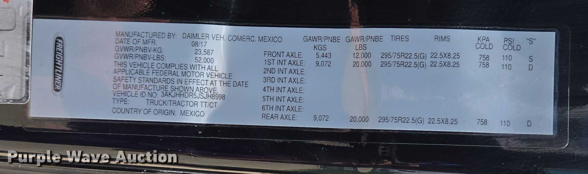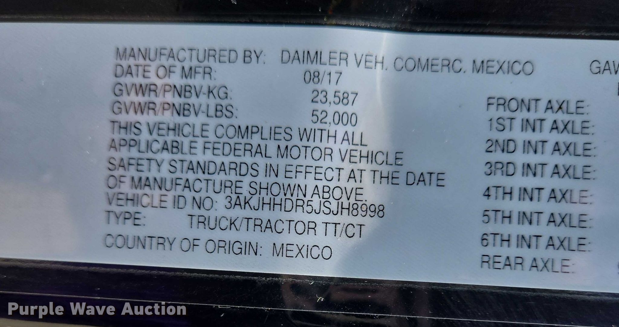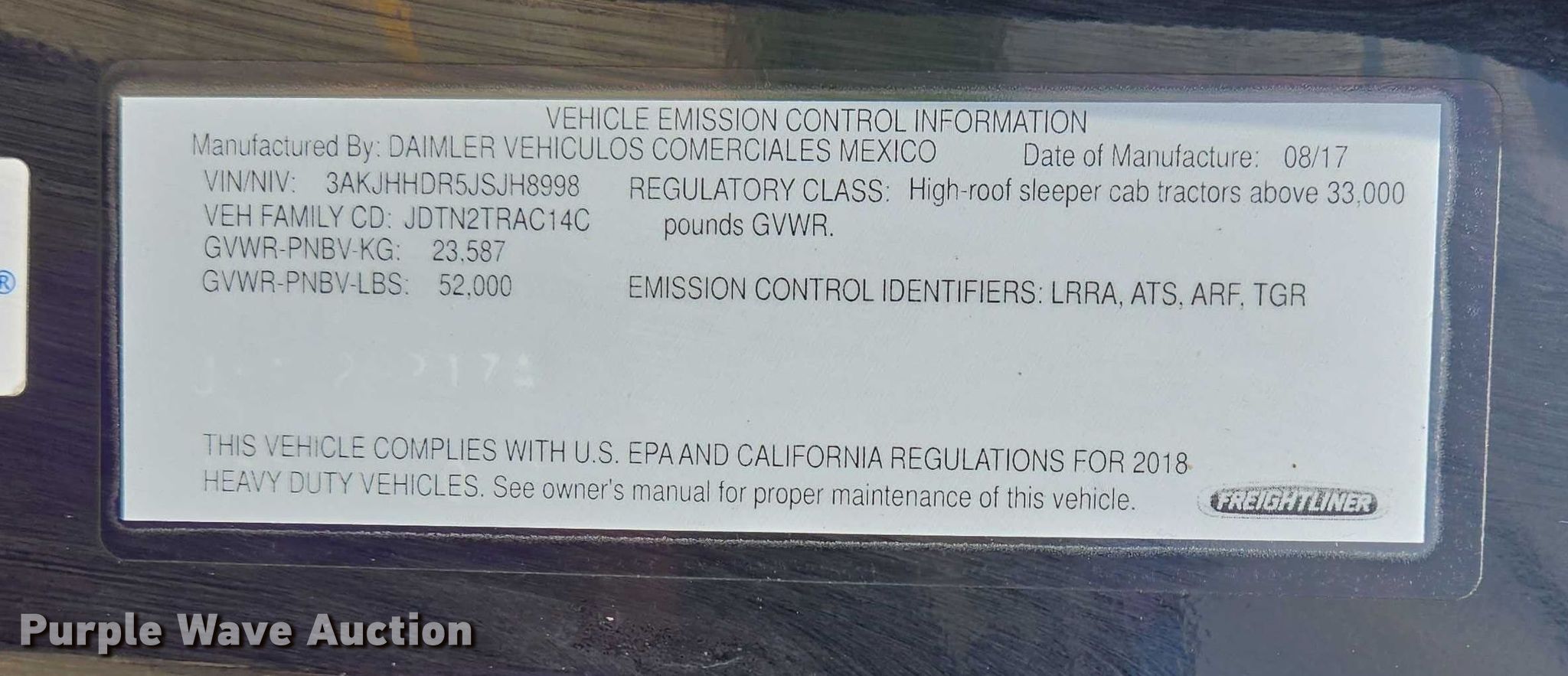 Take a look at this used 2018 Freightliner Cascadia semi truck being sold on June 26th, 2025 in the SOLD! June 26 Truck and Trailer Auction made by Freightliner. Take a look at all of the item information below or take a look at similar auctions for Trucks.