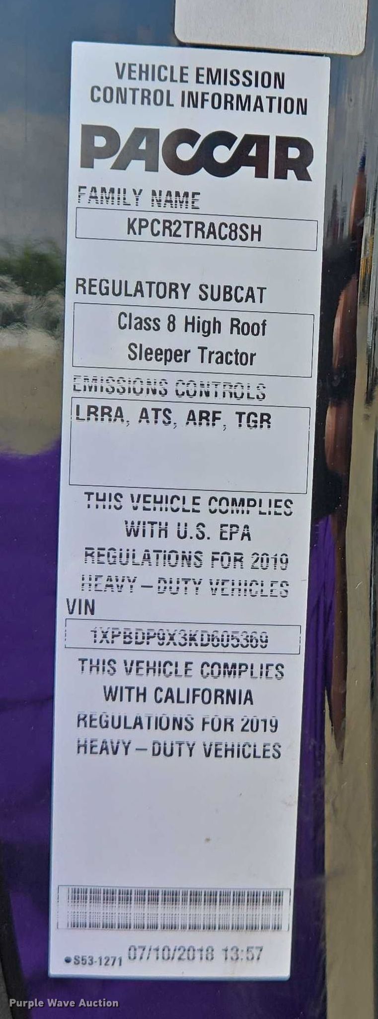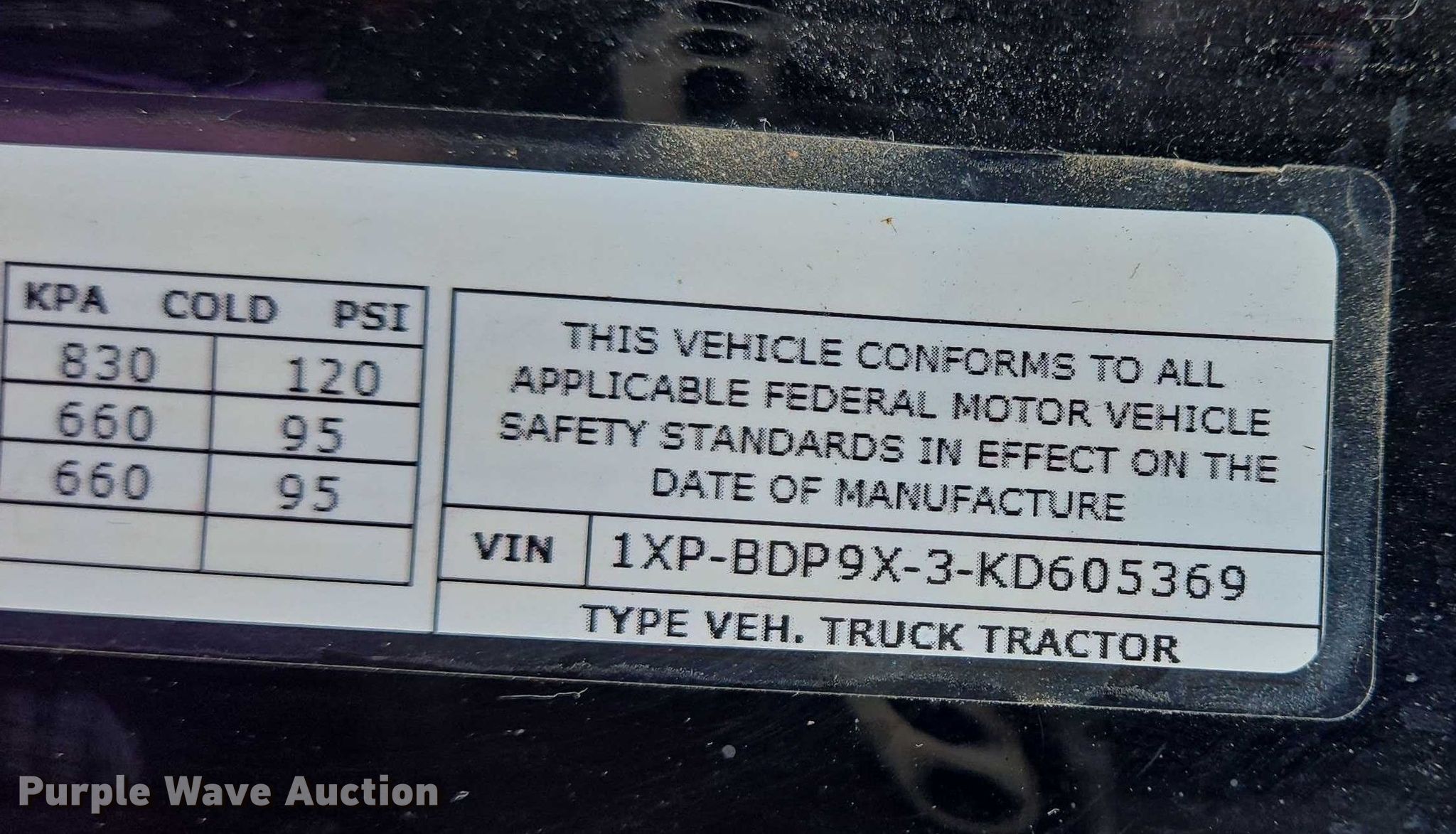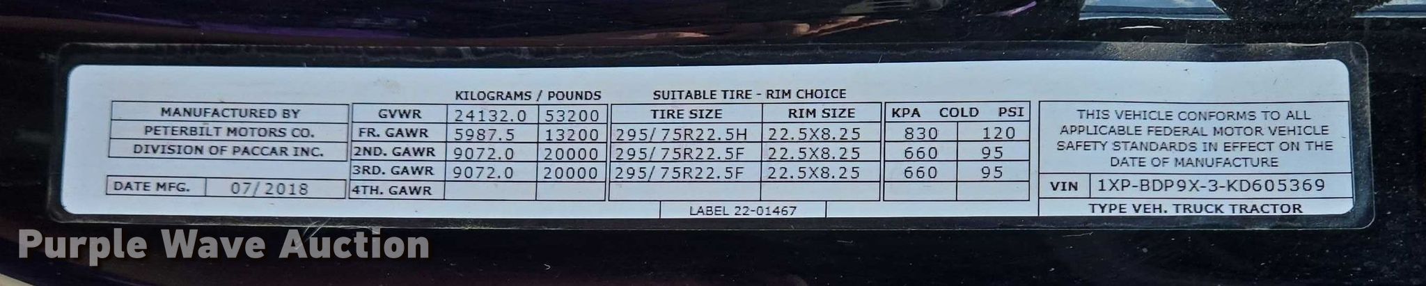 Purple Wave is selling a used Truck Tractor in Tennessee. This item is a 2019 Peterbilt 579 semi truck with the following: Miles: 854,196 on odometer, Hours: 17,666 on meter, VIN: 1XPBDP9X3KD605369