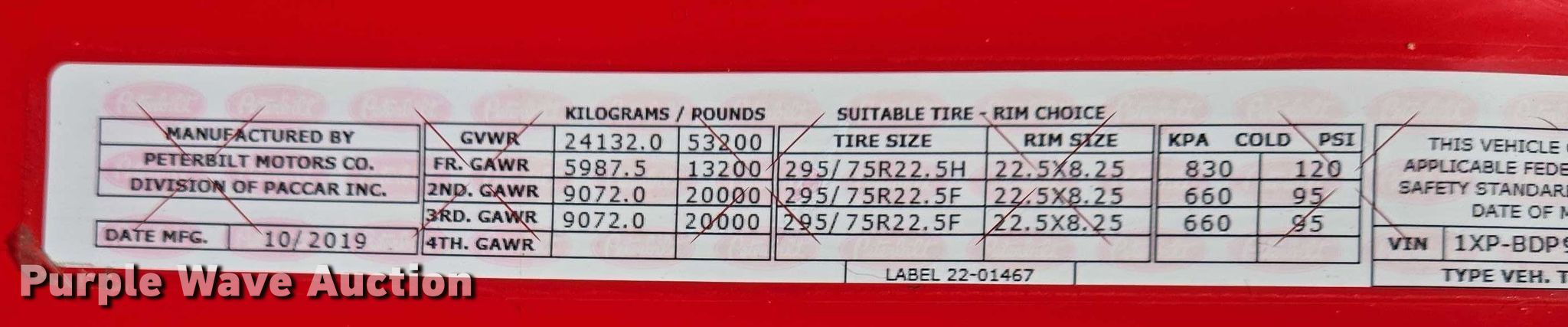 Purple Wave is selling a used Truck Tractor in Tennessee. This item is a 2020 Peterbilt 579 semi truck with the following: Miles: 589,128 on odometer, Hours: 21,306 on meter, VIN: 1XPBDP9X5LD679054
