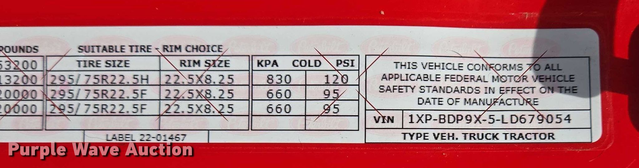 2020 Peterbilt 579 semi truck. Miles: 589,128 on odometer, Hours: 21,306 on meter, VIN: 1XPBDP9X5LD679054. Engine Paccar MX13, Displacement: 12.9L, Cylinders: 6, Fuel type: Diesel, Engine brake. Transmission Automated manual. Chassis Axles: Tandem, Differential lock: Inter-axle, Suspension: Air Dump valves, Brakes: Air, GVWR: 53,200 lbs FAWR: 13,200 lbs, IAWR: 20,000 lbs, RAWR: 20,000 lbs. Interior AC, Heat, Heated mirrors, Power windows, Power locks, Cruise control, Air ride cab, Sleeper Sleeper length: 66", Beds: Double bunk, Rear climate control. Features Deck plate: Aluminum, Fifth wheel type: Air operated, Sliding, Fuel tank: Dual. Tires Size: 295/75R22.5. Notes Dash warning indicator: Check engine, Traction control, Windshield chipped or cracked, Weak battery. Tennessee title. Seller is a Tennessee licensed motor vehicle dealer. The buyer may be required to pay sales tax and/or registration fees to the dealer prior to taking possession. Title will be assigned and distributed by the dealer. Please contact the seller for distribution questions. TAG Truck Center - Memphis TN. Memphis, TN 38118