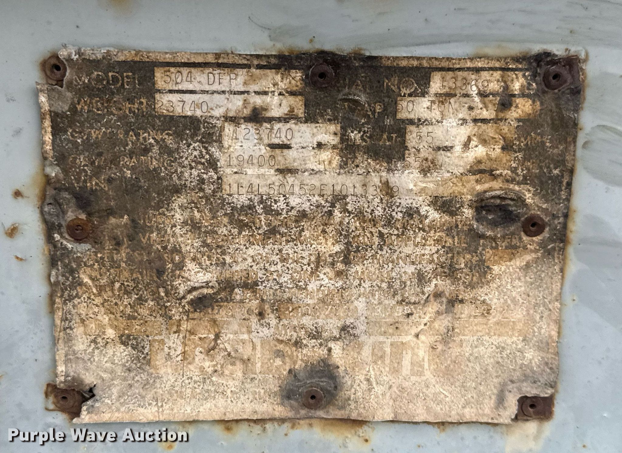 Purple Wave is selling a used Equip. Trailer in Kansas. This item is a 1985 Load King 504 DFP lowboy equipment trailer with the following: VIN: 1L4L50452F1013369