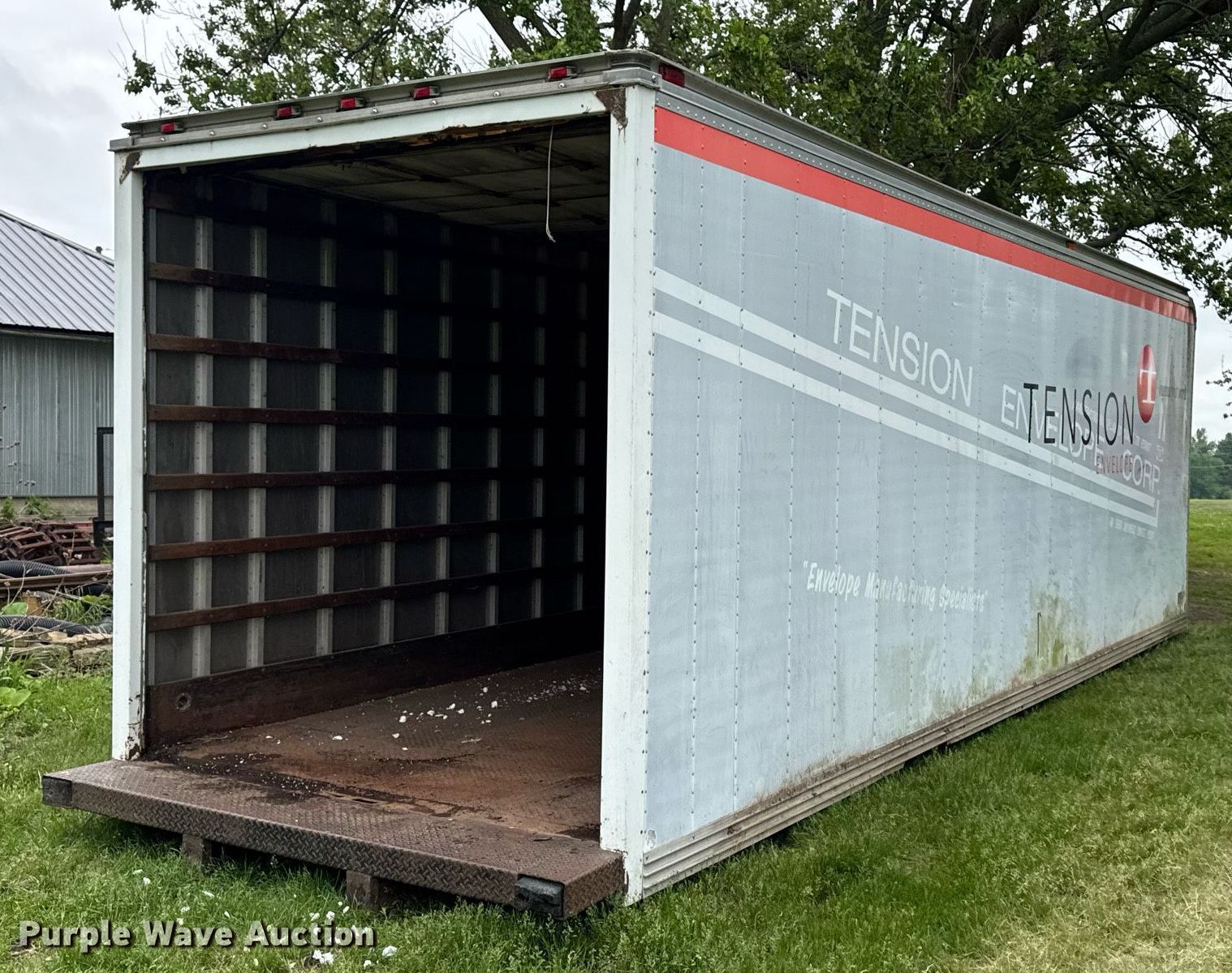 Purple Wave is selling a used Truck Part and Attach. in Iowa. This item is a US Truck Body CO box bed with the following: 26' 8" L x 8' W 105" H, Rear roll up door, Aluminum, Rear door issues