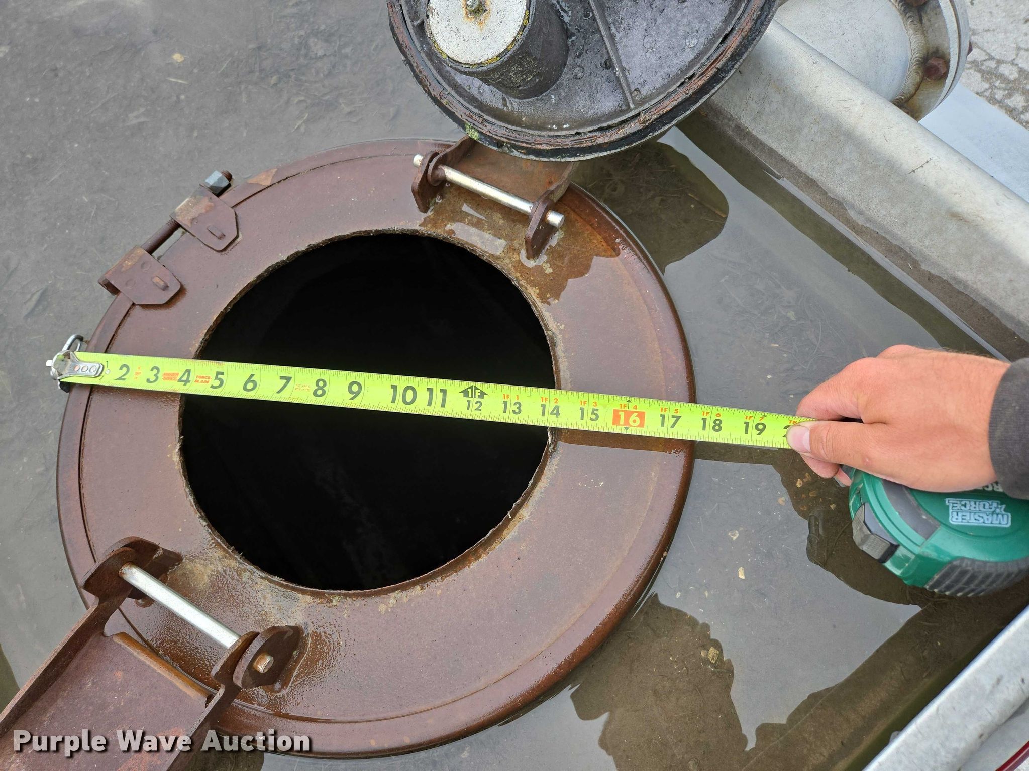 1971 Custom tank trailer. VIN: S-2296-71, Unit #: 14. Dimensions Overall: 41' 6" L x 97.5" W. Features Tank type: Aluminum, Baffles: 5, Outlet valves: 3, No. of manways/manholes: 6 Width: 17.5". Chassis Landing gear: Dual, Suspension: Spring, Brakes: Air, Axles: Tandem. Tires Steel wheels, Size: 11R24.5. Notes May have residual corn syrup mix left in tank, Valve issues, needs replaced, Pipe issues, need replaced, Hose fitting adapters issues, needs replaced, Unknown operating condition of air actuated, Hose storage tube issues, will not open. Missouri title. Title distribution may be delayed up to 14 days from verification of funds. Urbana, MO 65767
