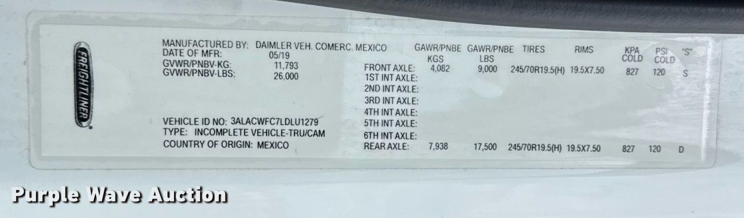 Purple Wave is selling a used Box Truck in Kansas. This item is a 2020 Freightliner Business Class M2 box truck with the following: Miles: 261,059 on odometer, Hours: 6,240 on meter, VIN: 3ALACWFC7LDLU1279